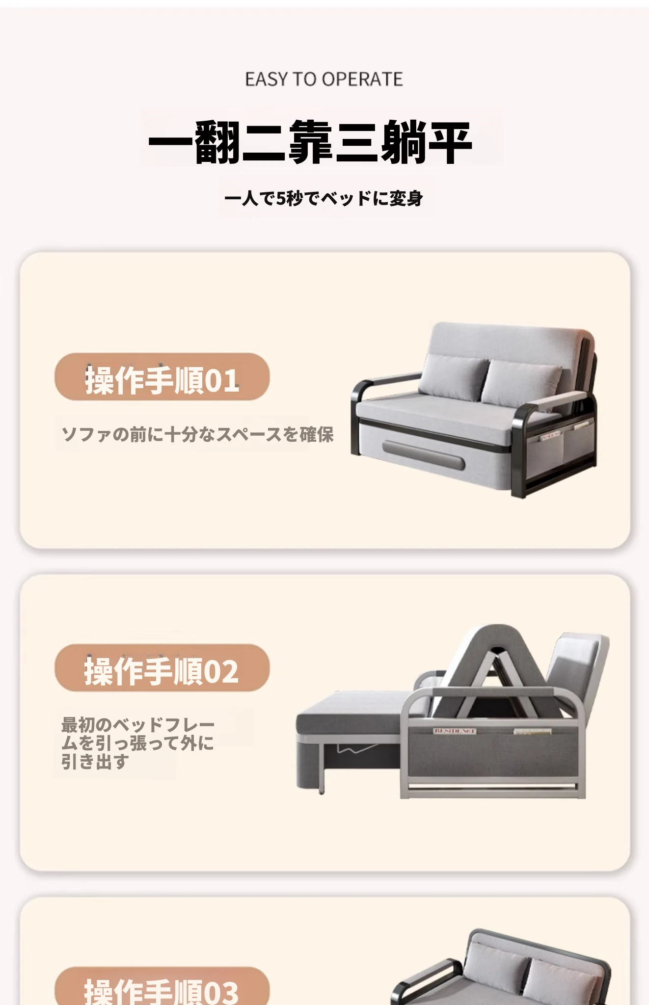 【香港送料無料】折りたたみ可能なソファベッド - スペースを有効活用!クリーミーなデザインで、モダンな小型住宅にぴったりのコンパクトサイズ。移動も簡単で、快適なリラックスタイムをお約束します!