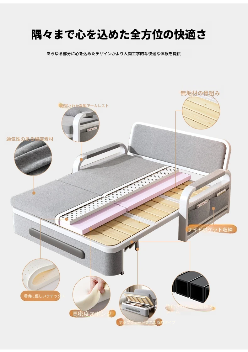 折りたたみ式リビングソファベッド!小型住宅に最適なデュアルユース、洗えるラテックス布製。1.8メートルの広々としたベッドに変身!おしゃれで実用的、便利な一体型デザイン。