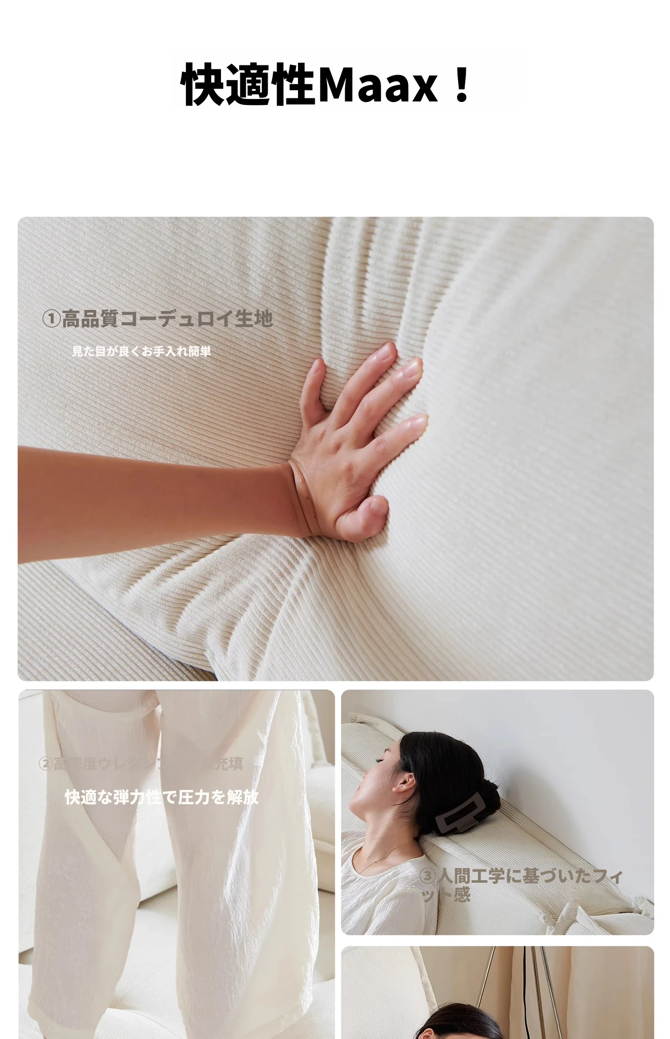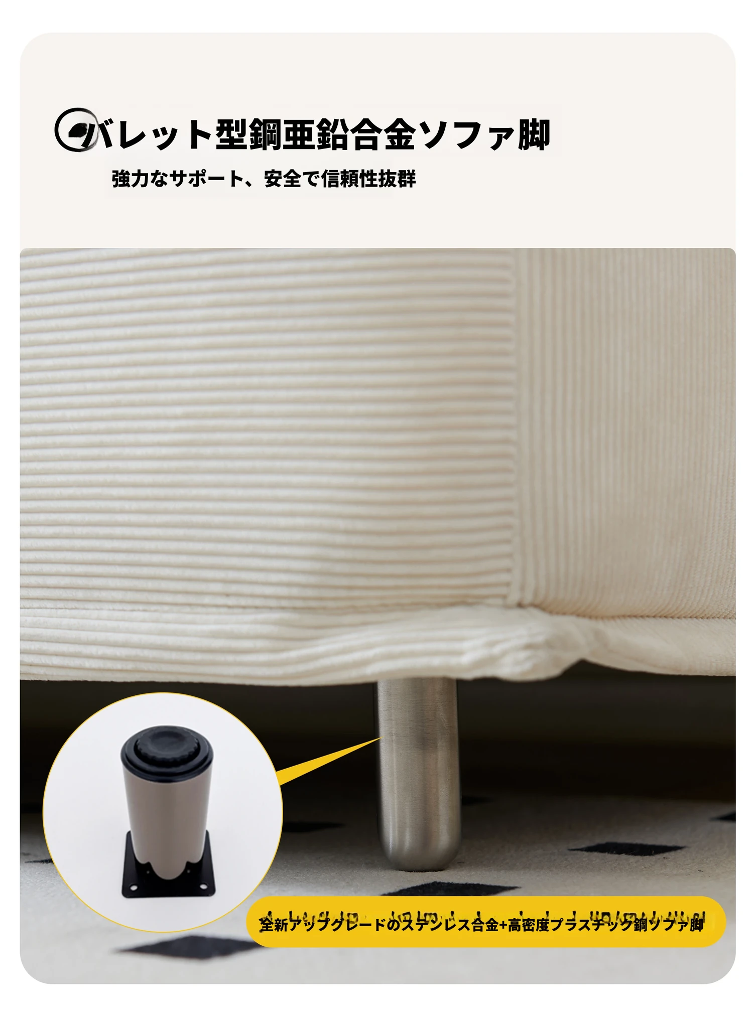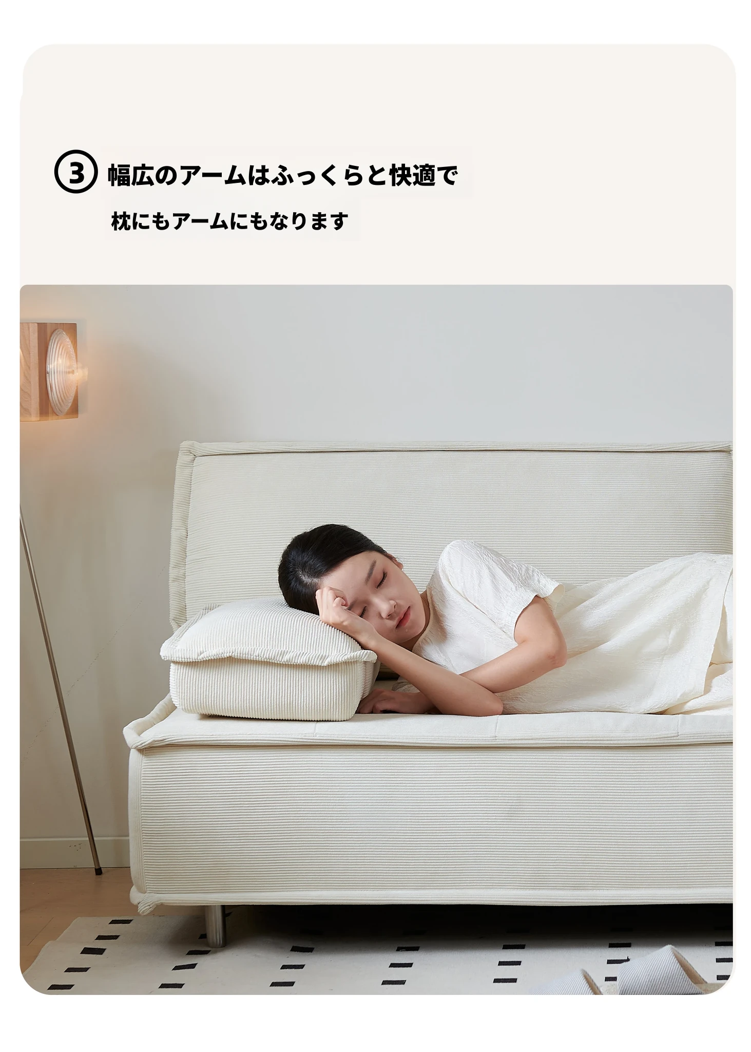 【2.2メートルソファベッド】ライトベージュ☆肌触りの良いコーデュロイ