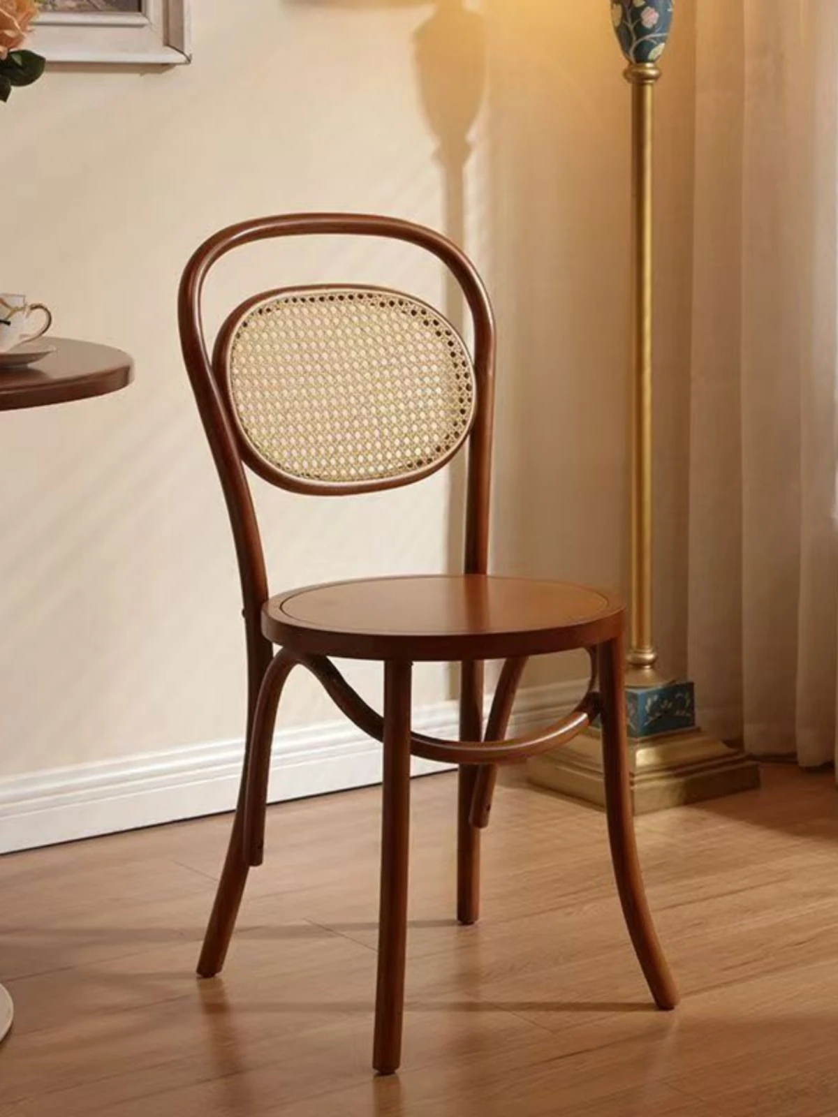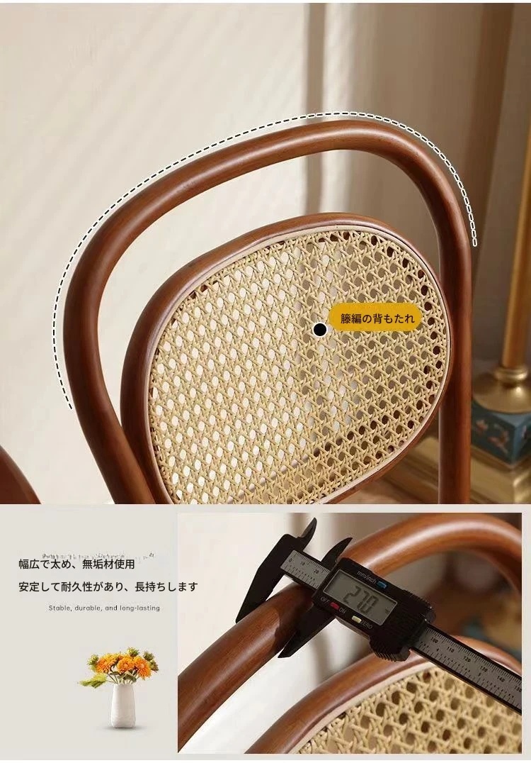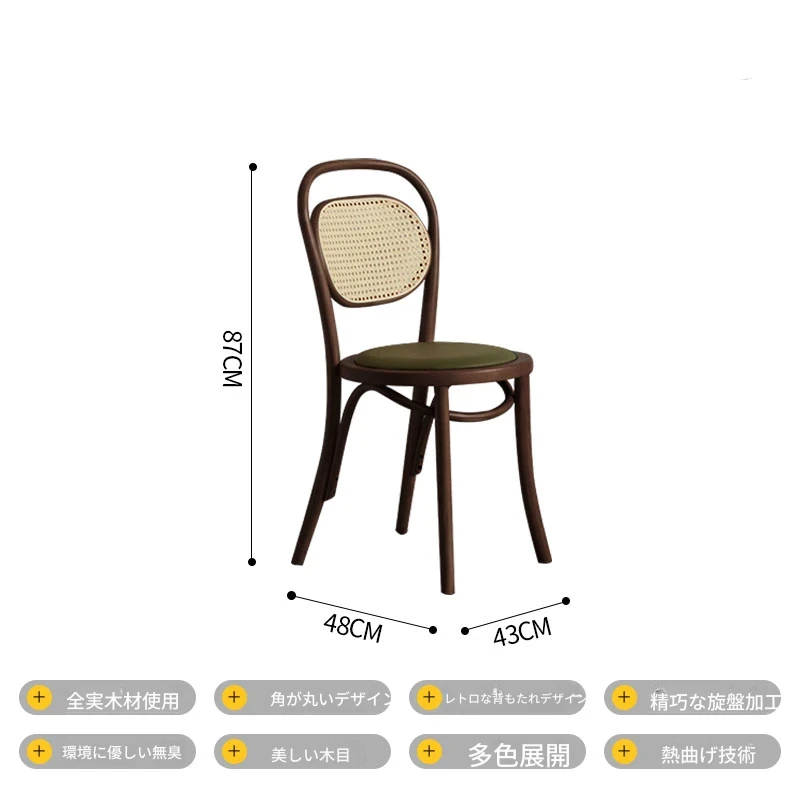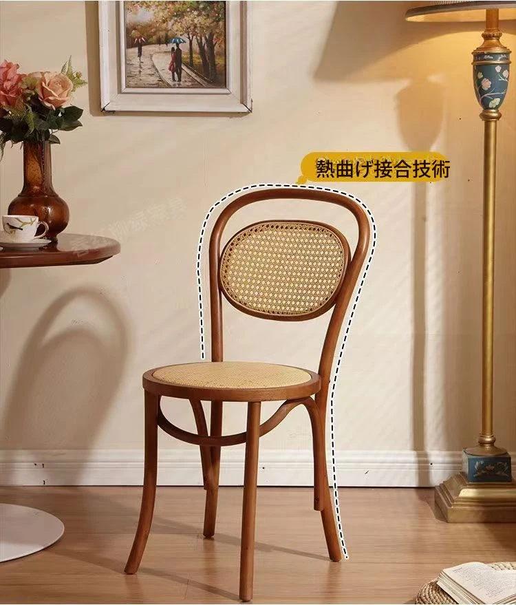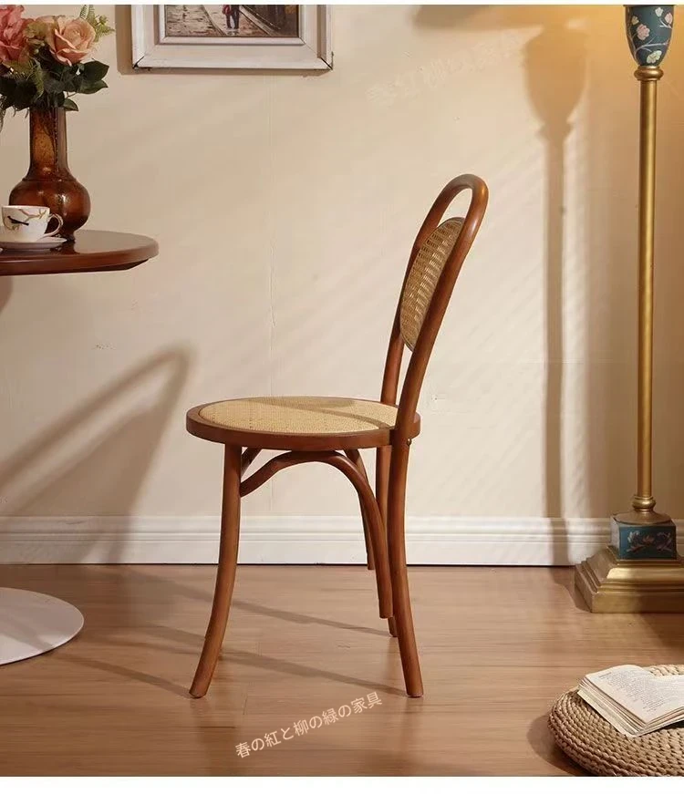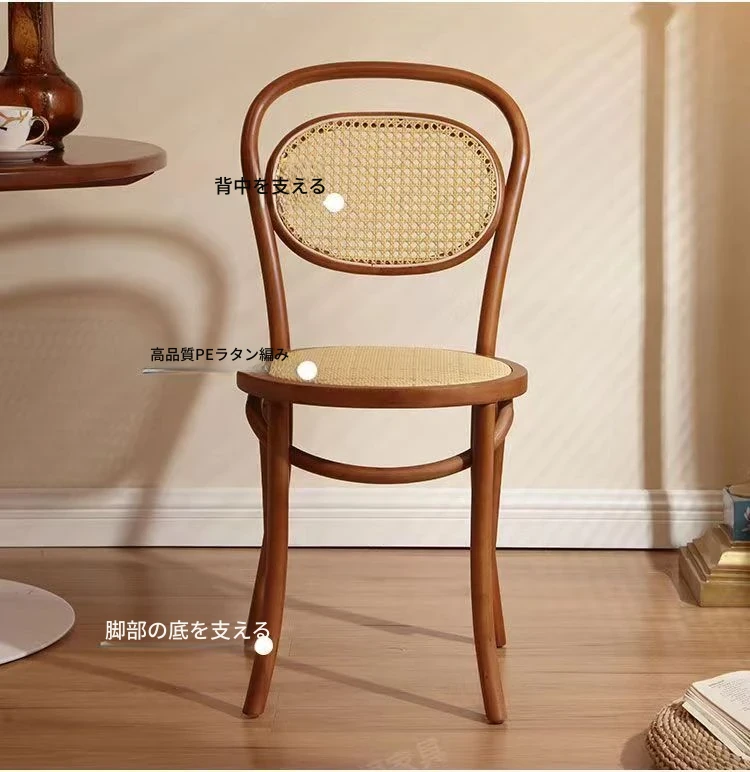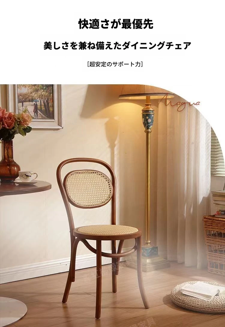 フレンチビンテージ無垢材ダイニングチェア アメリカンラタン編み 家庭用 食卓椅子 アンティーク風 背もたれ付き 軽やかラグジュアリー リラックスチェア