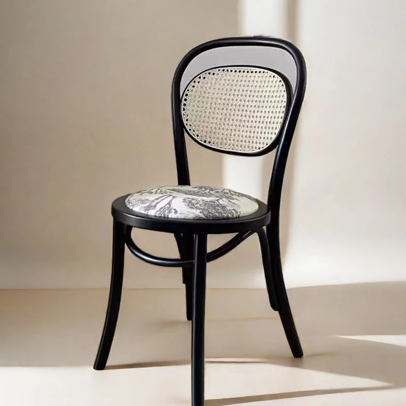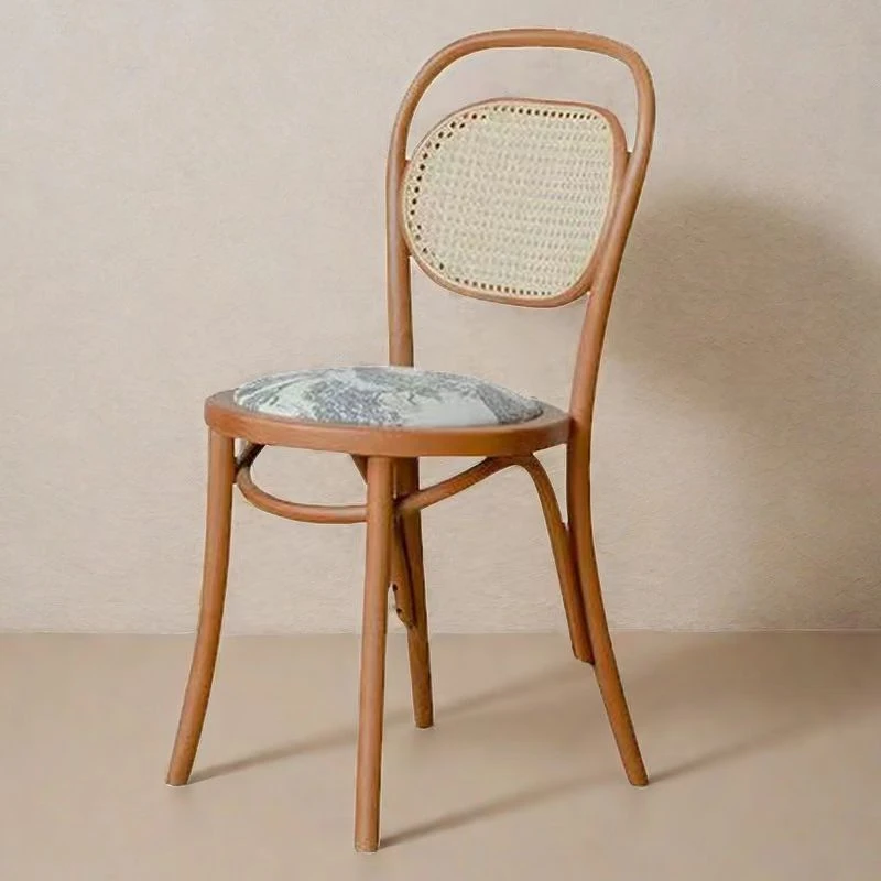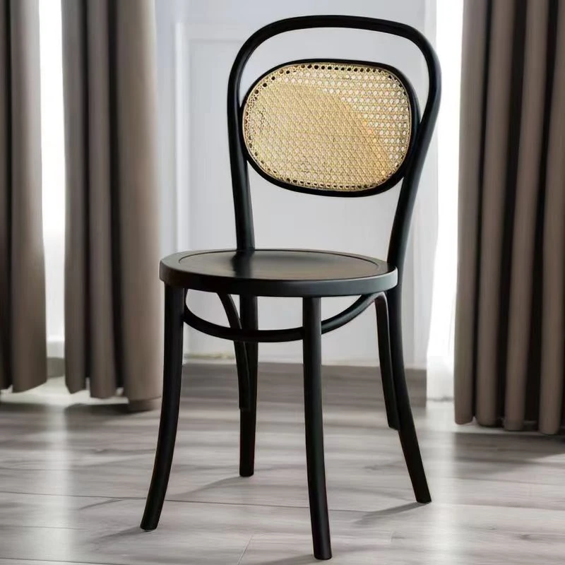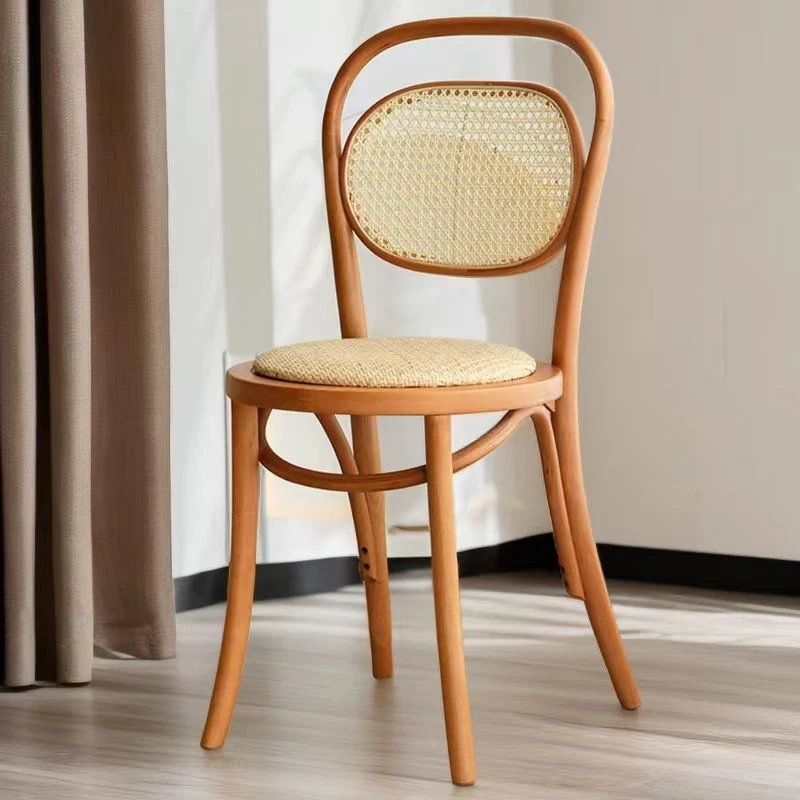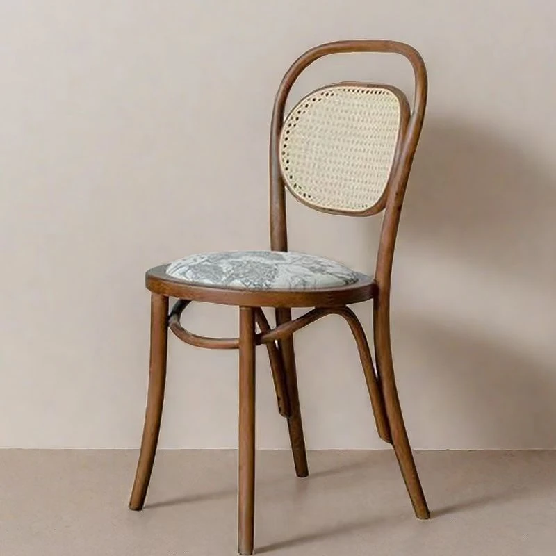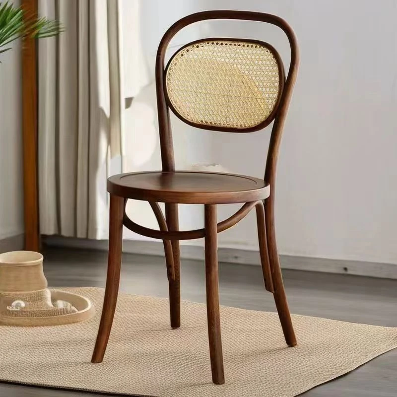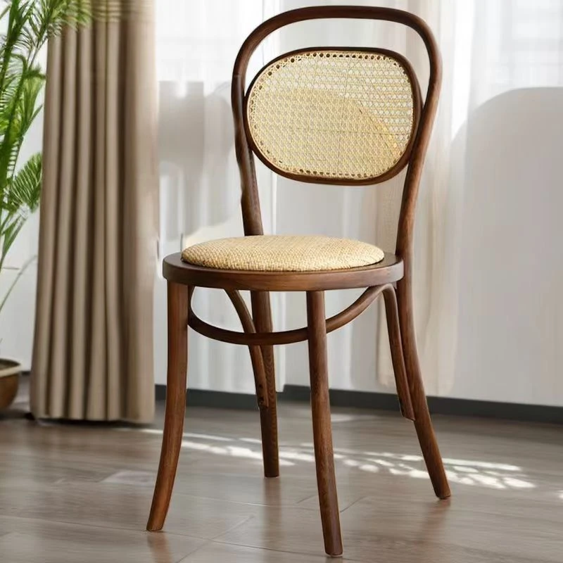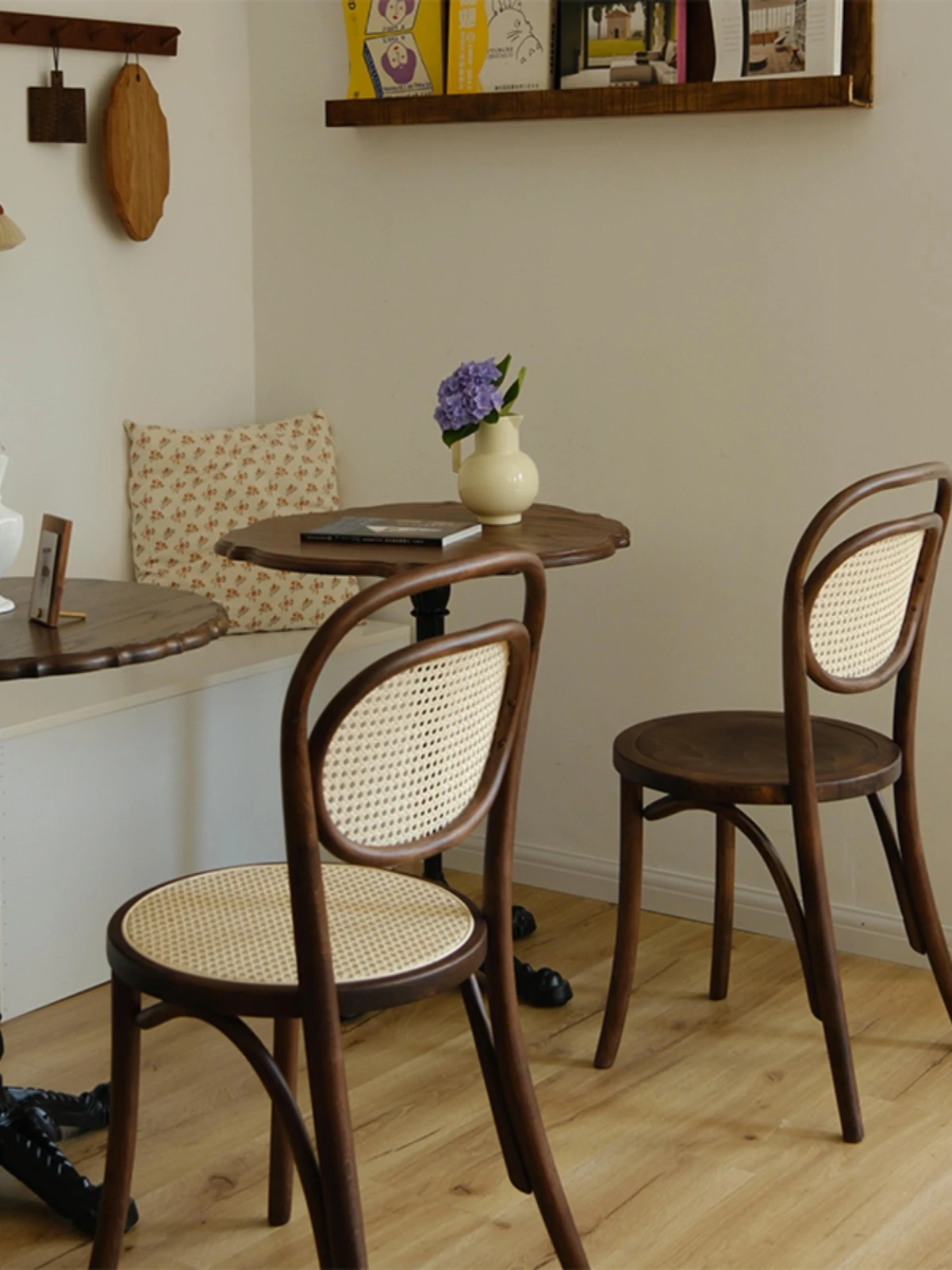 フレンチビンテージ無垢材ダイニングチェア アメリカンラタン編み 家庭用 食卓椅子 アンティーク風 背もたれ付き 軽やかラグジュアリー リラックスチェア