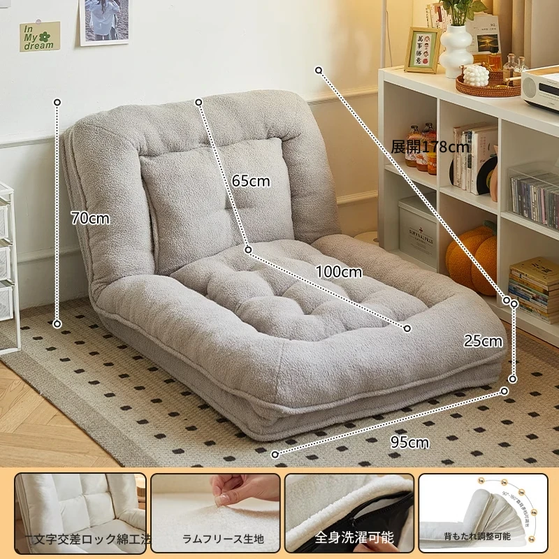 厚手新型(展開178CM*95CM)肌触りラムフリース-グレー【背もたれ、クッション付き】