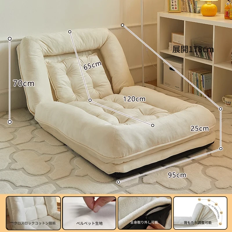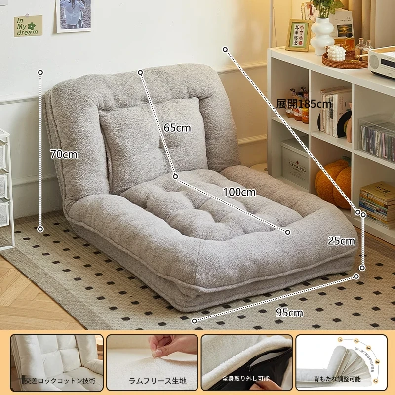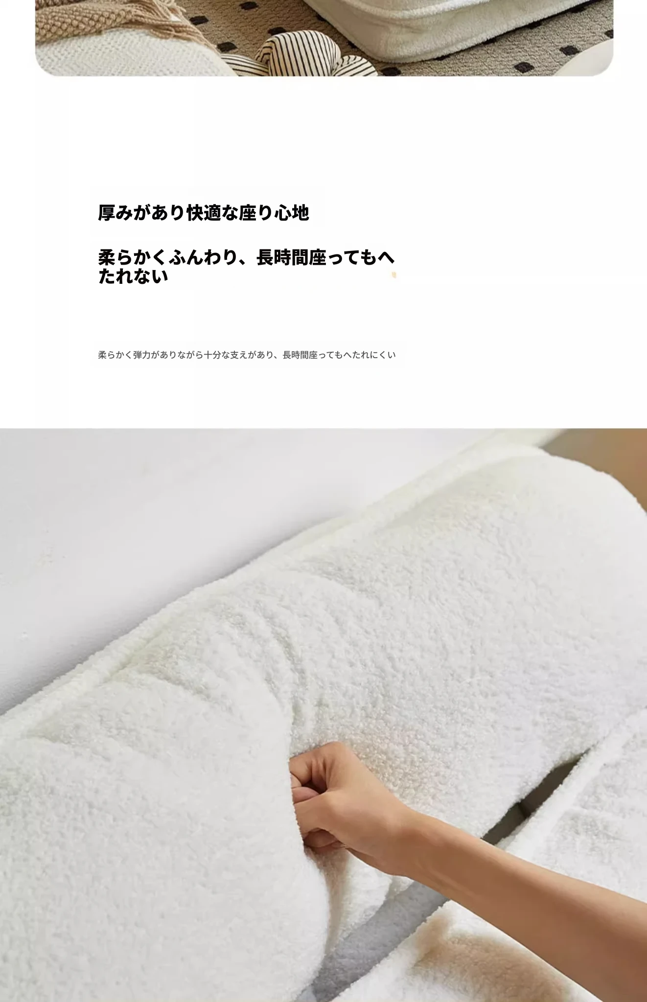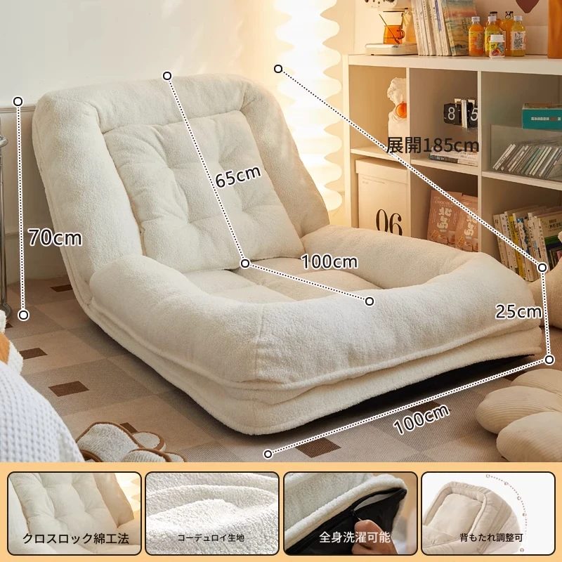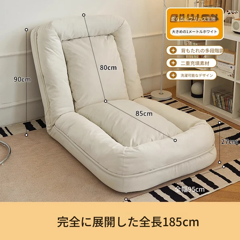 ロング厚手新型(展開185CM*95CM)肌触りラムフリース-アイボリー【背もたれ、クッション付き】