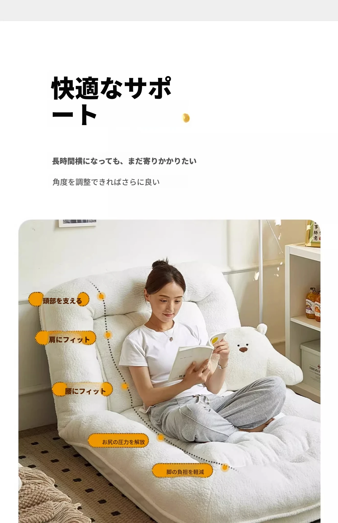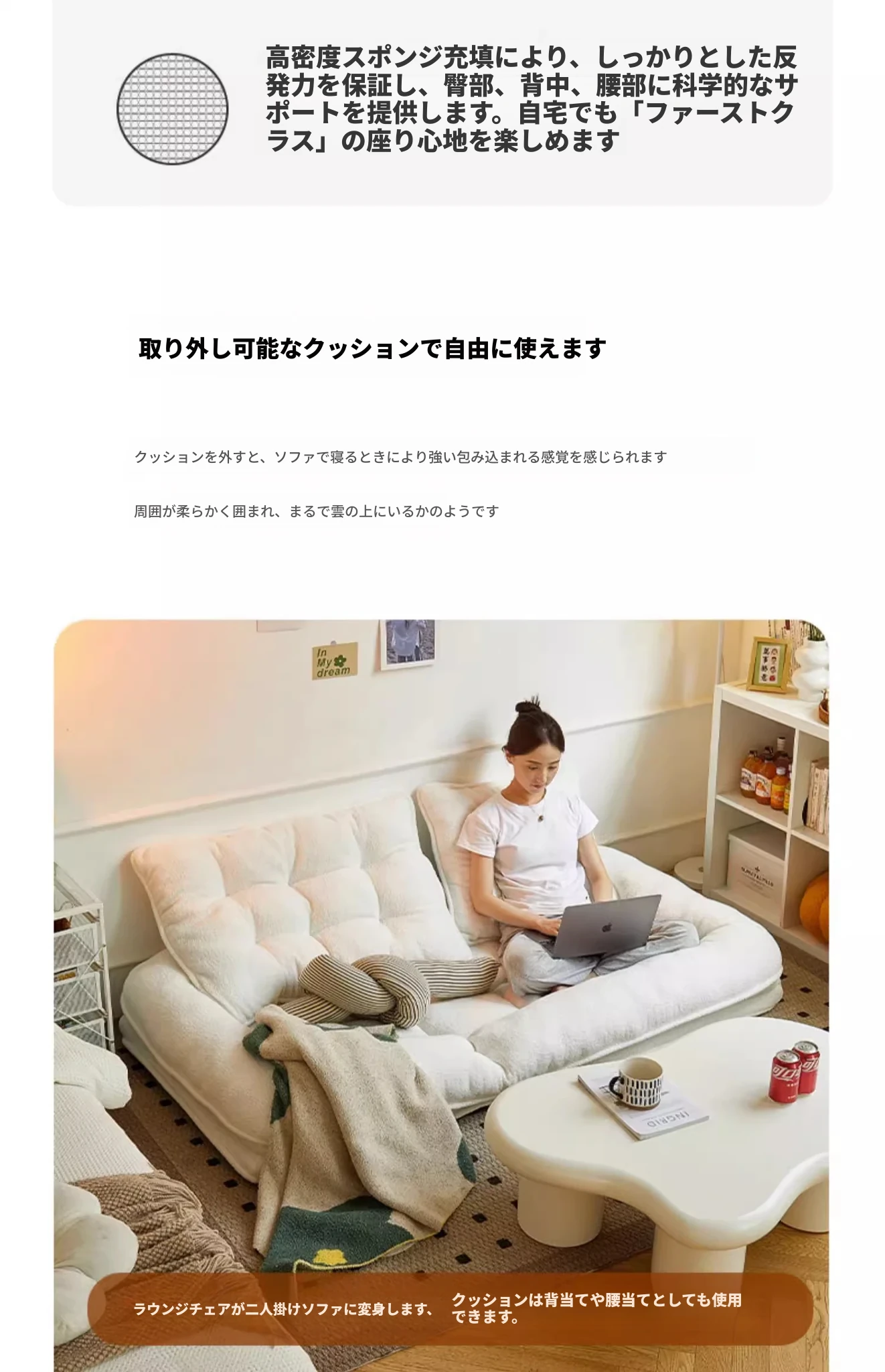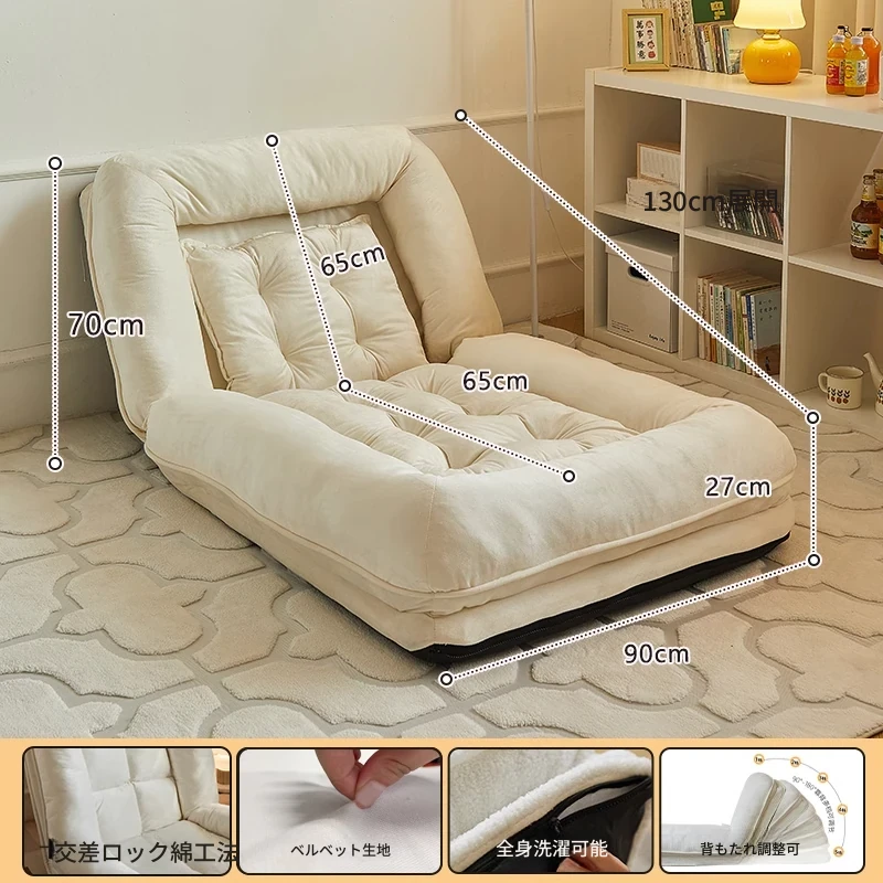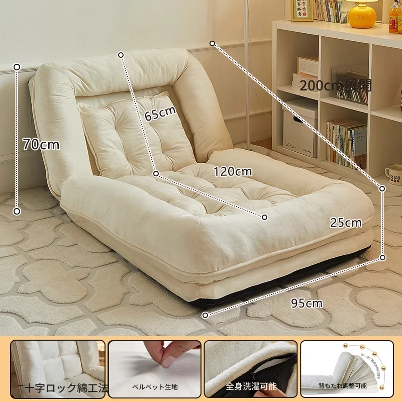 ロング厚手新型(展開185CM*95CM)肌触りラムフリース-アイボリー【背もたれ、クッション付き】