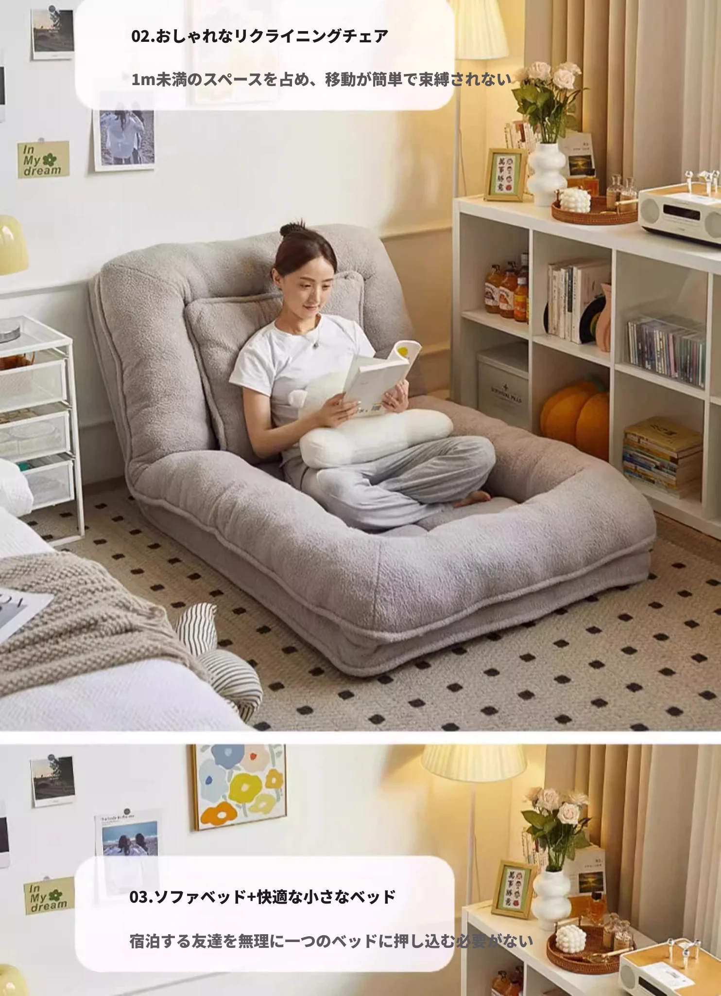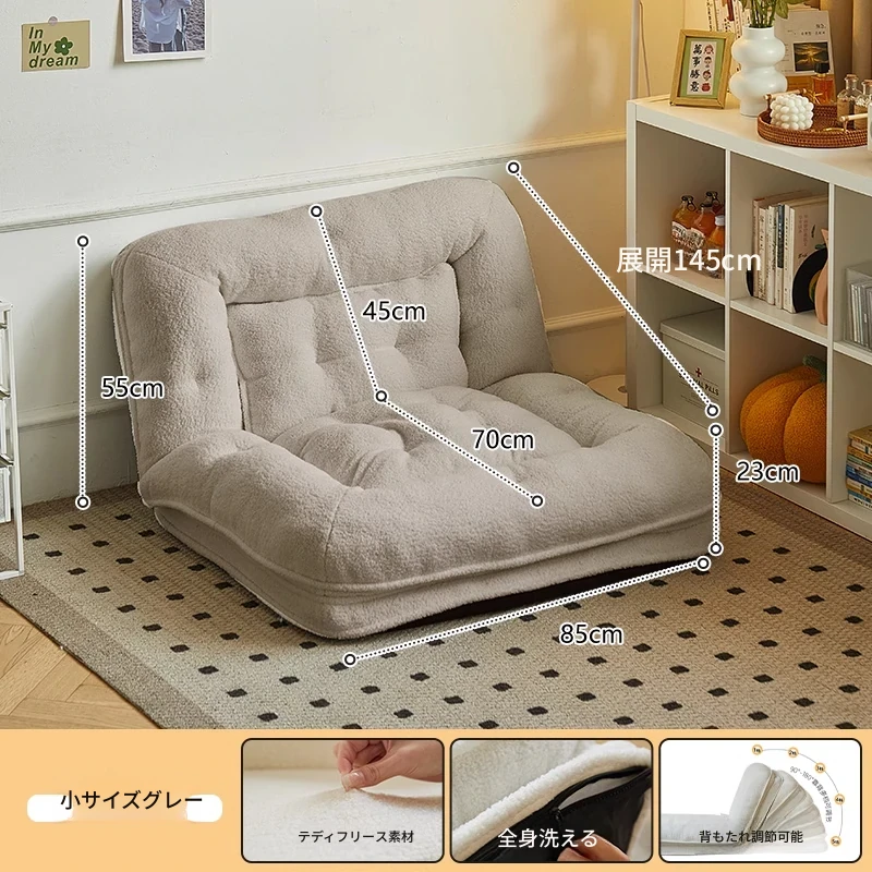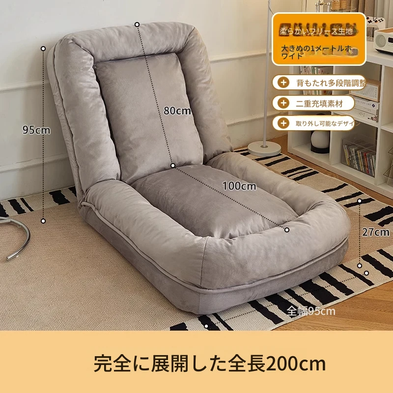 スタンダードモデル(展開145CM*85CM)肌触りラムフリース-グレー【背もたれ、クッション付き】