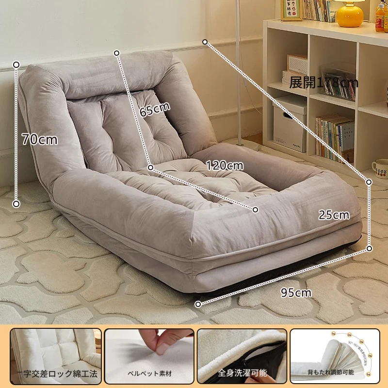 [ロング-同行品質]厚手185CM-肌触りスエードアイボリー(背もたれ+クッション付き)