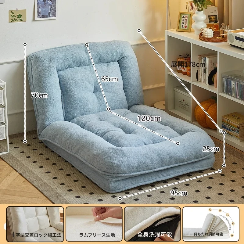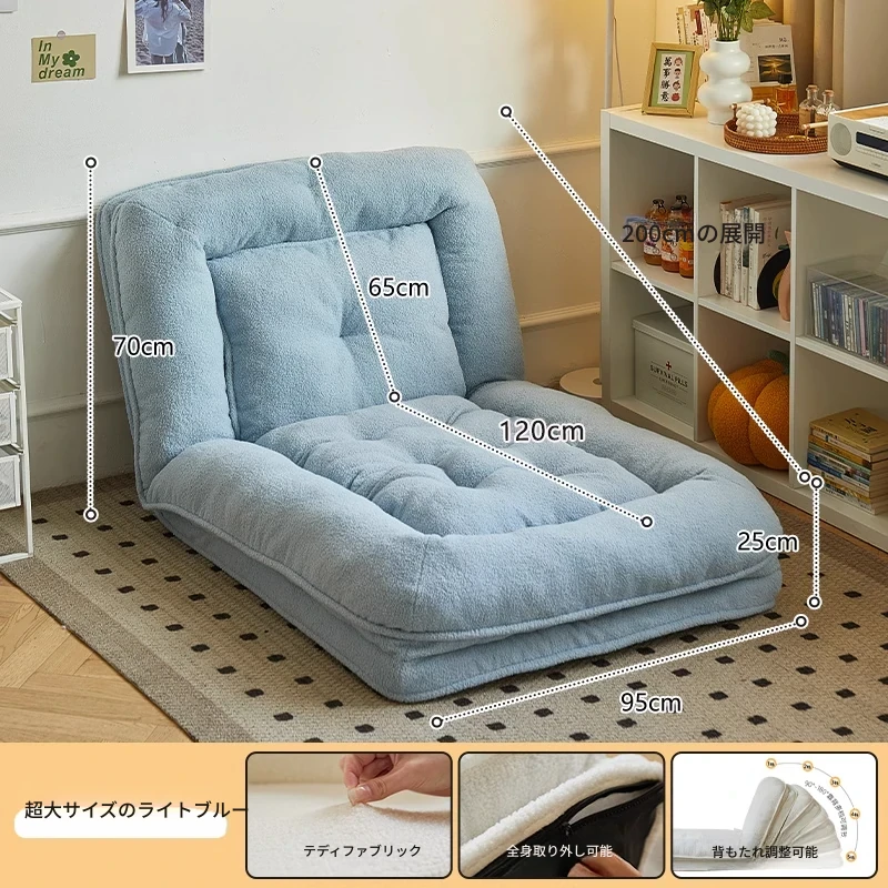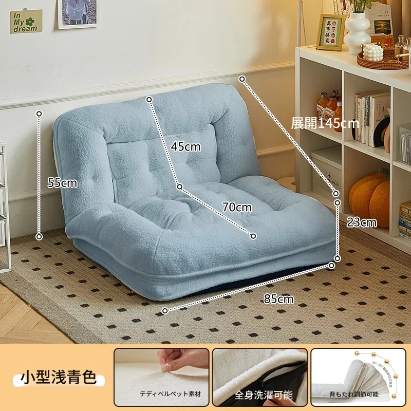 スタンダードモデル(展開145CM*85CM)肌触りラムフリース-ライトブルー【背もたれ、クッション付き】