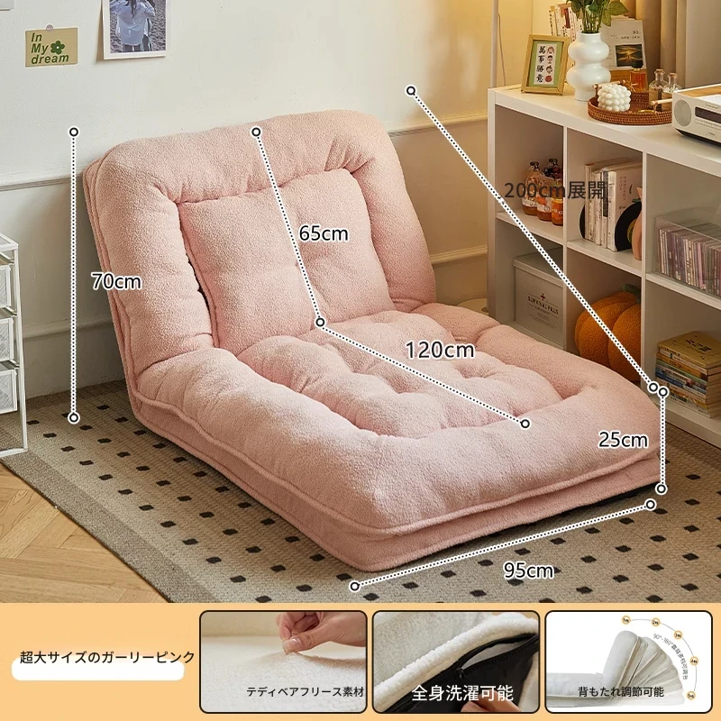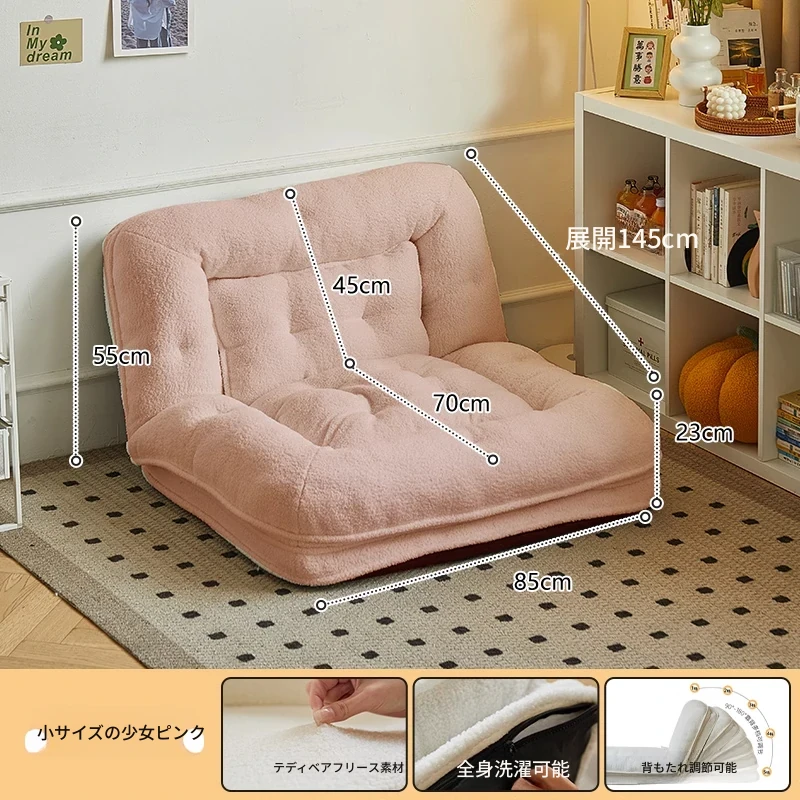 スタンダードモデル(展開145CM*85CM)肌触りラムフリース-ピンク【背もたれ、クッション付き】