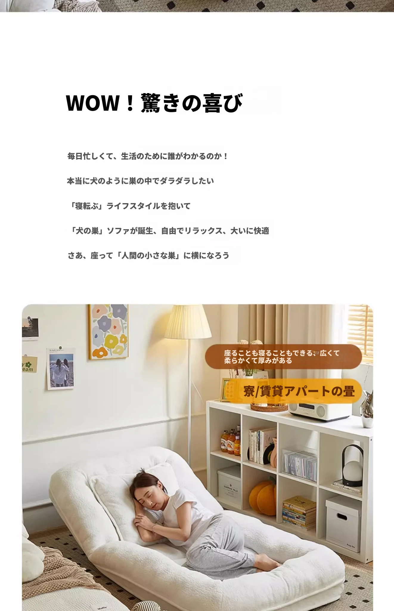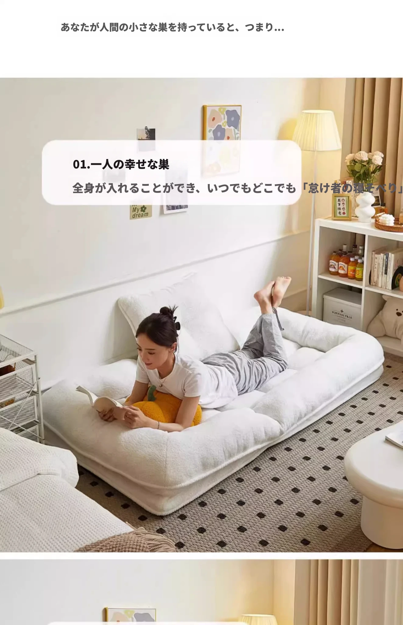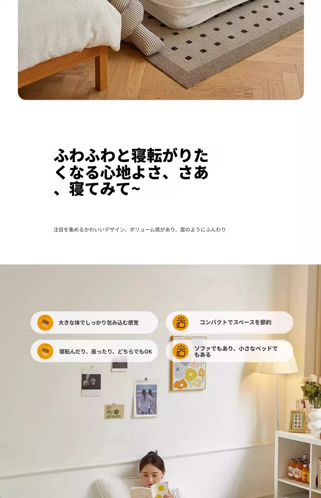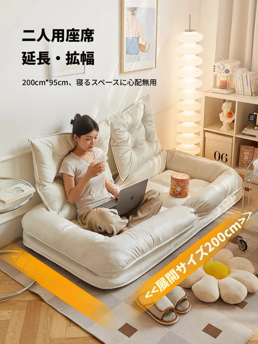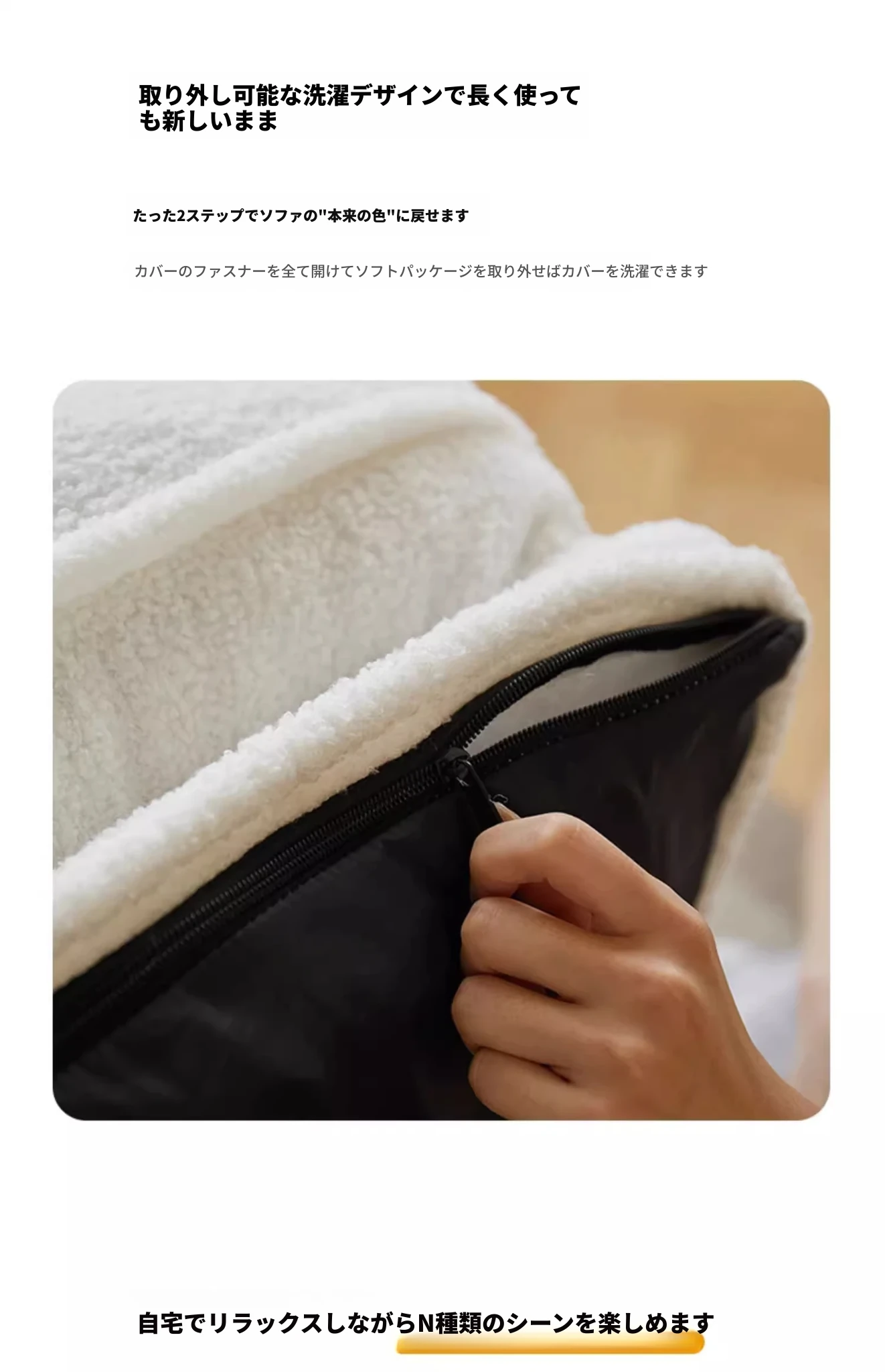 [大サイズ-同行品質]厚手178CM-肌触りスエードアイボリー(背もたれ+クッション付き)