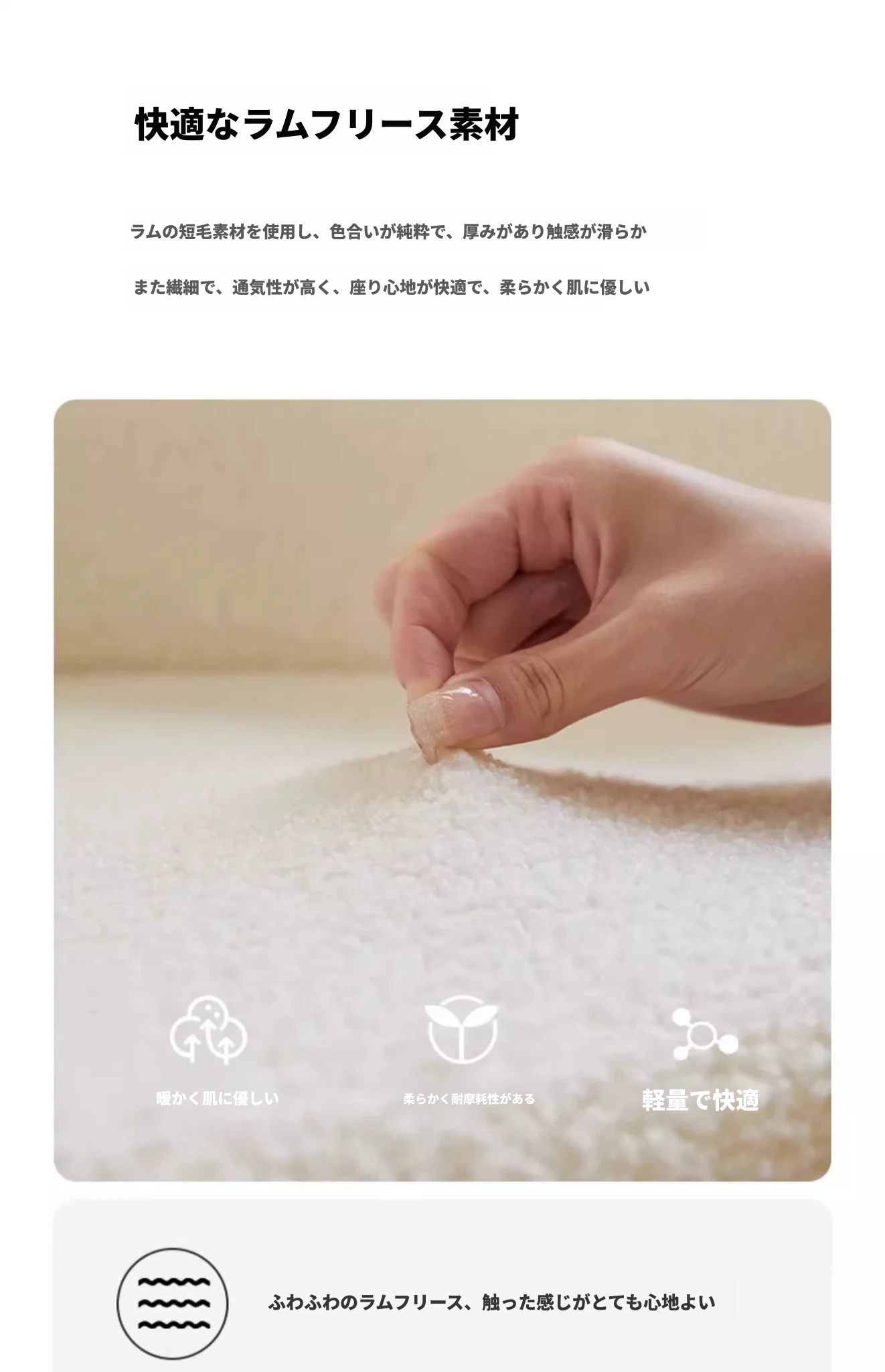 厚手新型(展開178CM*95CM)肌触りラムフリース-アイボリー【背もたれ、クッション付き】