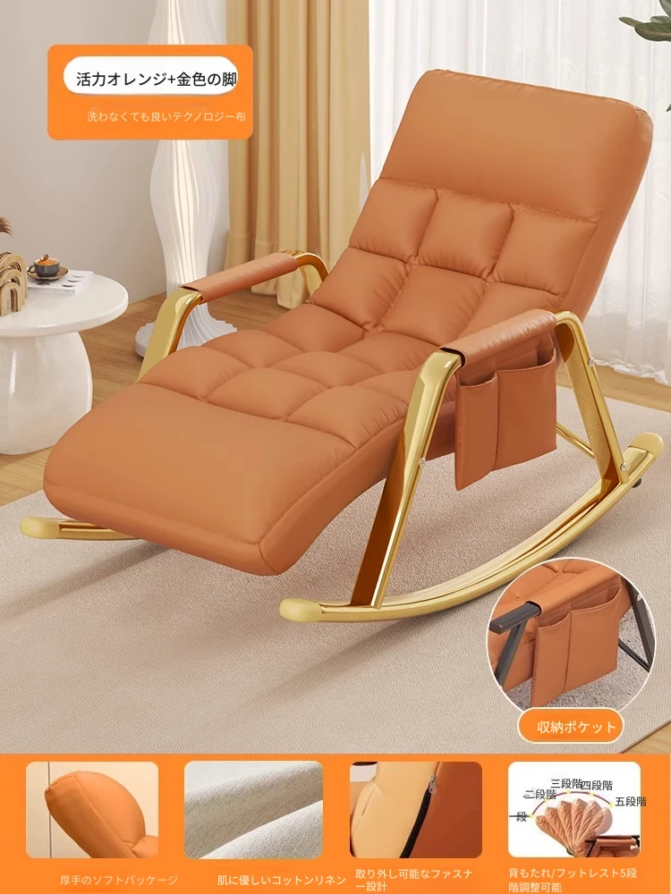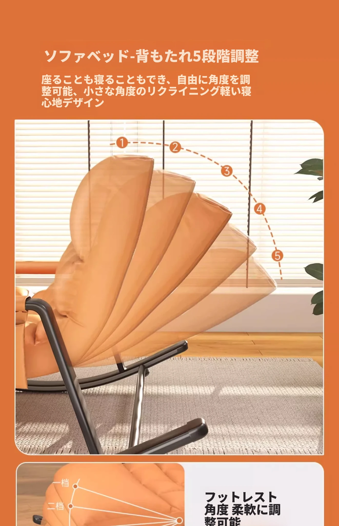 【一人用】ゴールド脚立-ビビッドオレンジ【分解不要/洗濯可能】洗濯不要テクノロジー布