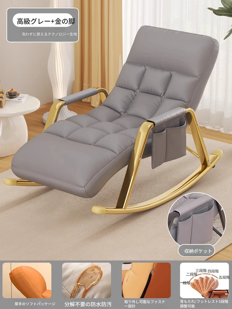 【肌に優しく無臭☀】シンプルグレー-ゴールド脚立【破損保証】洗濯不要テクノロジー布