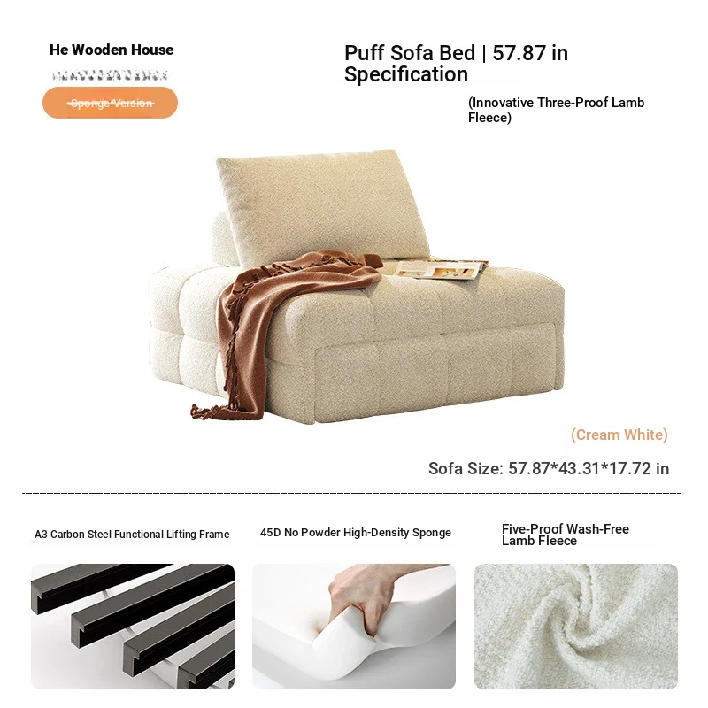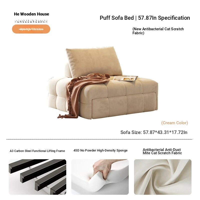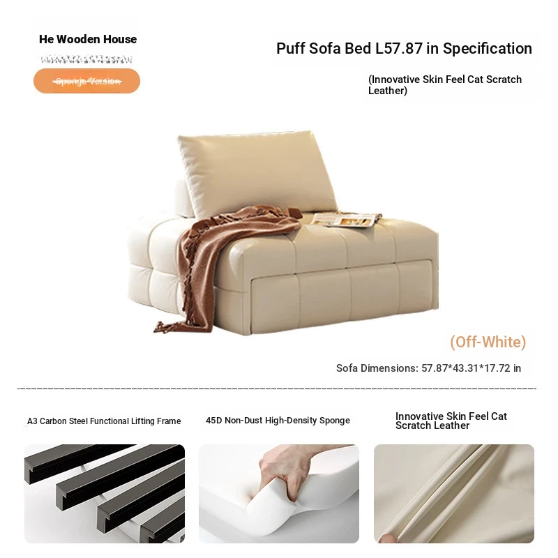 57.87in sofa bed (In Stock) [cat skin-creamy-white]]
