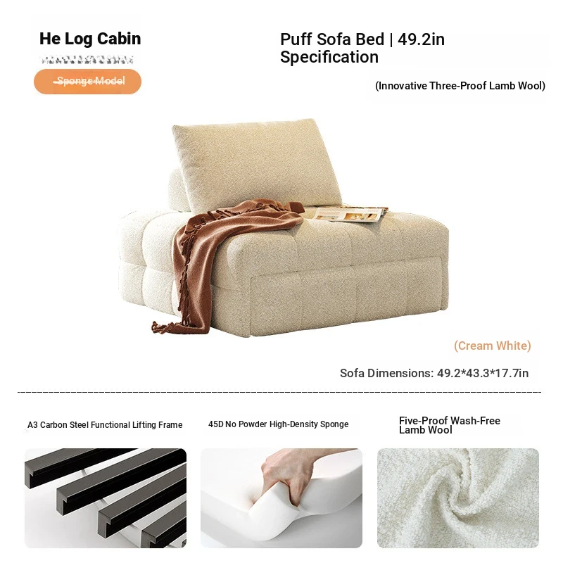 49.21in sofa bed (In Stock) [Cashmere-creamy-white]]