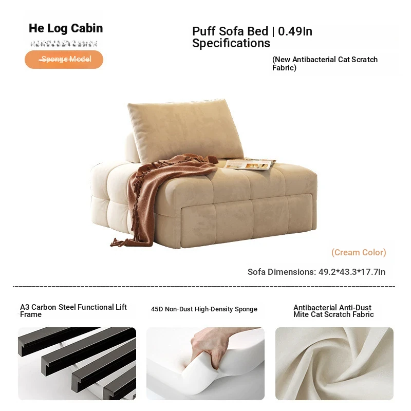 49.21in sofa bed (In Stock) [cat scratch cloth-creamy-white]]