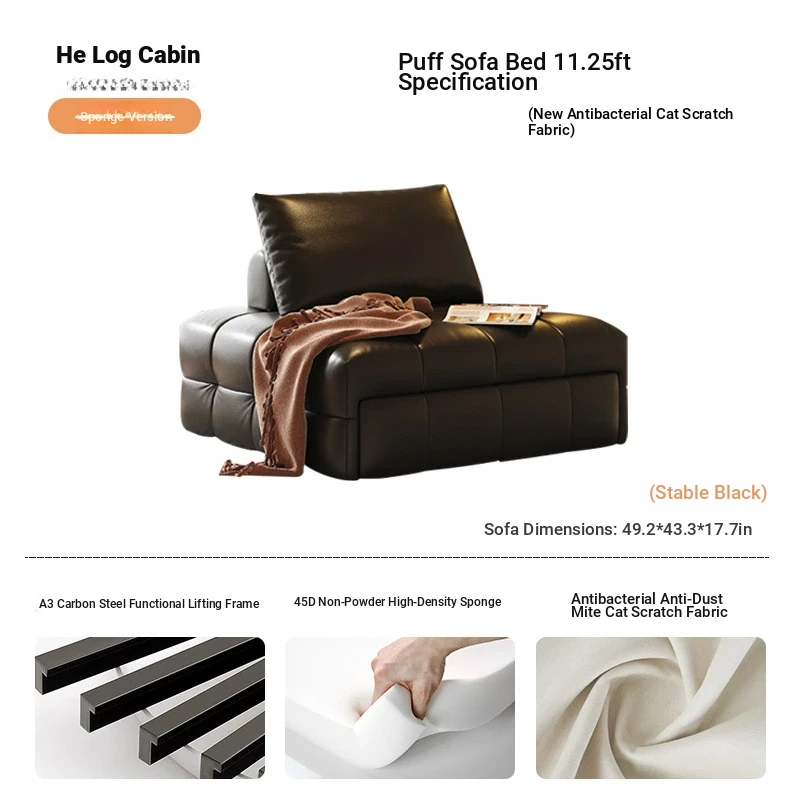 49.21in sofa bed (In Stock) [cat scratching skin-Calm Black]]
