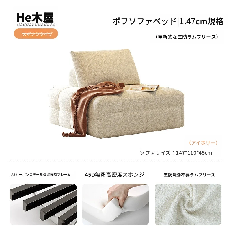 85CMソファベッド(在庫あり)【ラムフリース-アイボリー】