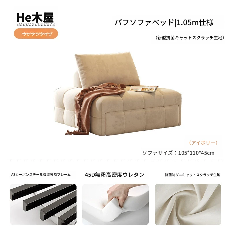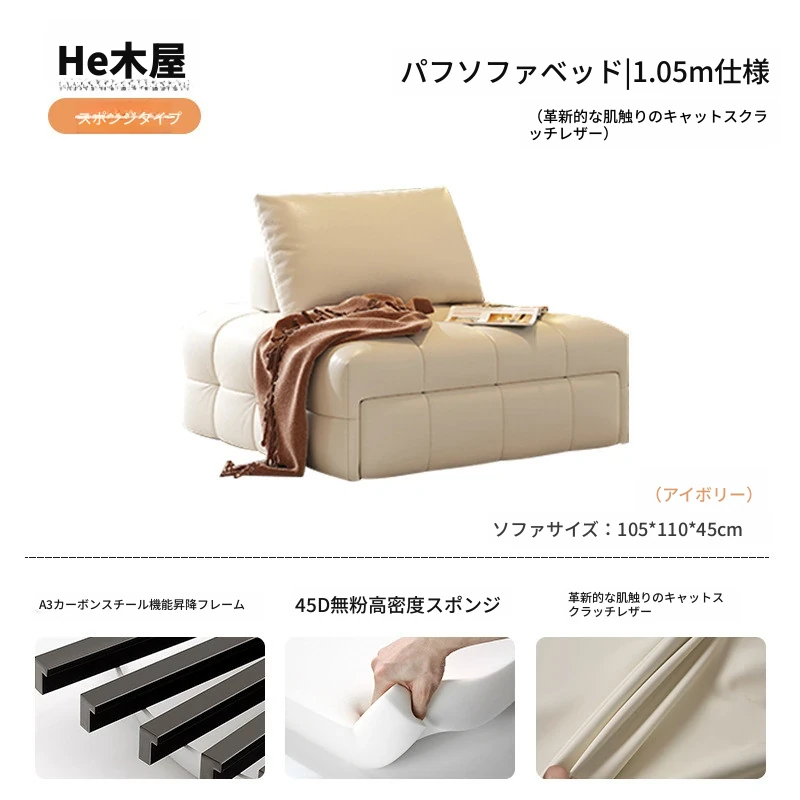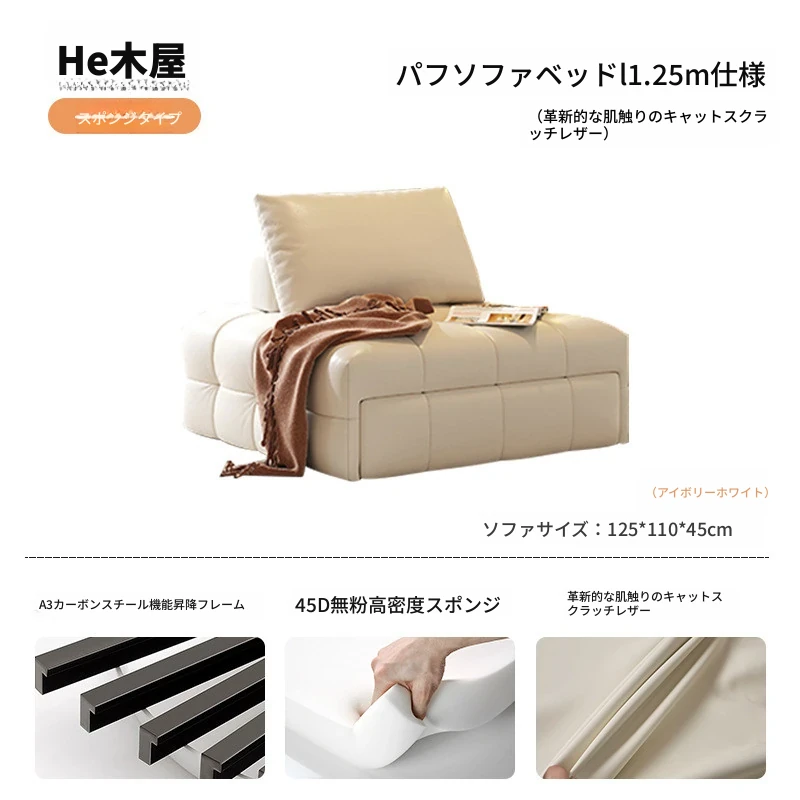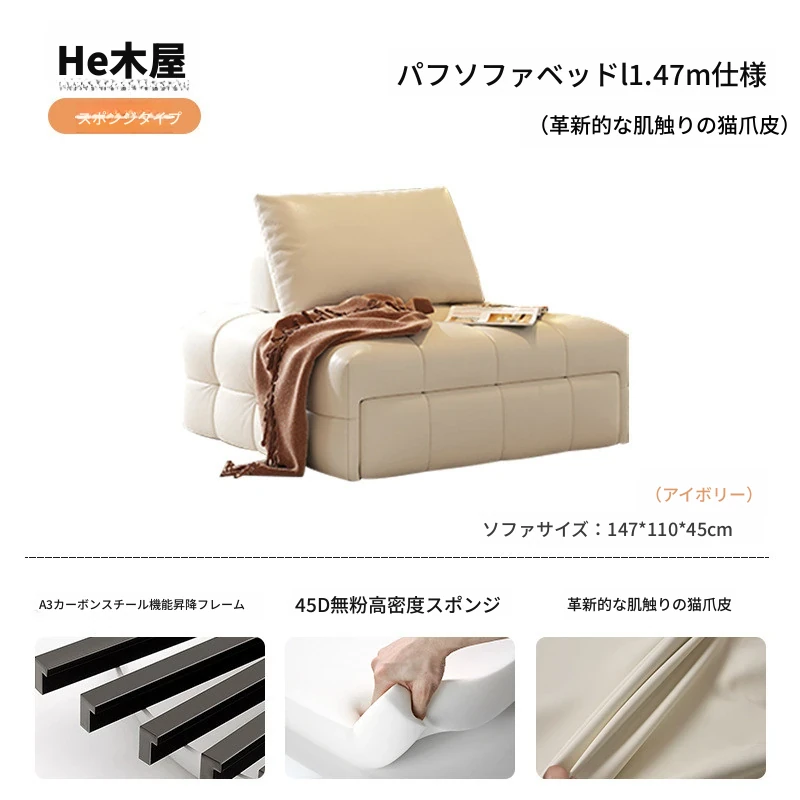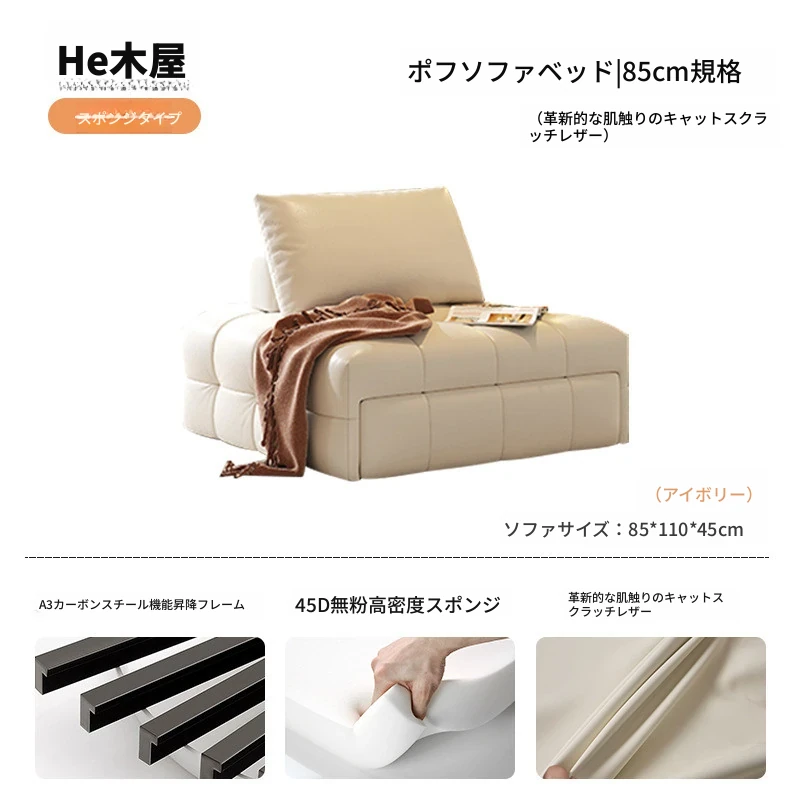85CMソファベッド(在庫あり)【猫爪皮-アイボリー】