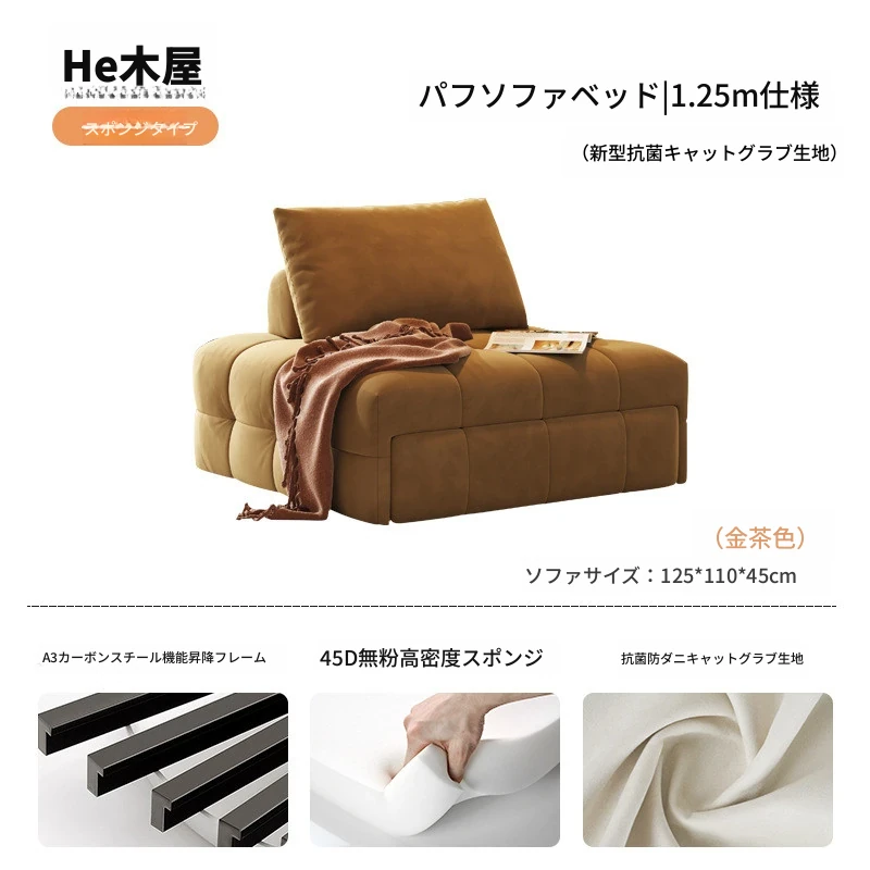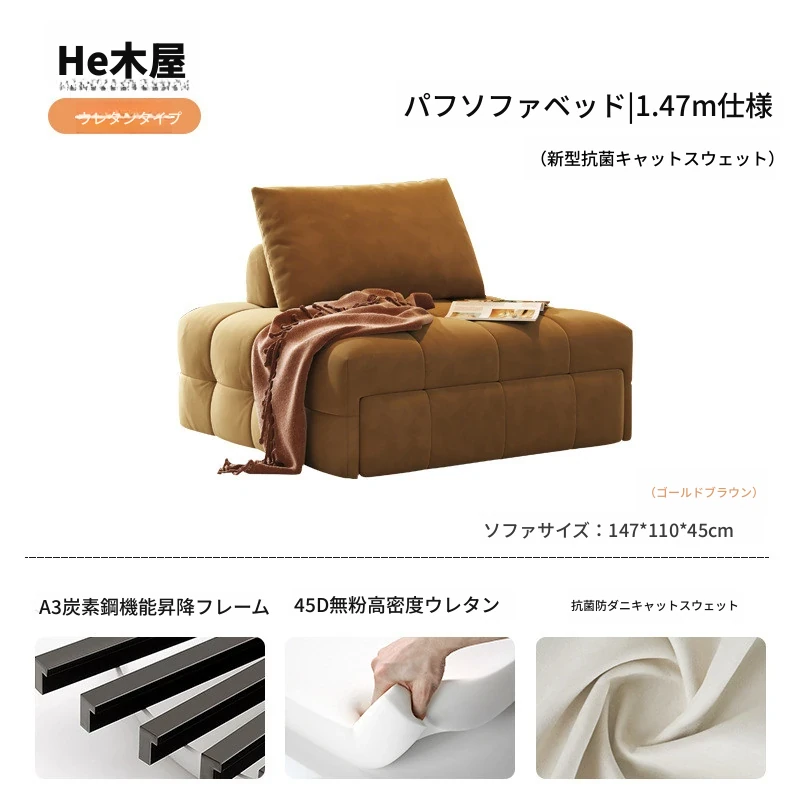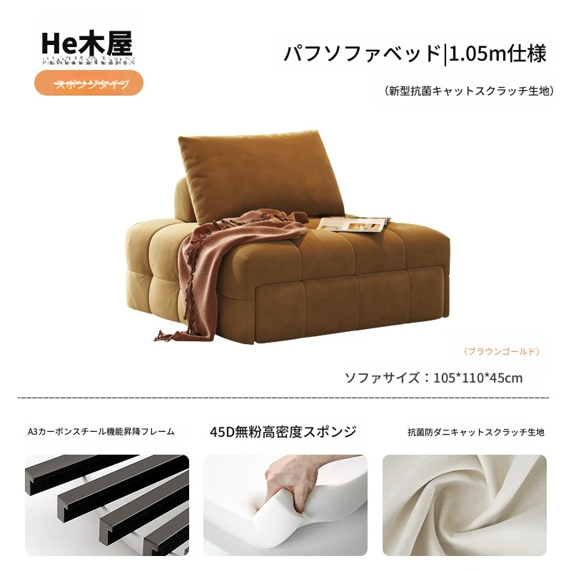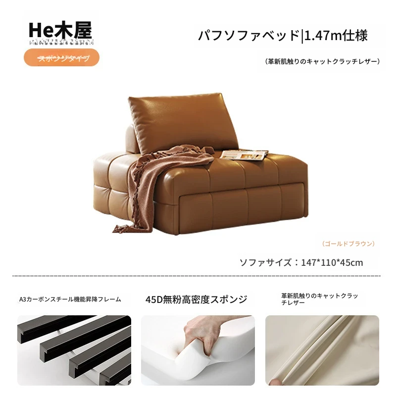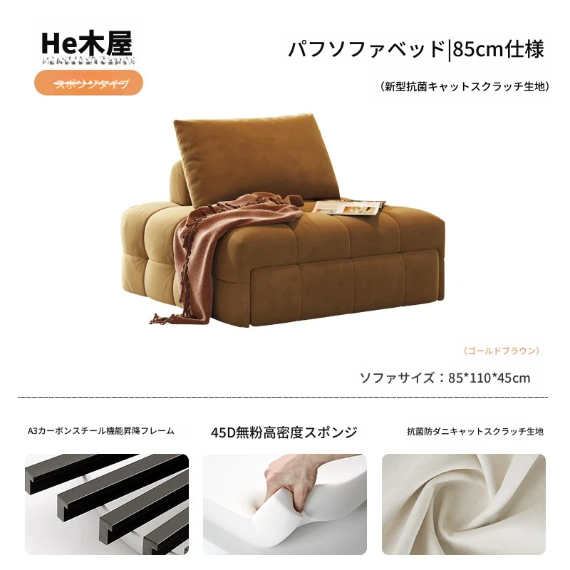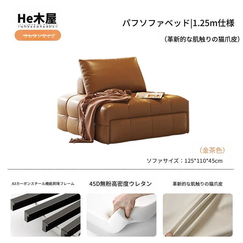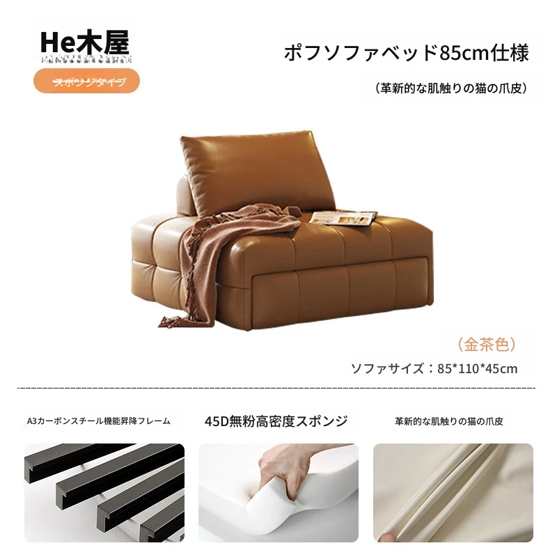 85CMソファベッド(在庫あり)【猫爪皮-金茶】