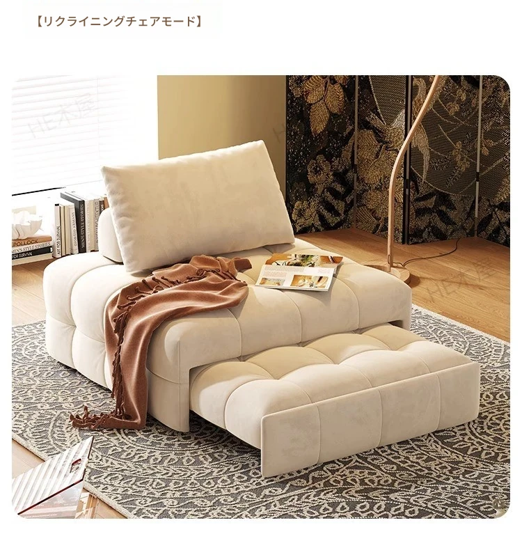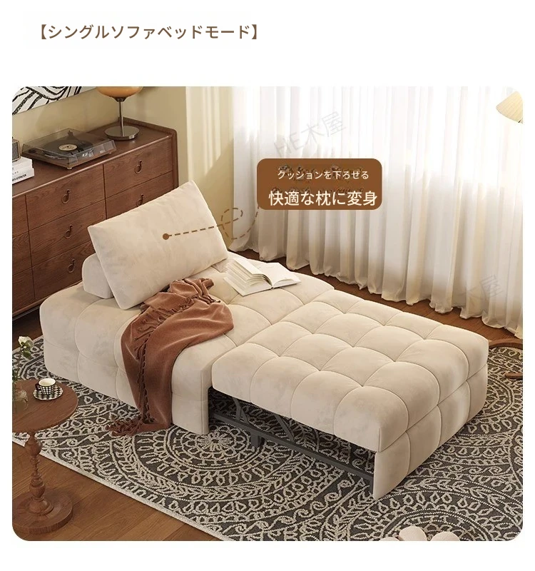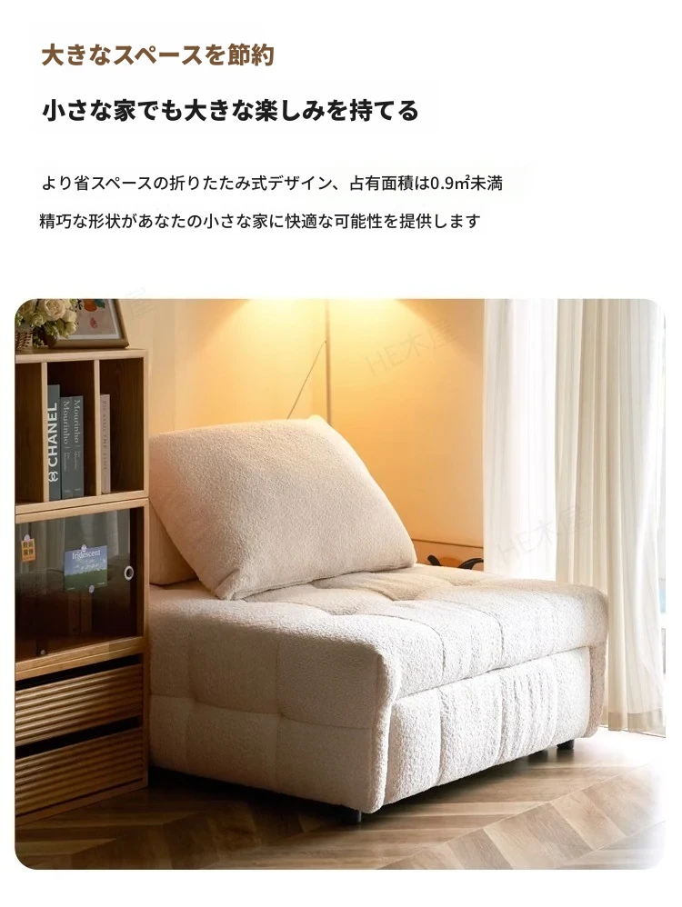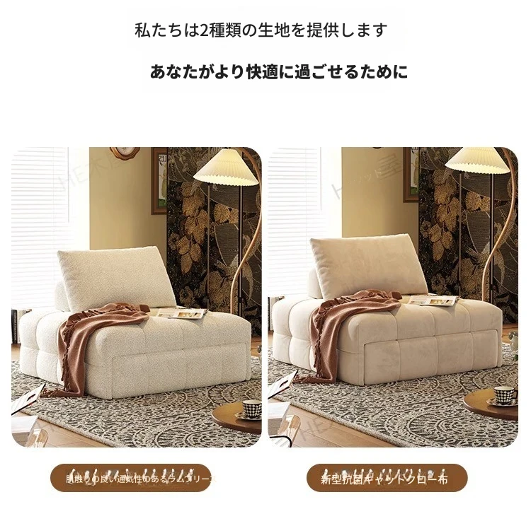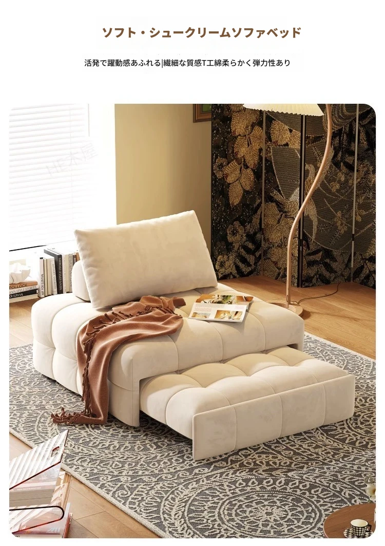 人気の日本風クリームシュー生地ソファー、小型リビングにぴったりな二用途ウッドハウススタイルのレトロな一人用ソファ。快適さとスタイルを兼ね備え、狭い空間でもおしゃれに!