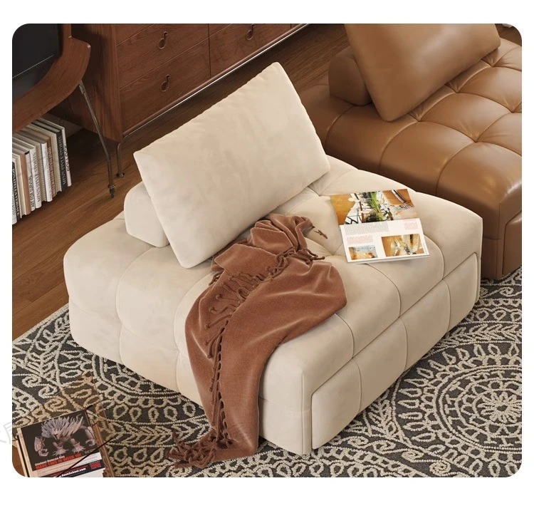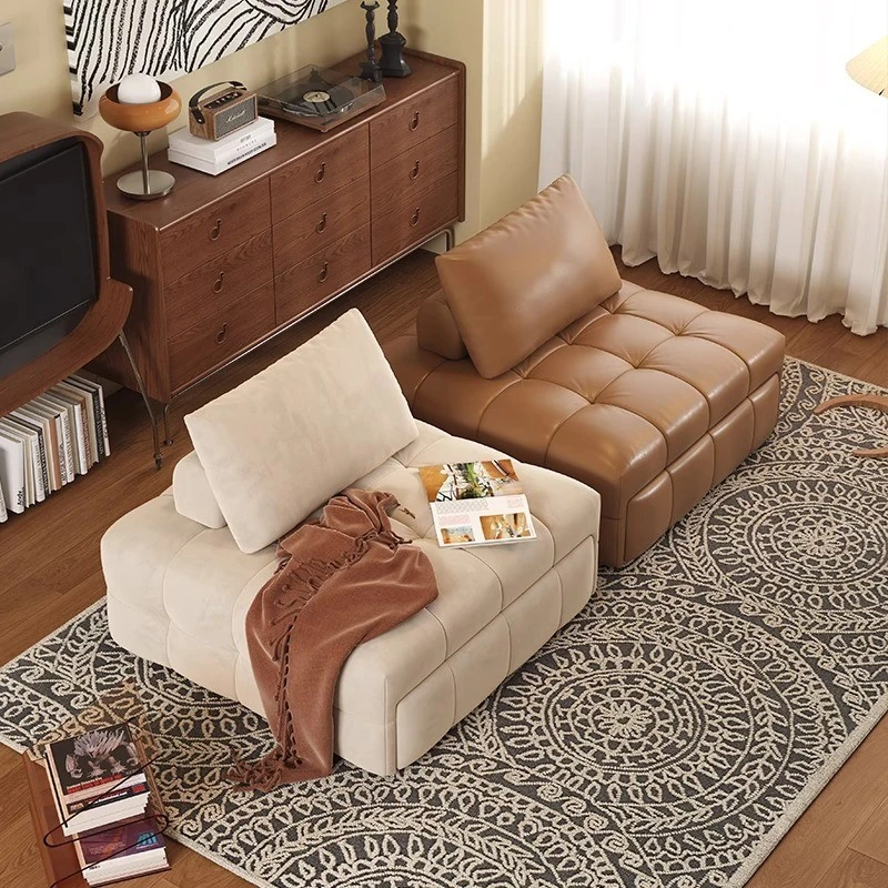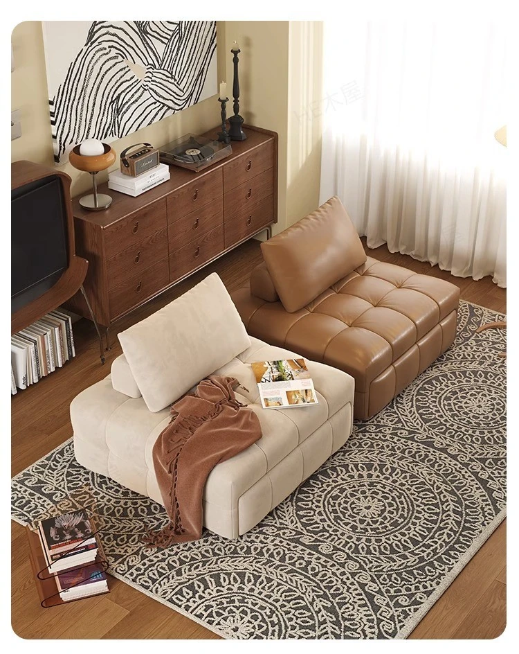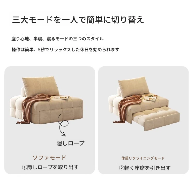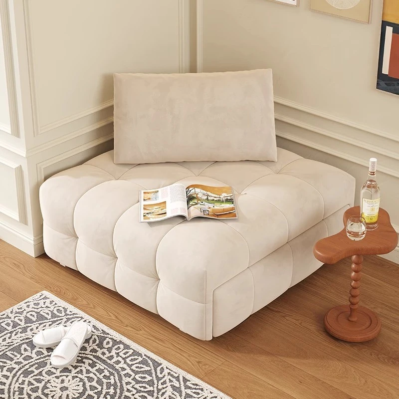 人気の日本風クリームシュー生地ソファー、小型リビングにぴったりな二用途ウッドハウススタイルのレトロな一人用ソファ。快適さとスタイルを兼ね備え、狭い空間でもおしゃれに!