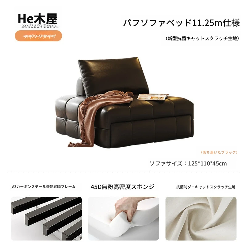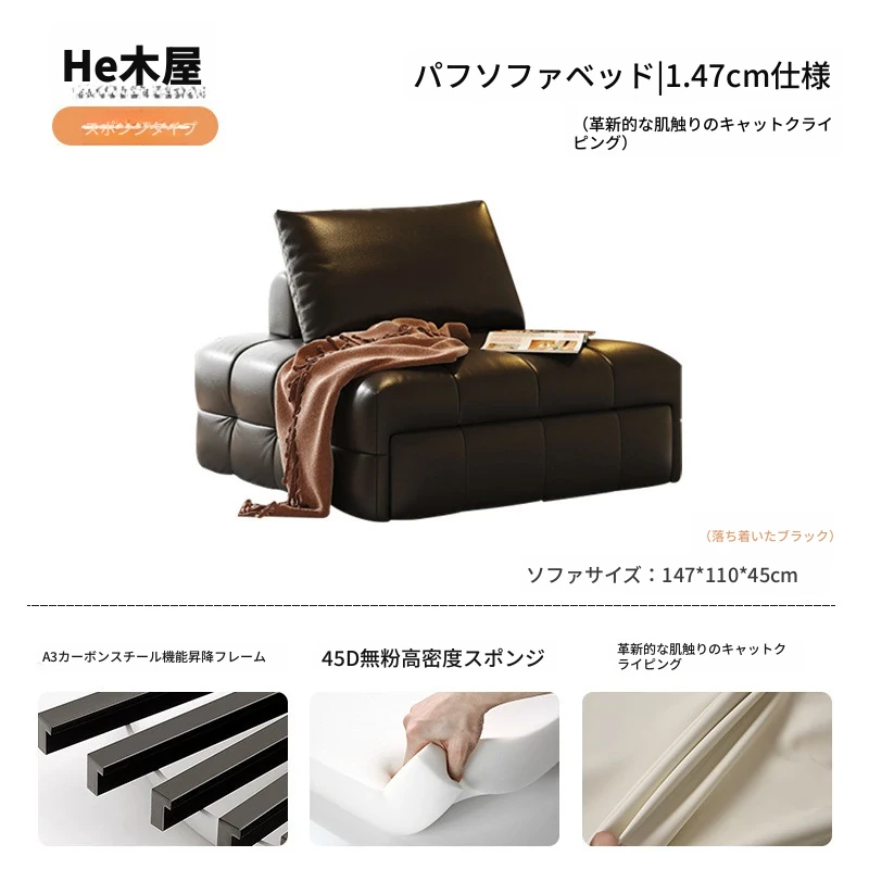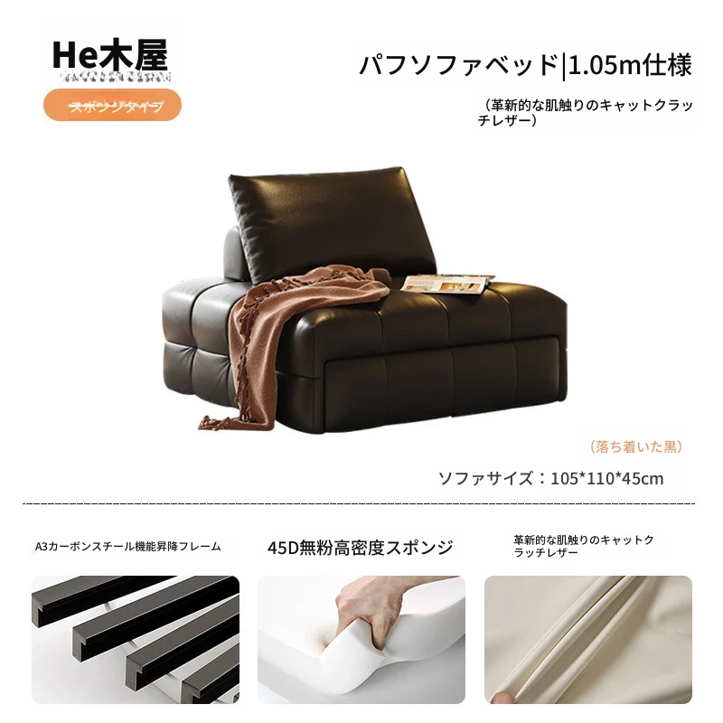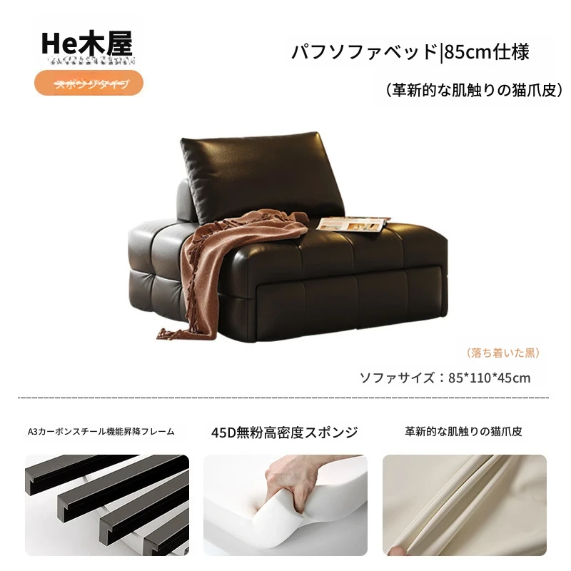 85CMソファベッド(在庫あり)【猫爪皮-落ち着いた黒】