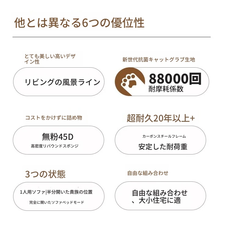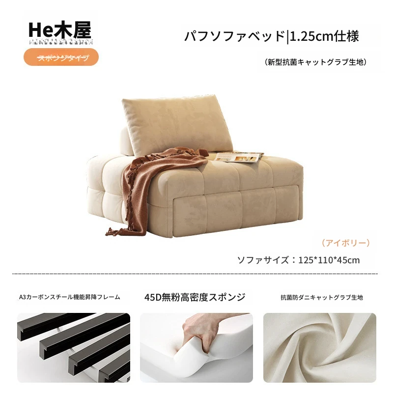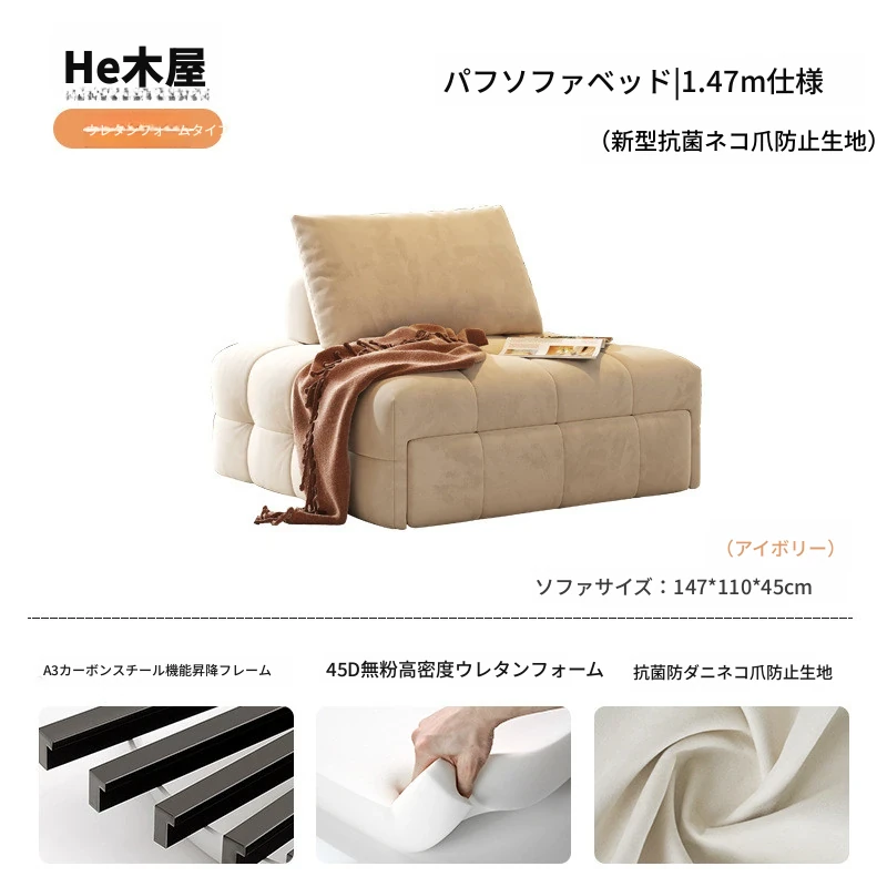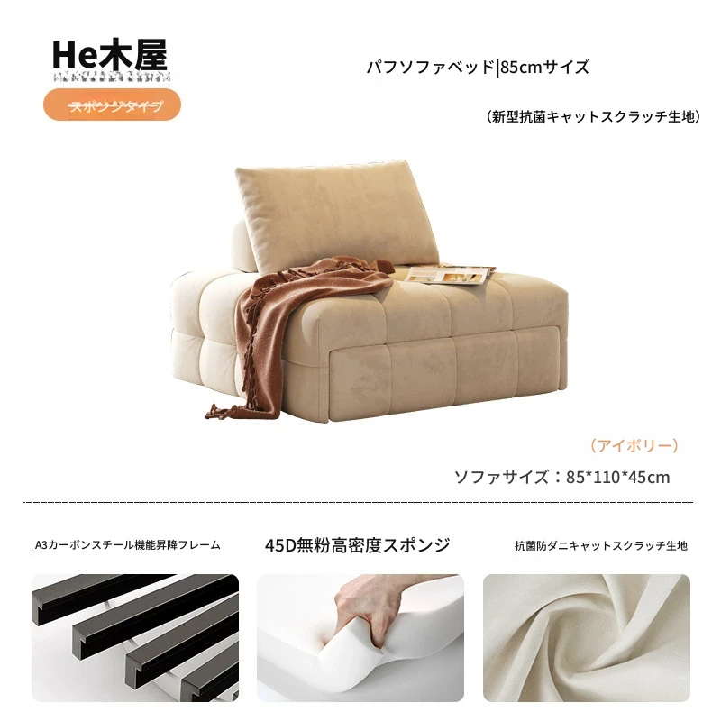 85CMソファベッド(在庫あり)【猫爪生地-アイボリー】