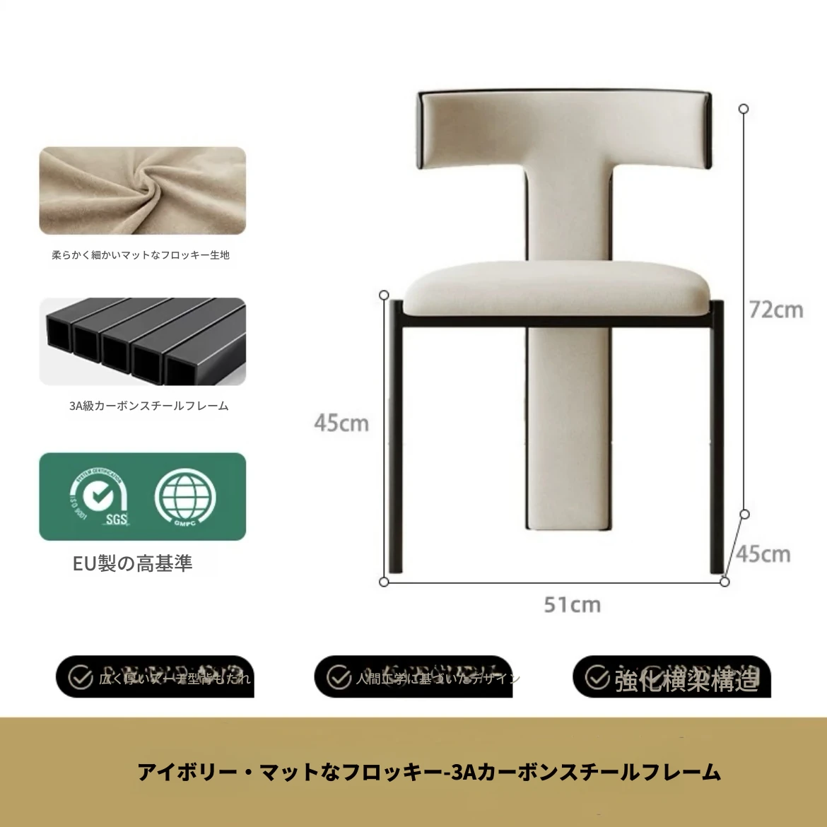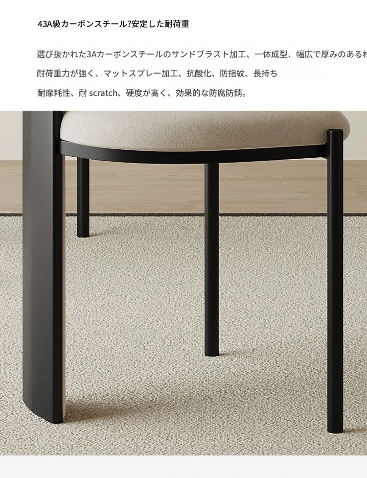 【A款-米白/マットベルベット】背もたれS級カーボンスチール