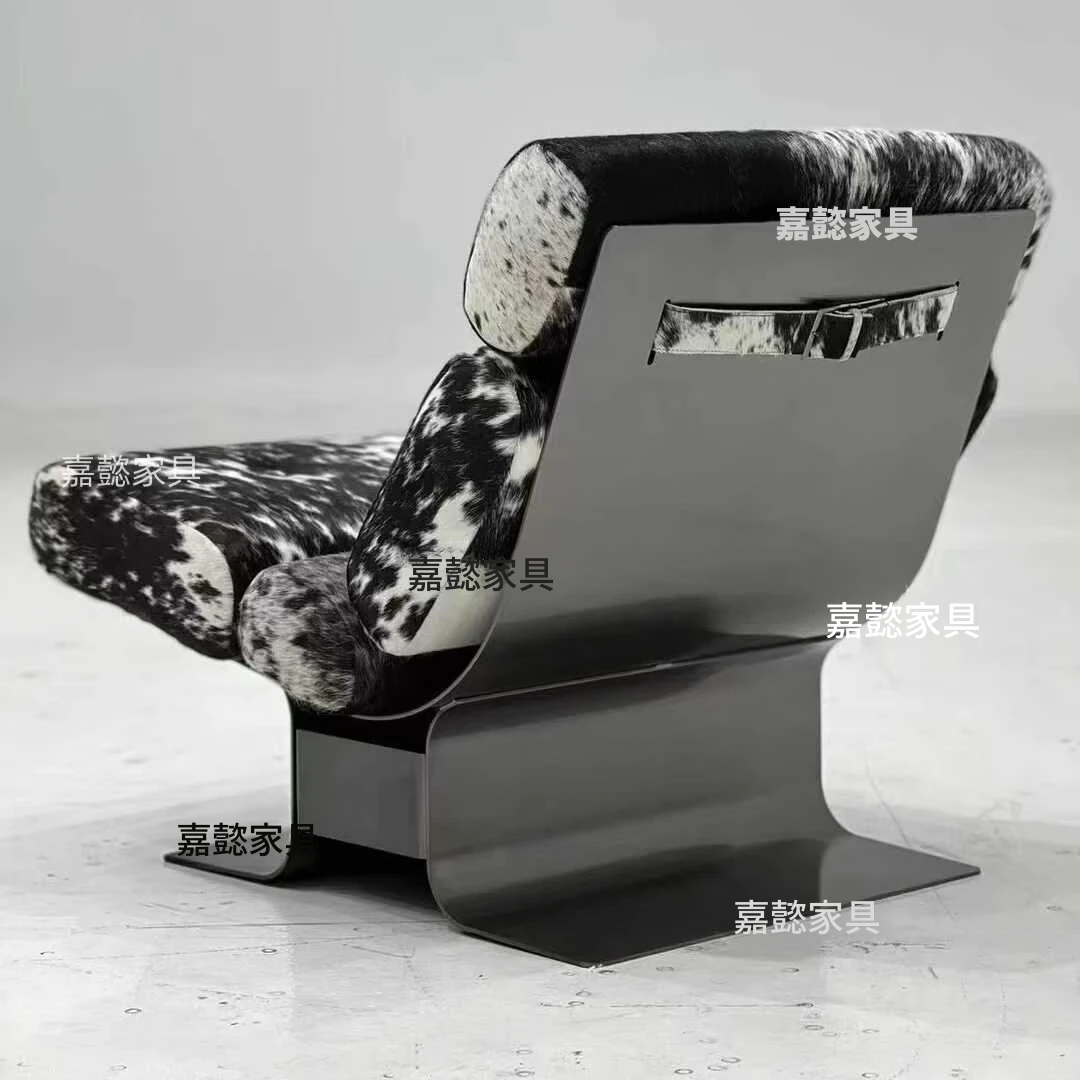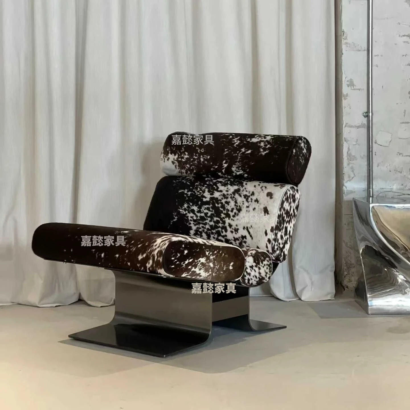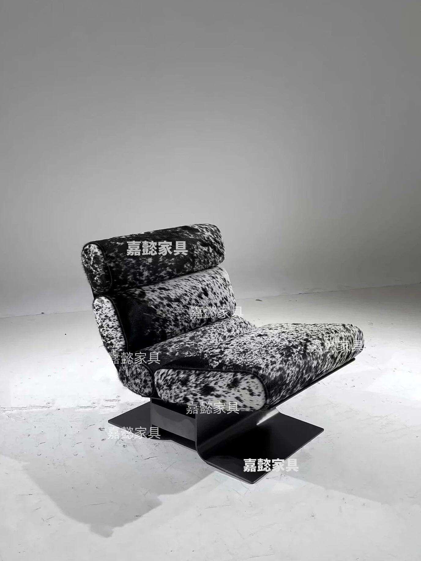 イタリアンミニマルデザインの馬毛一人掛けソファチェア - デザイナー仕様のラグジュアリーなリビング&バルコニー用リラックスチェア。現代的でシンプルなスタイルが魅力!