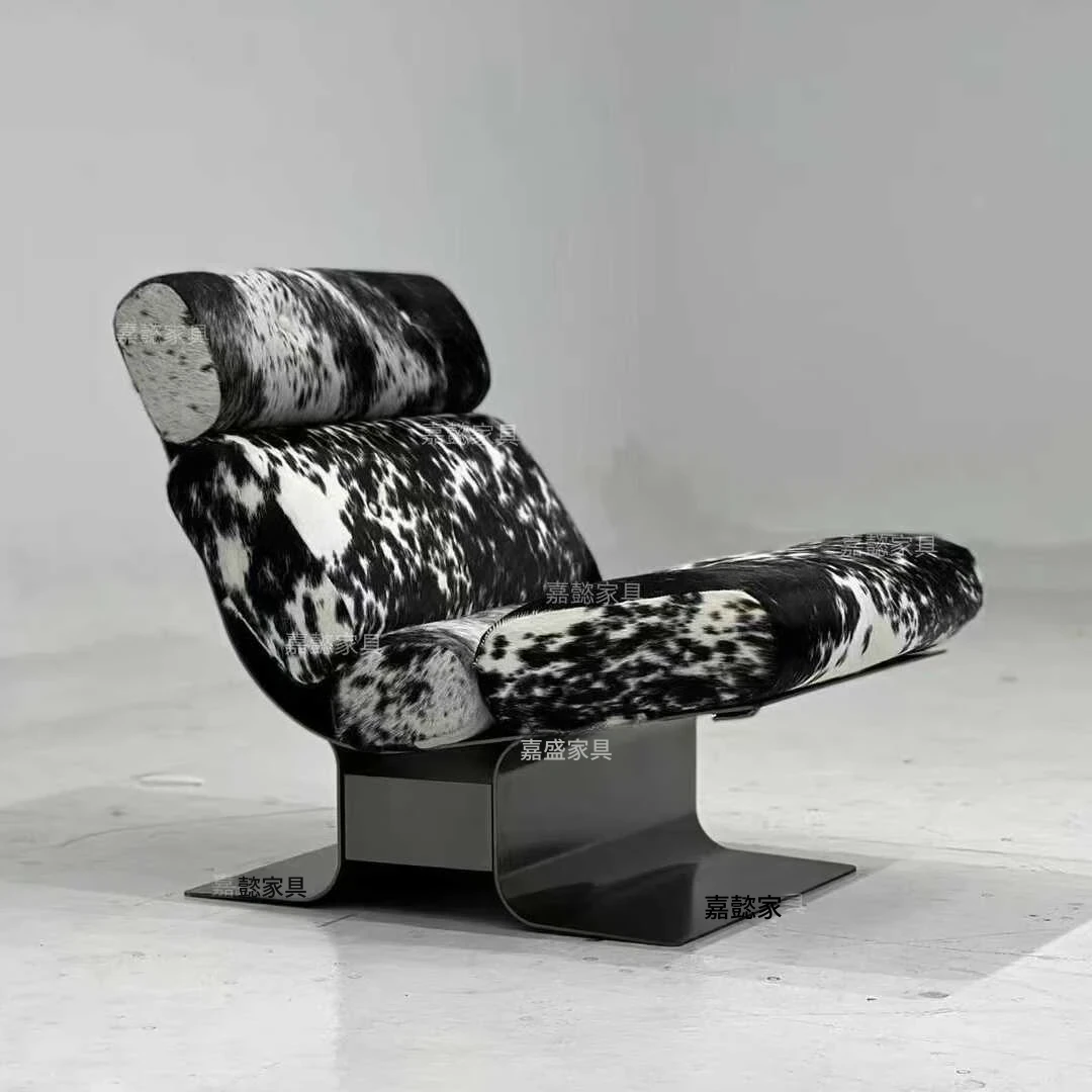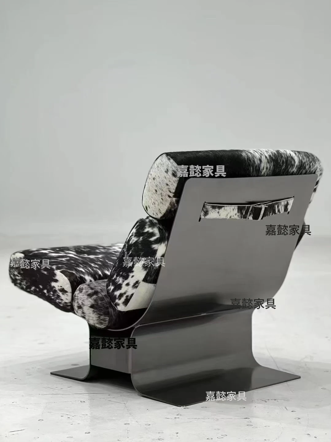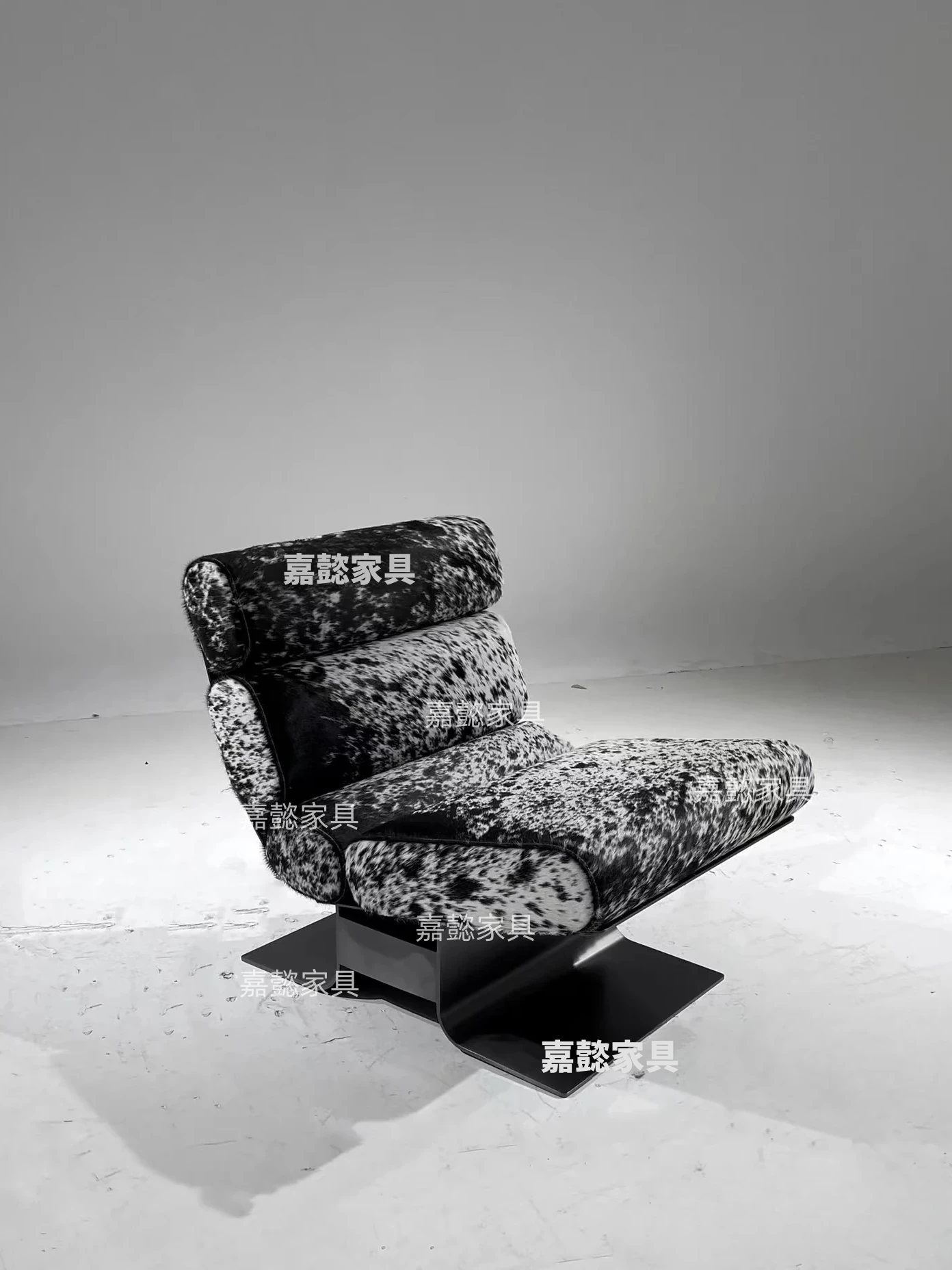イタリアンミニマルデザインの馬毛一人掛けソファチェア - デザイナー仕様のラグジュアリーなリビング&バルコニー用リラックスチェア。現代的でシンプルなスタイルが魅力!