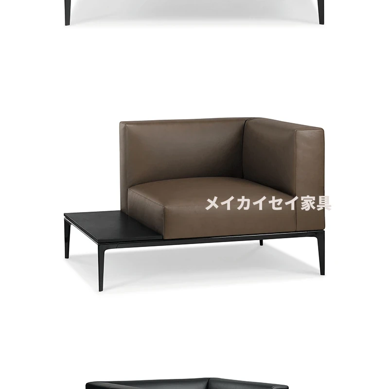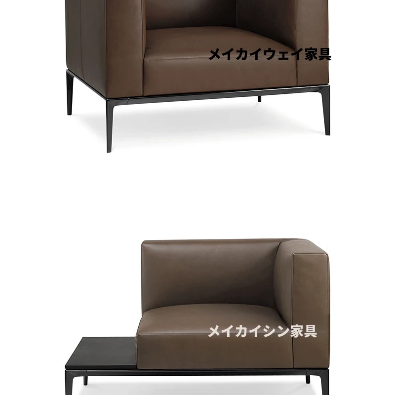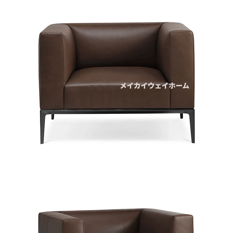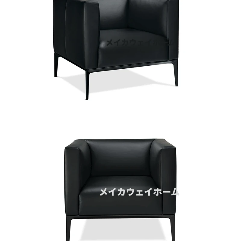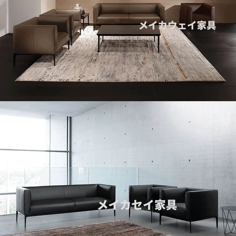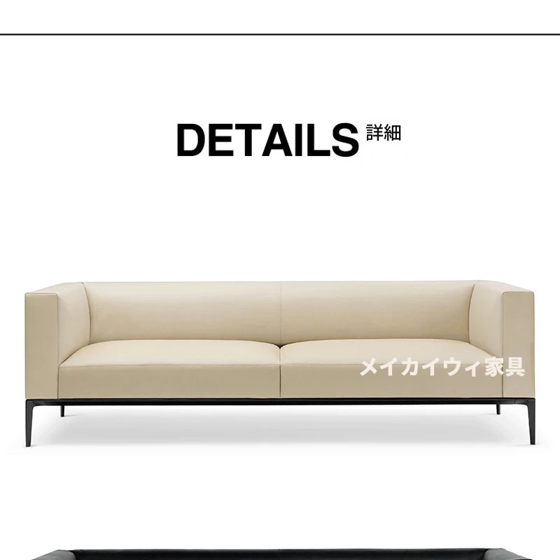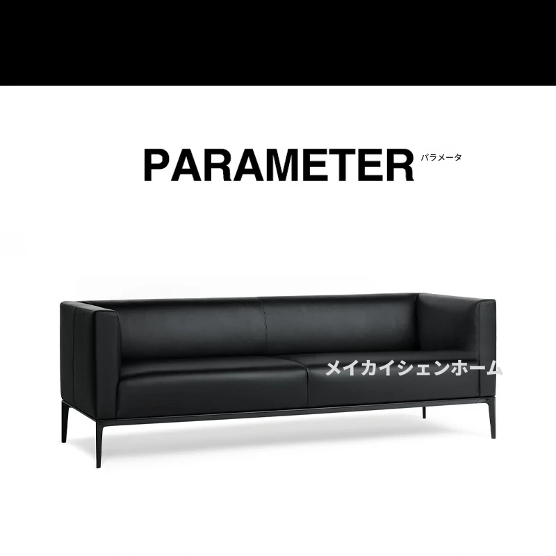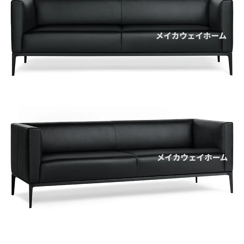 イタリアンミニマルデザイン本革ソファ・3人掛け・ストレートタイプ・デザイナーズラウンジ・オフィス受け付け用・ブラックレザーソファ - シンプルで洗練された空間を演出します。