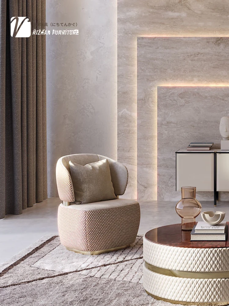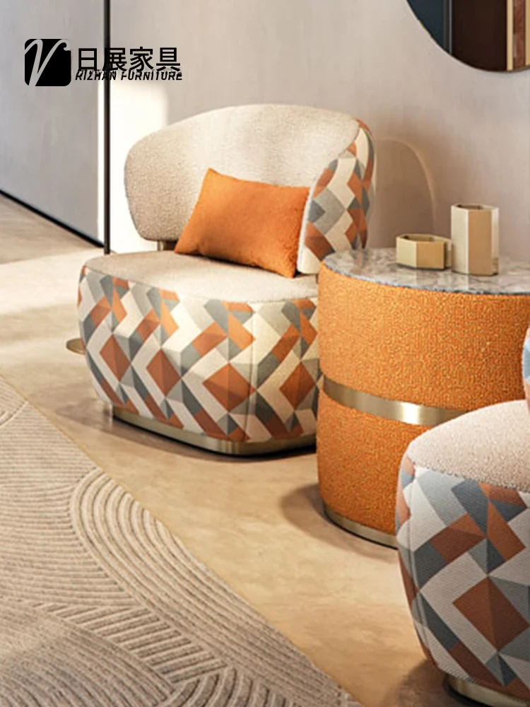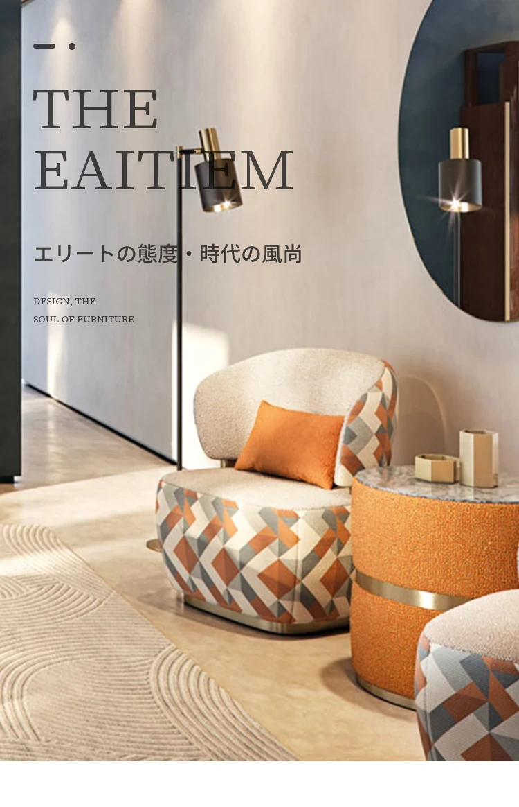 イタリアンシンプルデザインの高級ソファチェア|ホテルスタイルのモデルルームにもぴったり|バルコニー用リラックスチェア|アートストライプとグラフィティでおしゃれ感アップ!