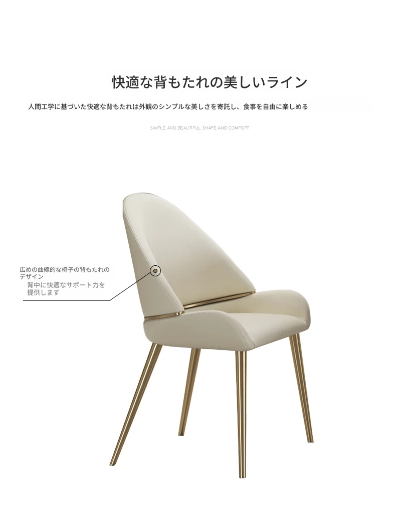 現代的シンプルでスタイリッシュなダイニングチェア、リラックスできる背もたれ付き。小型住宅にもぴったりの軽奢なデザイン。大理石テーブルと組み合わせて、洗練された食卓を演出します!