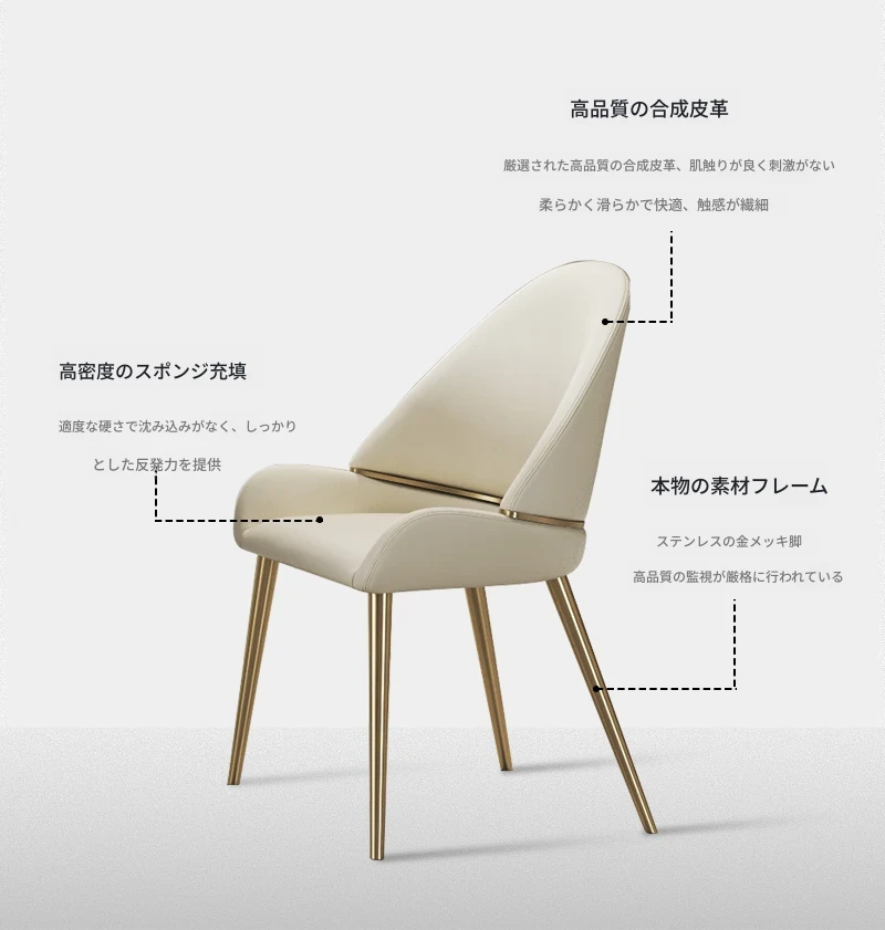 イタリアンミニマリストデザインのダイニングチェア、ラグジュアリー感あふれるソフトパッケージのリビング用椅子。おしゃれな背もたれ付きで、あなたのダイニングルームを格上げします。快適さとスタイルを両立した一品です!