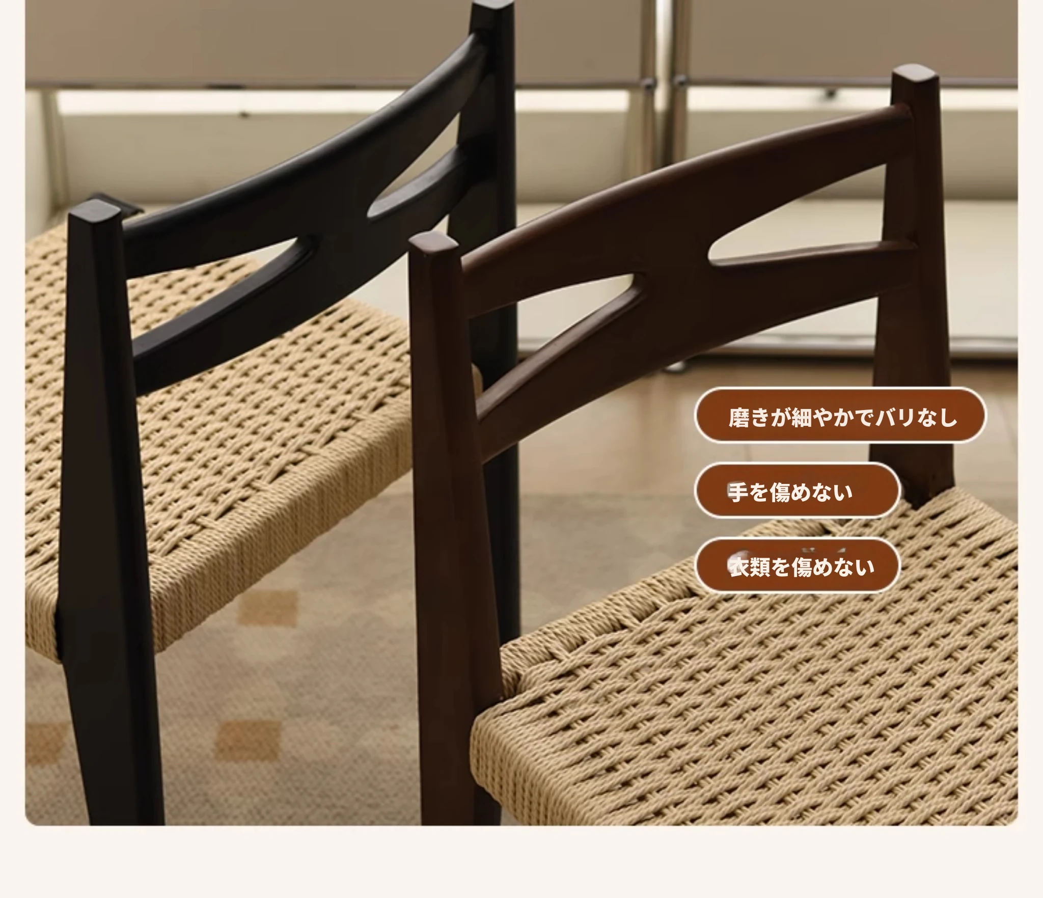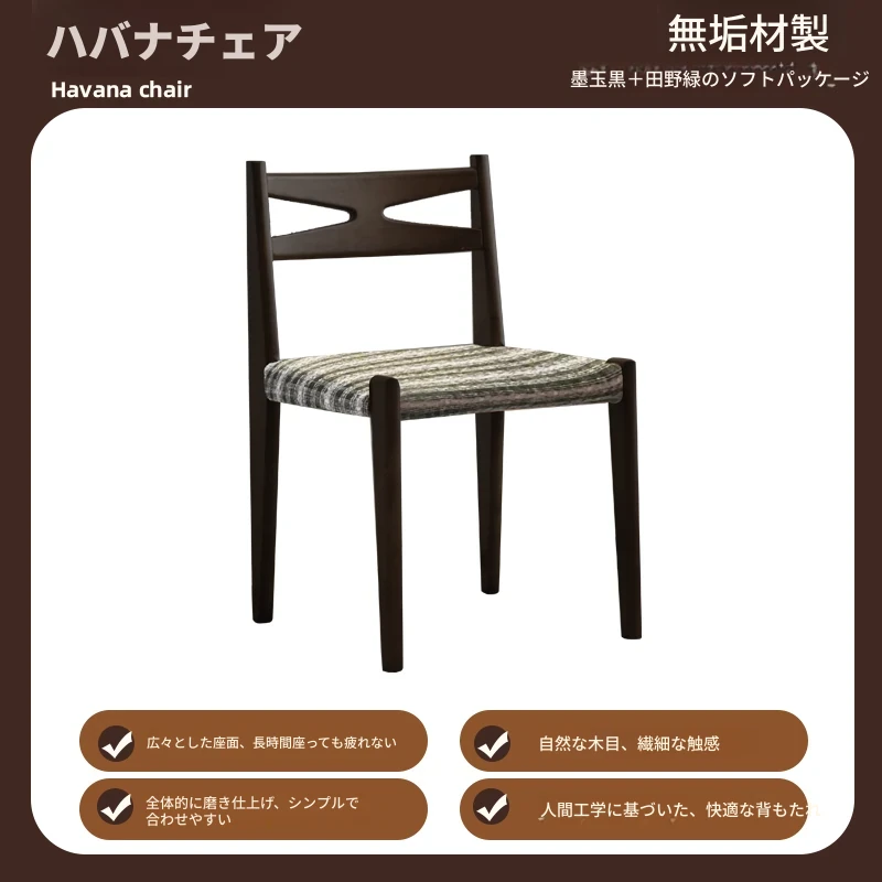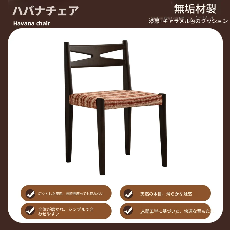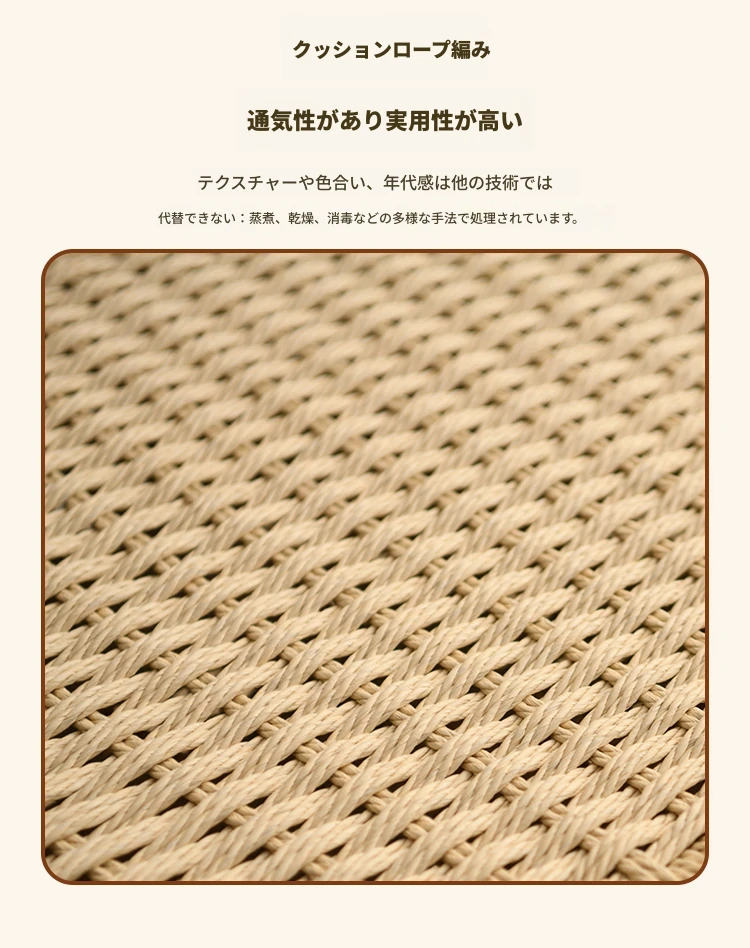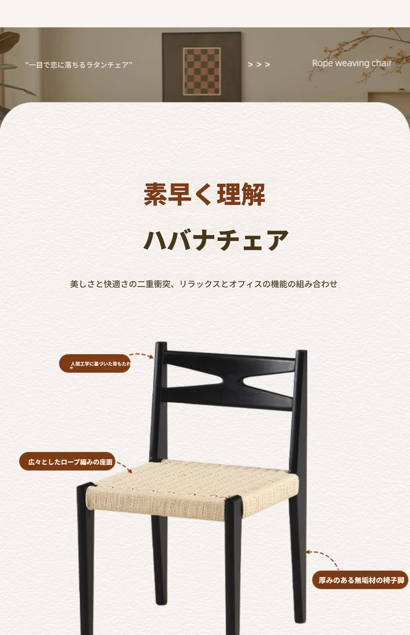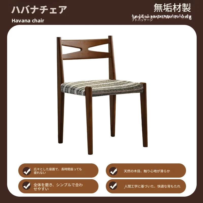 和モダンな侘寂スタイルの無垢材ダイニングテーブル&椅子セット、麻ロープ編みのウィッジチェア、ブラックウォールナットの背もたれ付き。フランス風のヴィンテージデザインで、家庭にぴったりのエレガントな雰囲気を演出します。