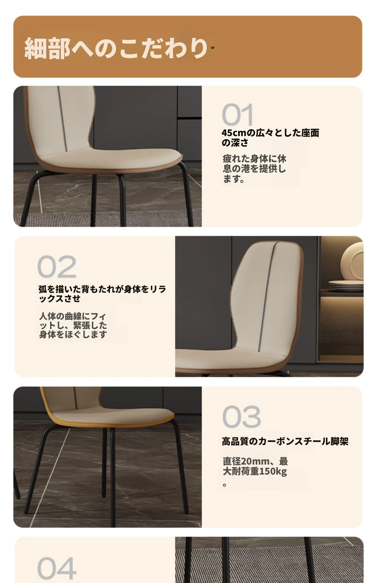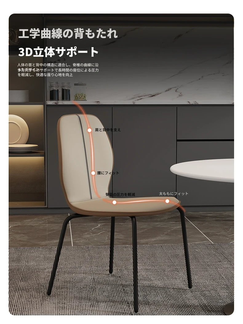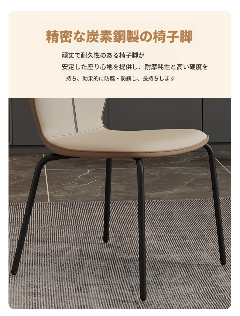 現代的シンプルでスタイリッシュなダイニングチェア、リラックスできる背もたれ付き。小型住宅にもぴったりの軽奢なデザイン。大理石テーブルと組み合わせて、洗練された食卓を演出します!