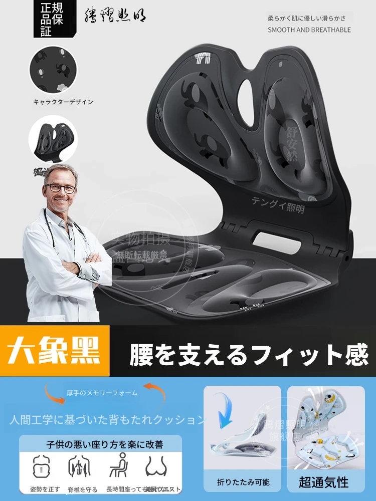 【ドイツ品質】折りたたみタイプ-エレファントブラック(猫背さようなら⭐姿勢矯正)