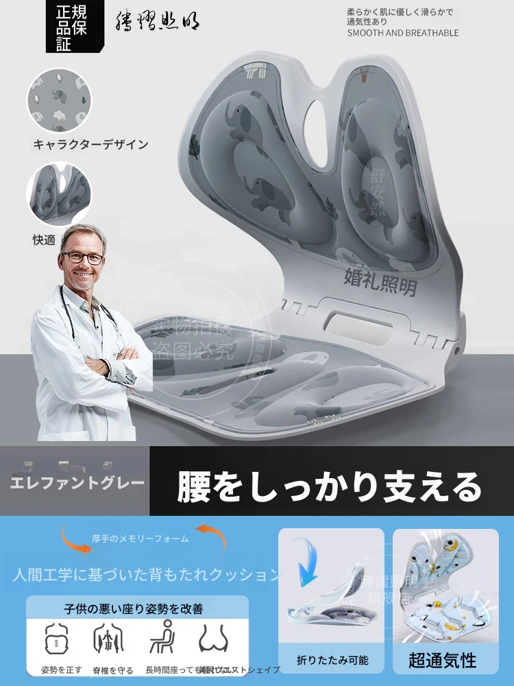 【ドイツ品質】折りたたみタイプ-エレファントグレー(猫背さようなら⭐姿勢矯正)