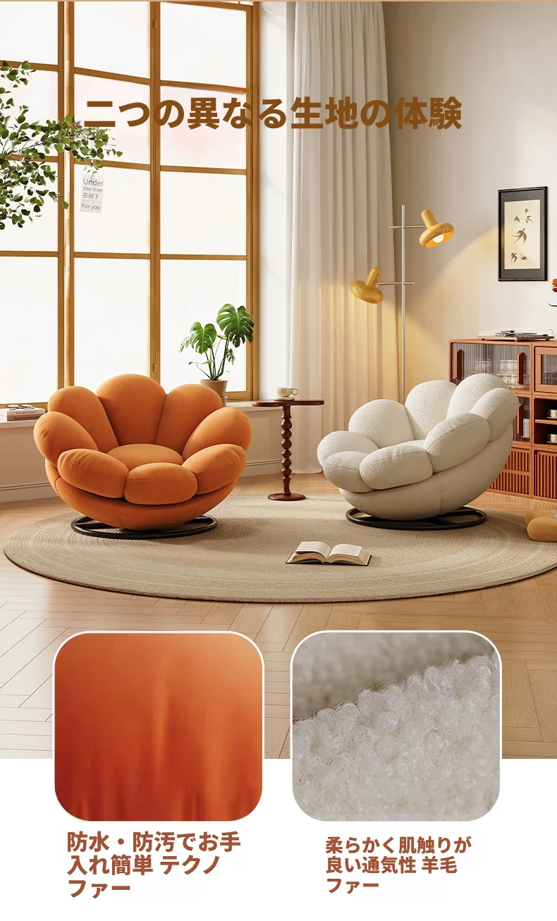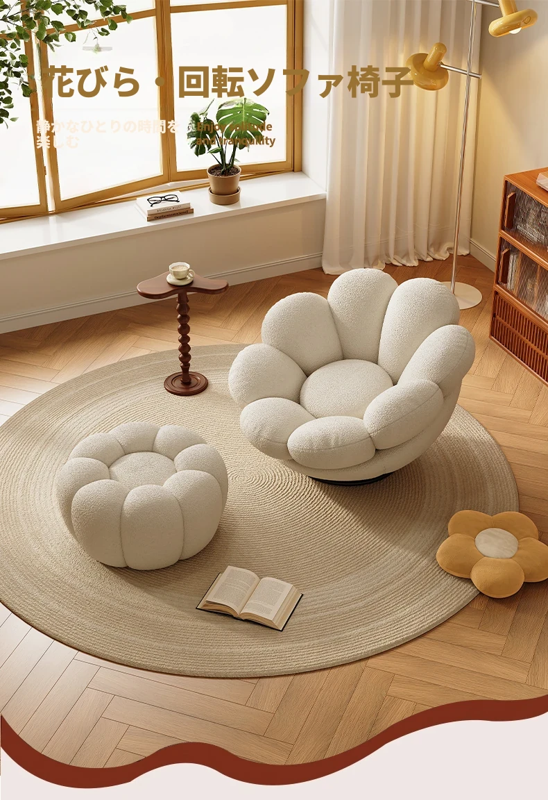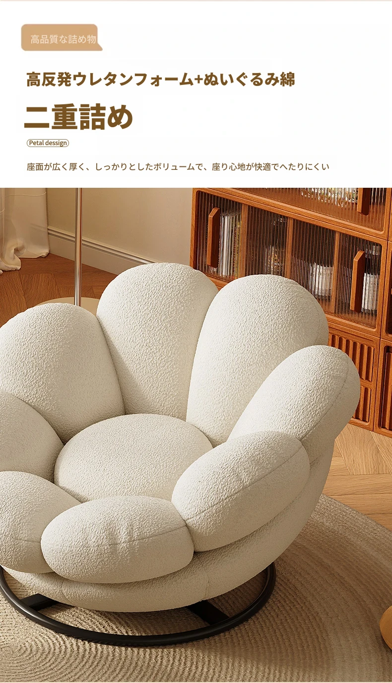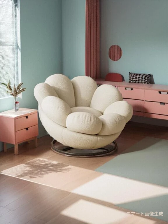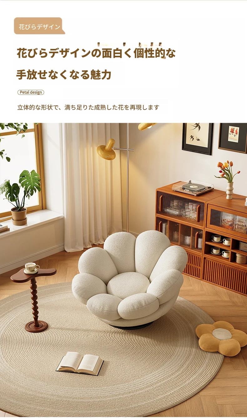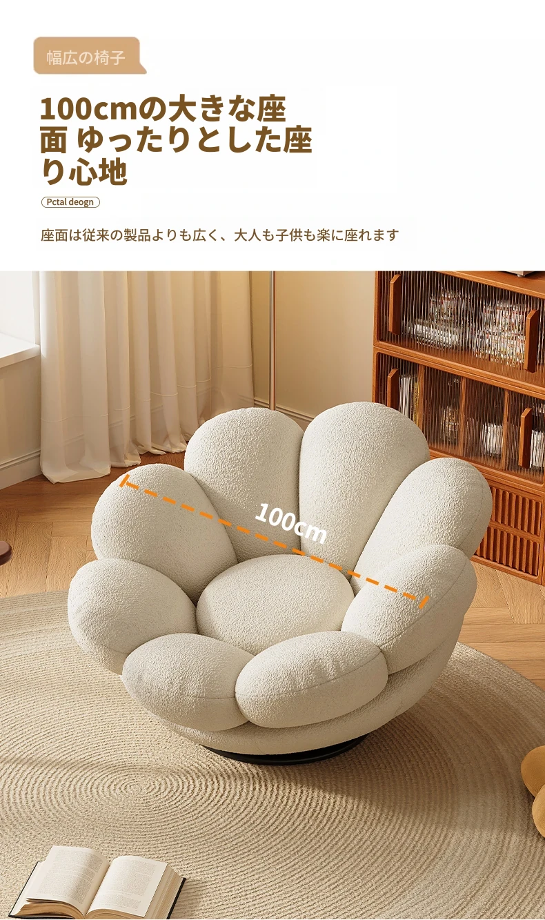 おしゃれで快適なリラックスチェア!北欧風のローズペタルソファ、リビングやバルコニーにぴったり。人気のひとり用回転ソファで、くつろぎの時間をお楽しみください!