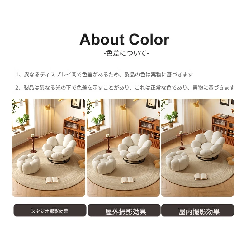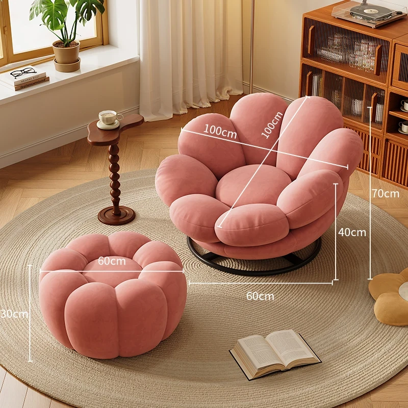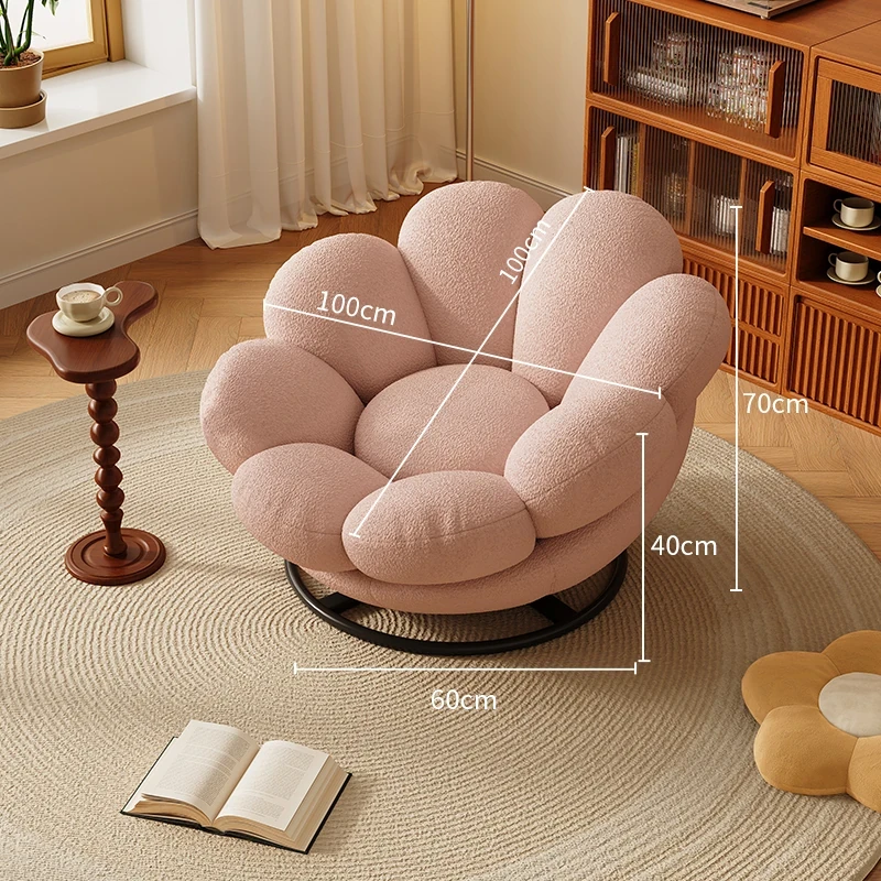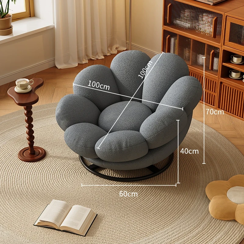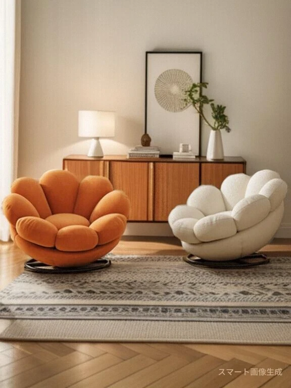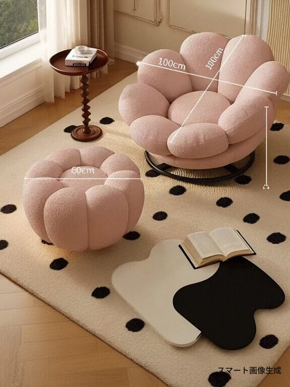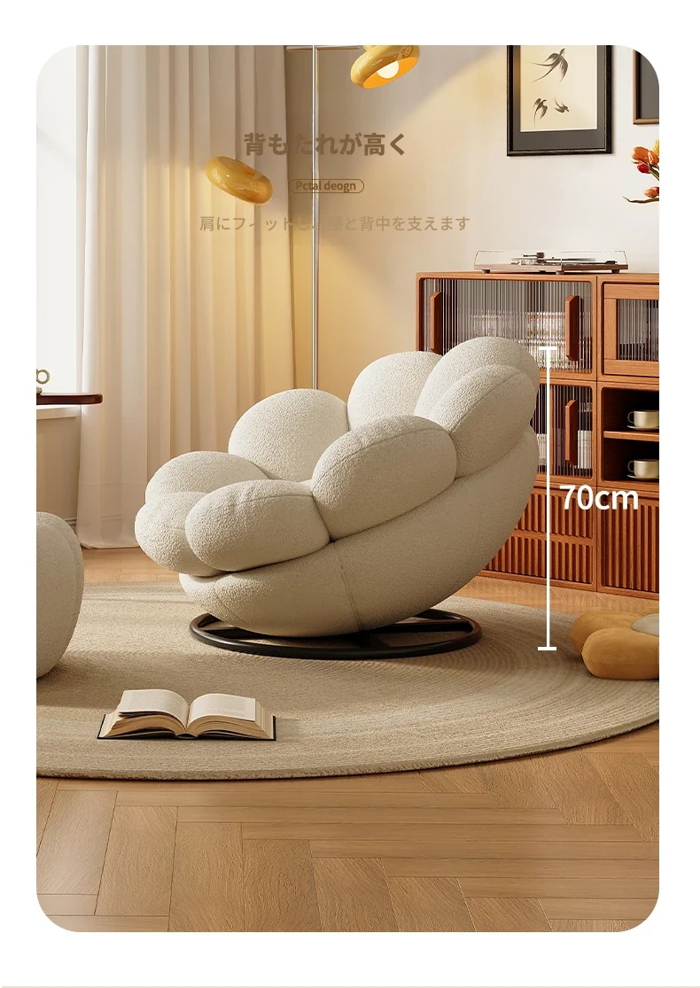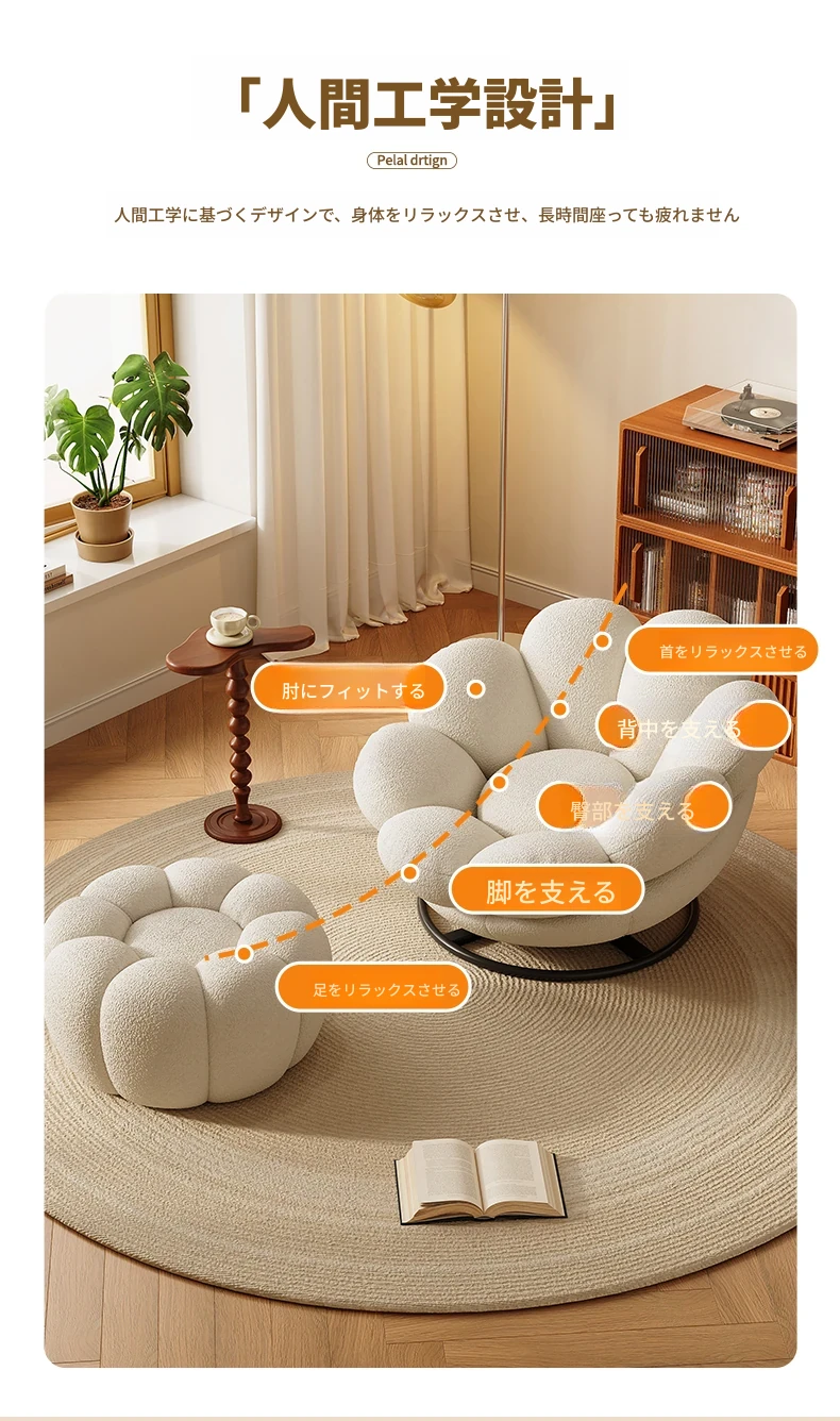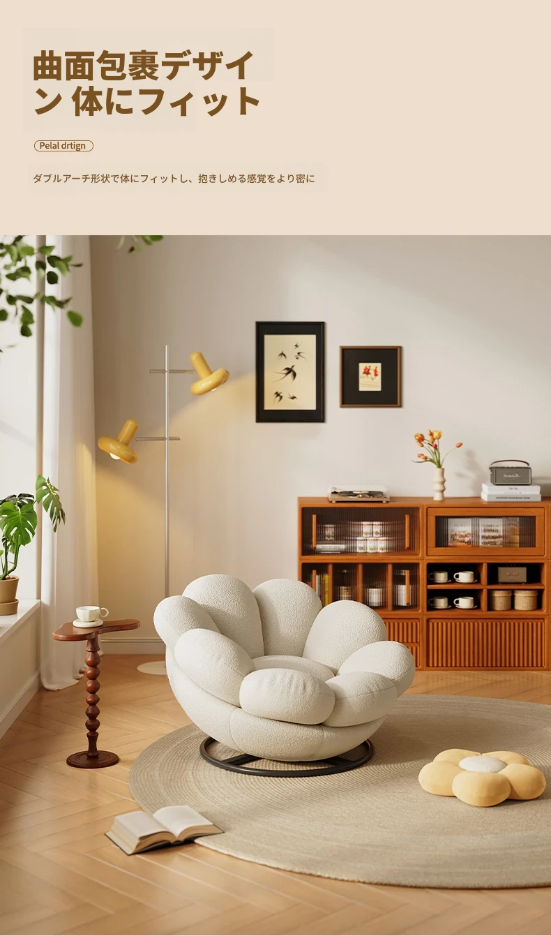 おしゃれで快適なリラックスチェア!北欧風のローズペタルソファ、リビングやバルコニーにぴったり。人気のひとり用回転ソファで、くつろぎの時間をお楽しみください!