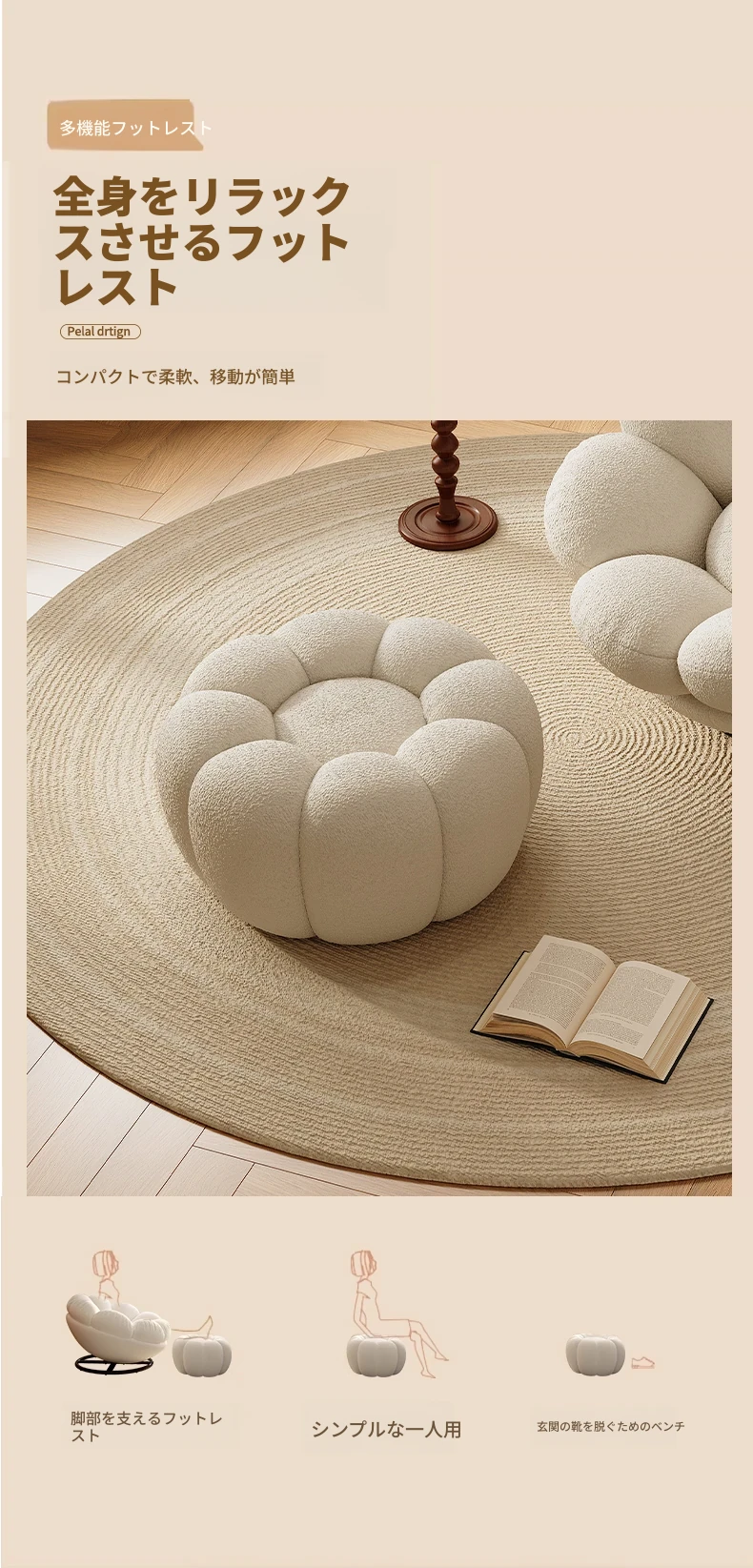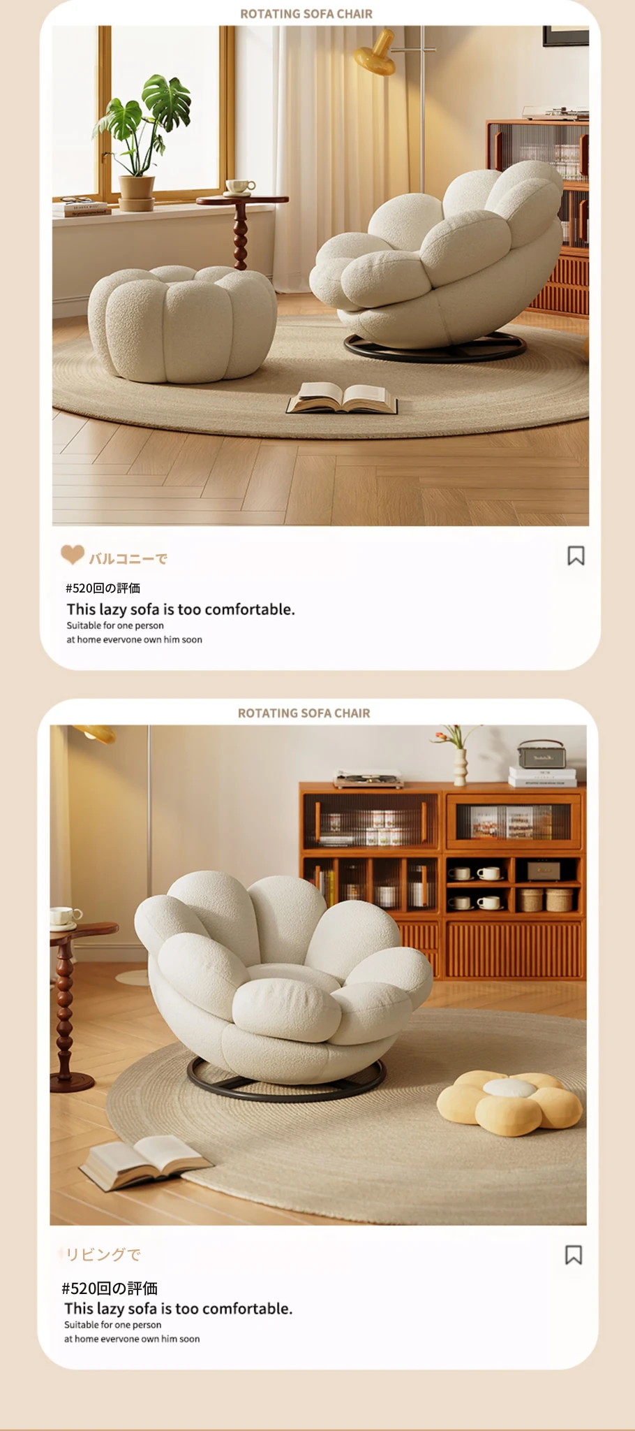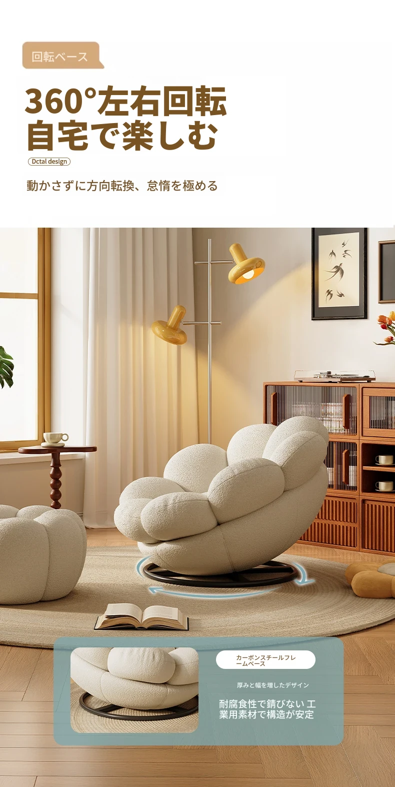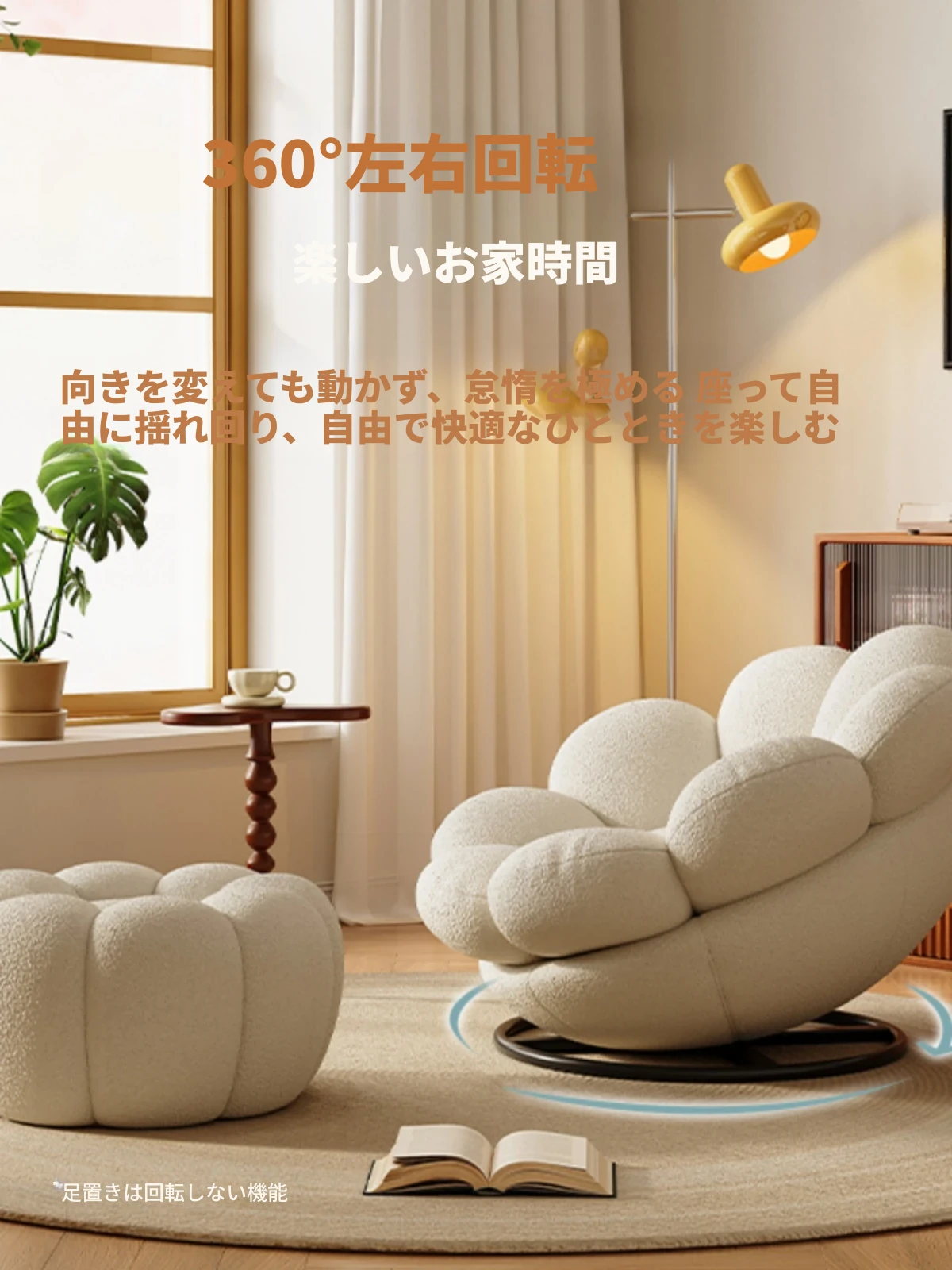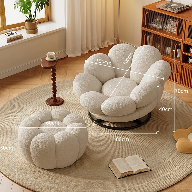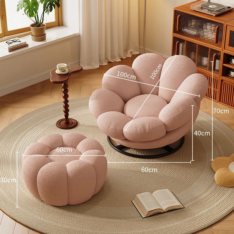 おしゃれで快適なリラックスチェア!北欧風のローズペタルソファ、リビングやバルコニーにぴったり。人気のひとり用回転ソファで、くつろぎの時間をお楽しみください!