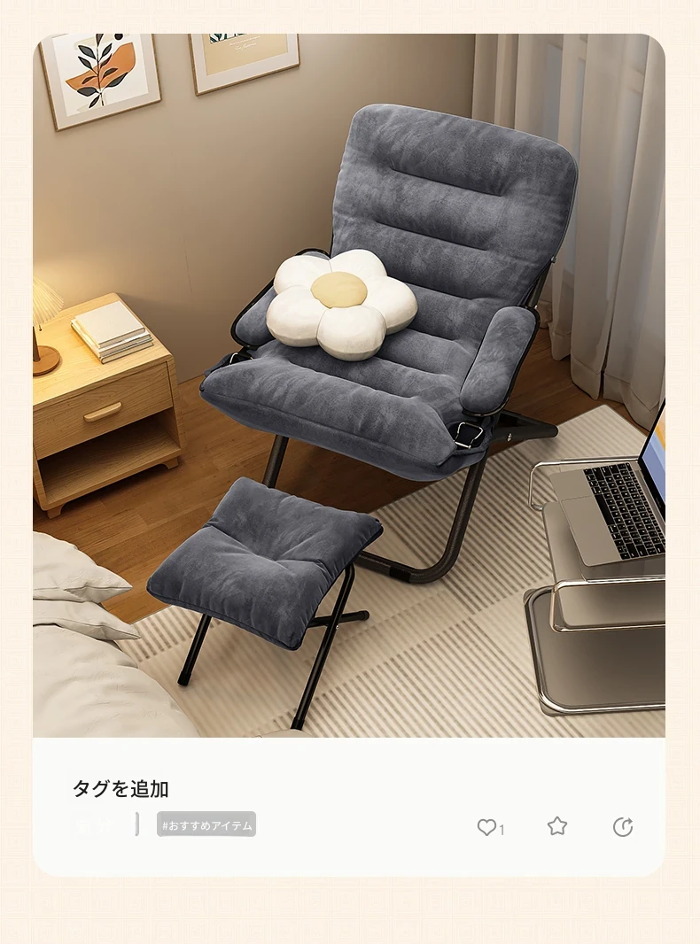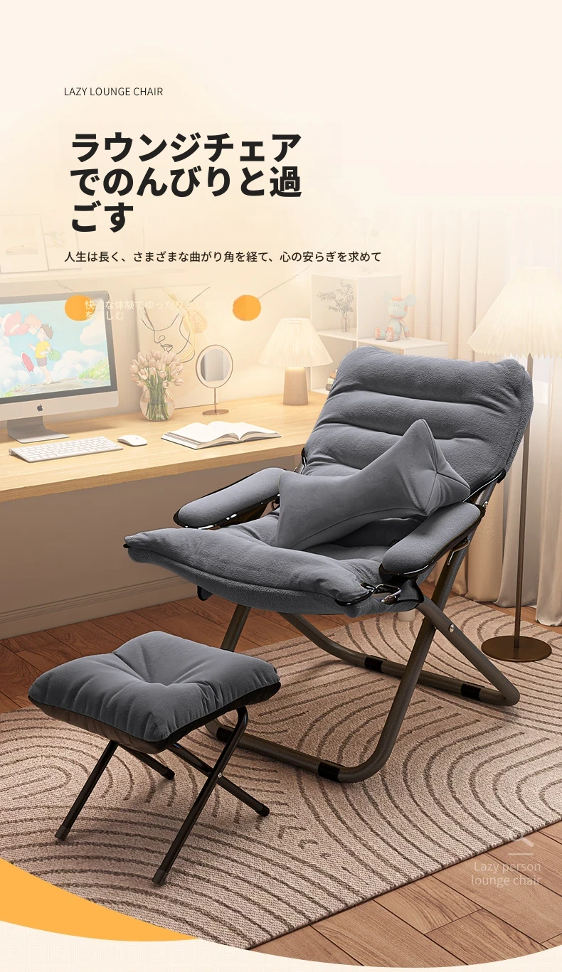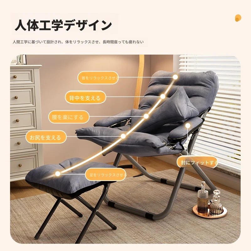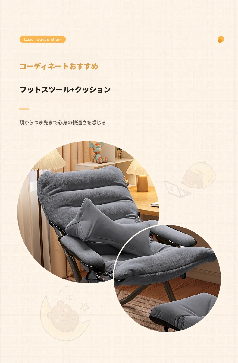 アップグレード厚手/グレー+腰枕+フットレスト【収納袋付き】三段階調節