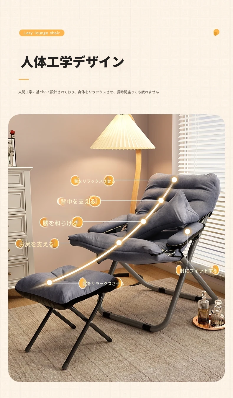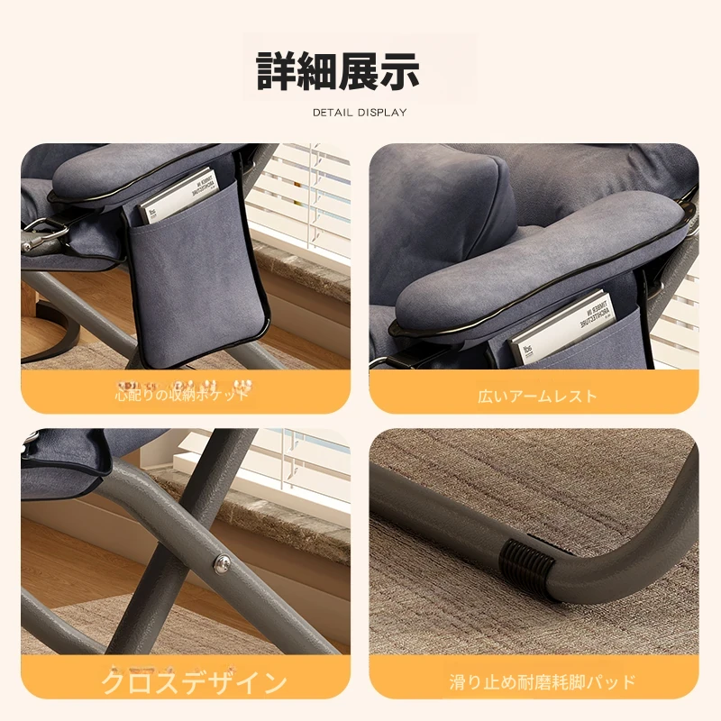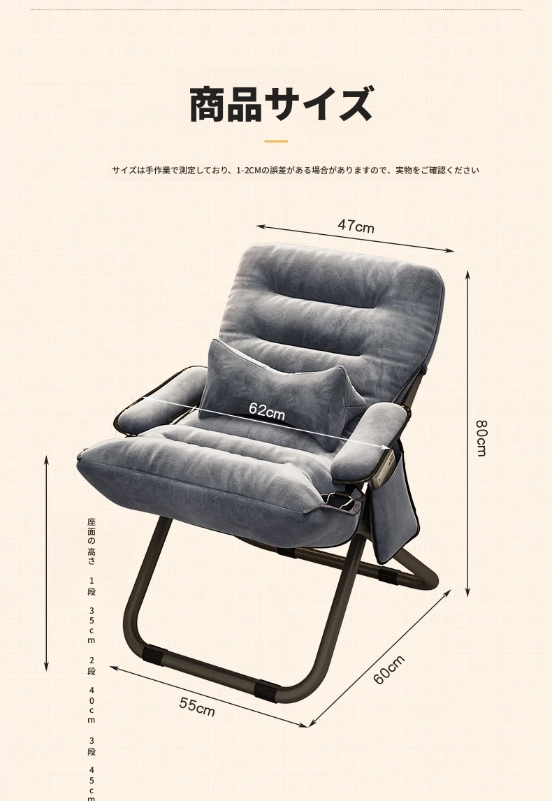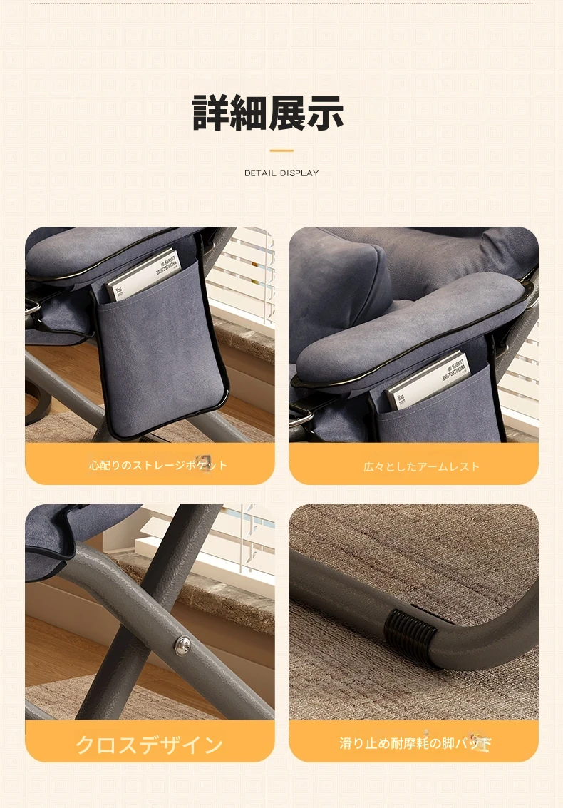 アップグレード厚手/グレー+腰枕+フットレスト【収納袋付き】三段階調節