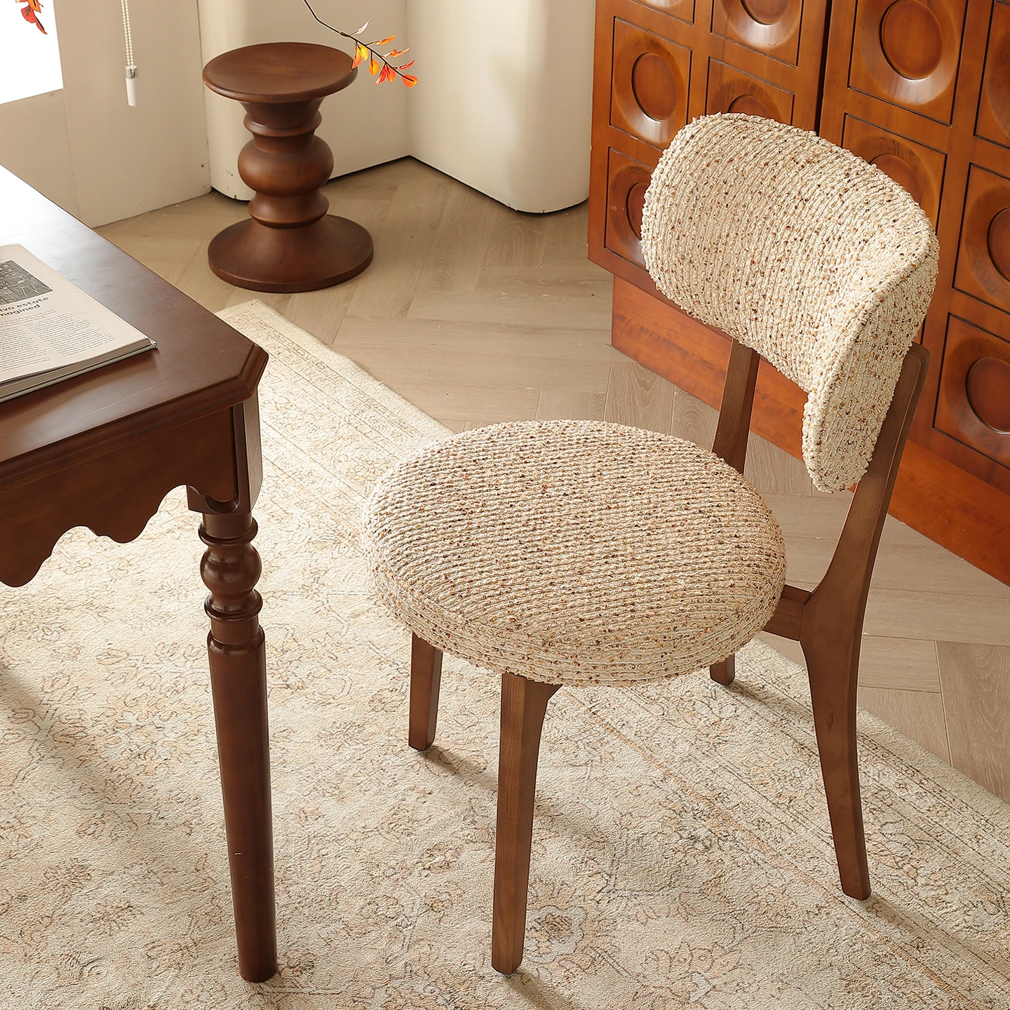 リリー椅子 イタリアンデザインの化粧椅子 天然木製 中古風スタイル ホワイトアッシュ 家庭用 モダンバックレスト ダイニングチェア - おしゃれで快適な空間を演出!