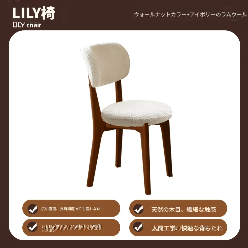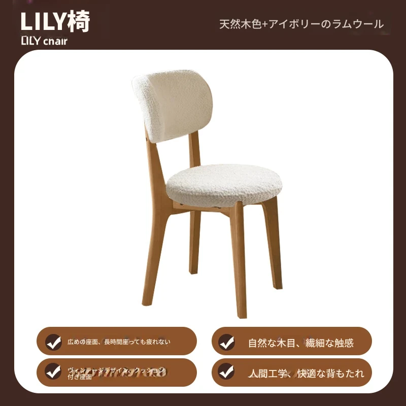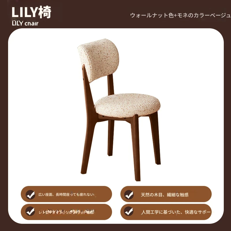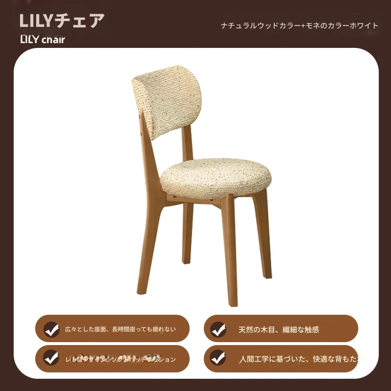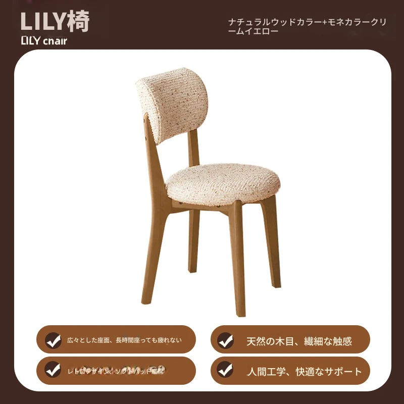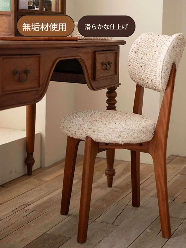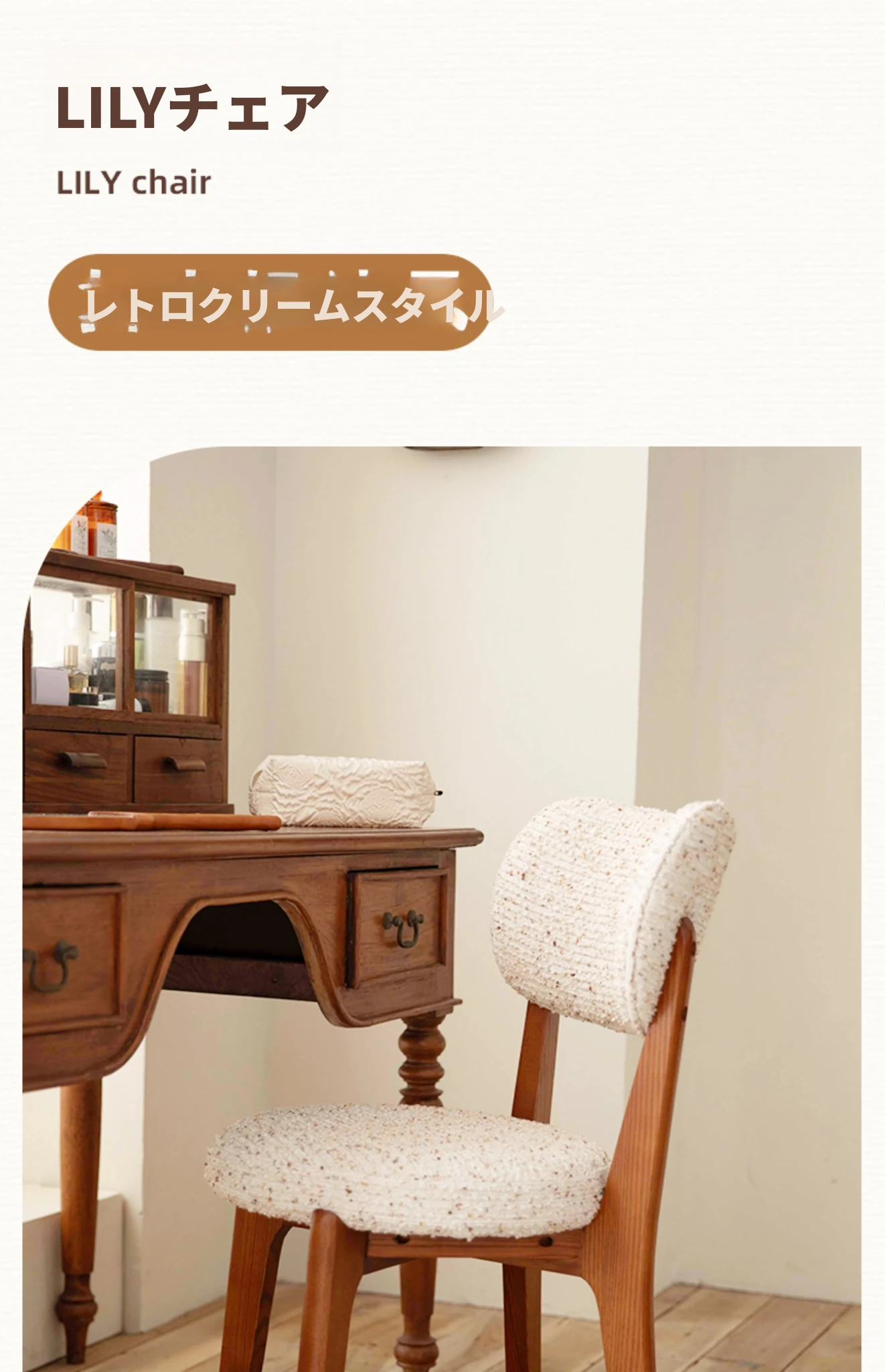 リリー椅子 フランス風レトロクリームデザイン 高級感溢れる無垢材ソフトパッケージチェア アンティーク風デスクチェア メイクアップチェアに最適!おしゃれで機能的なインテリアを演出します。