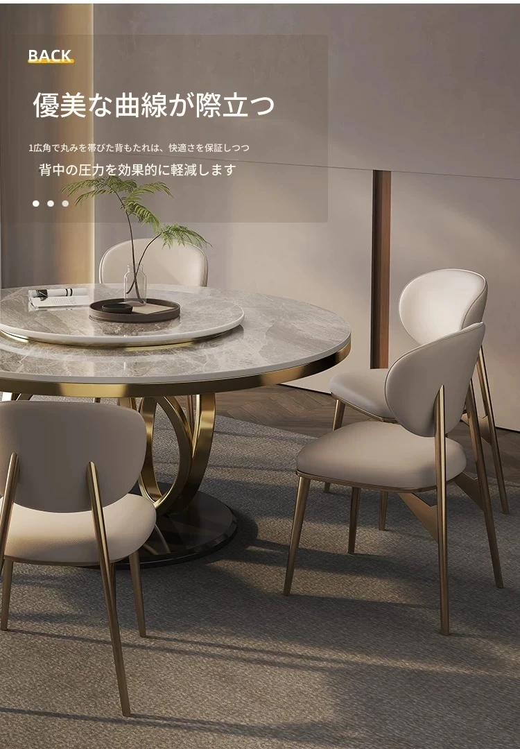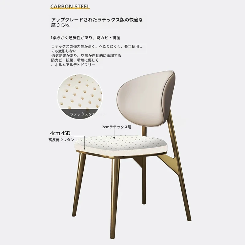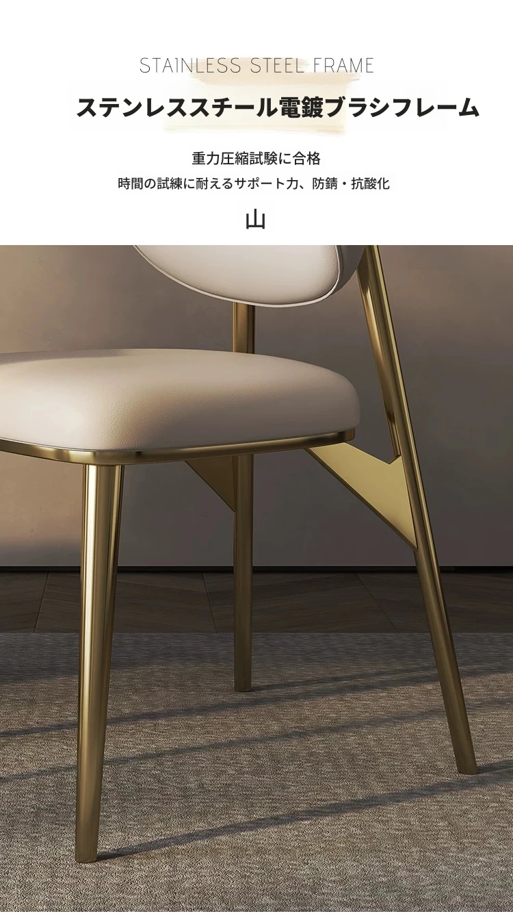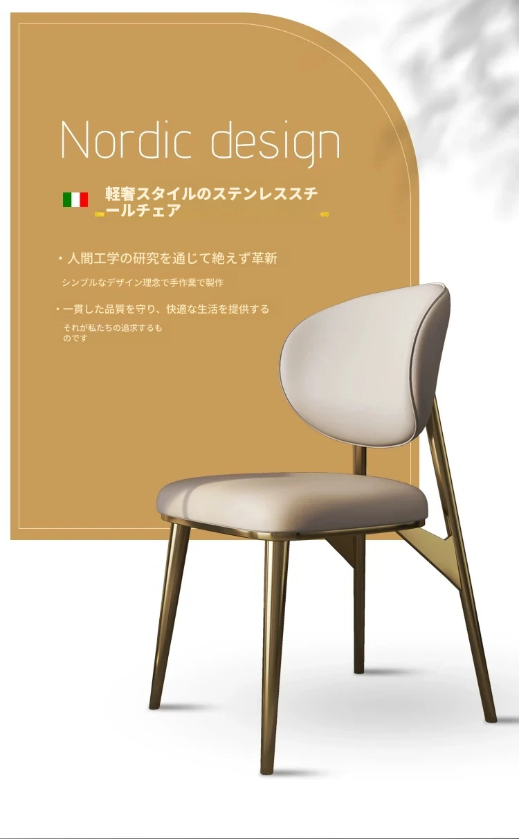 高級感あふれるレザー製ダイニングチェア - 本革使用、コンパクトな小型住宅に最適なスタイリッシュな背もたれ付きチェア。ステンレススチールのモダンデザインで、あなたの食卓を引き立てます。
