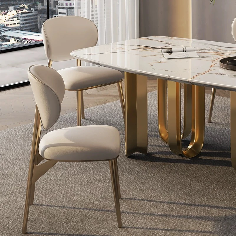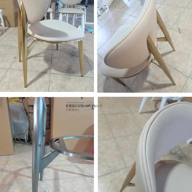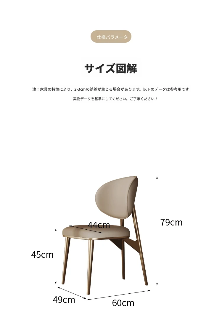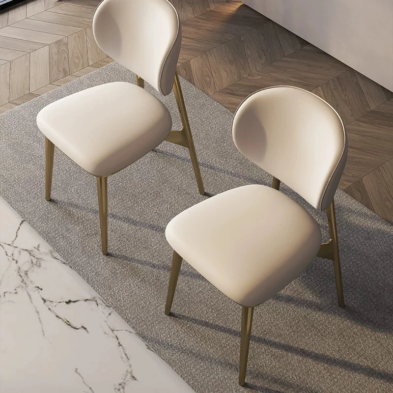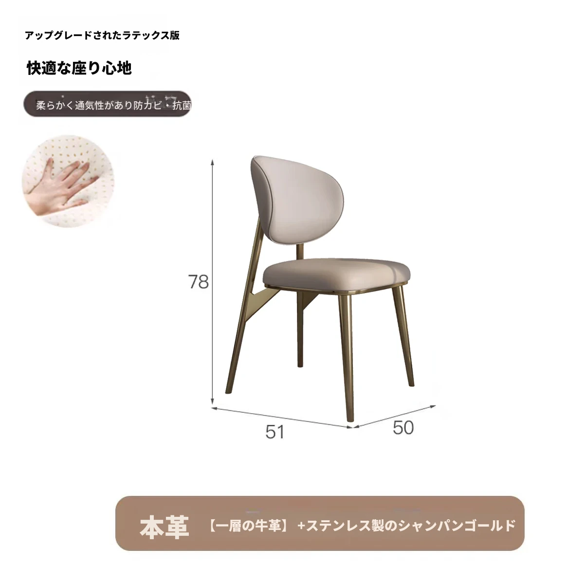 高級感あふれるレザー製ダイニングチェア - 本革使用、コンパクトな小型住宅に最適なスタイリッシュな背もたれ付きチェア。ステンレススチールのモダンデザインで、あなたの食卓を引き立てます。