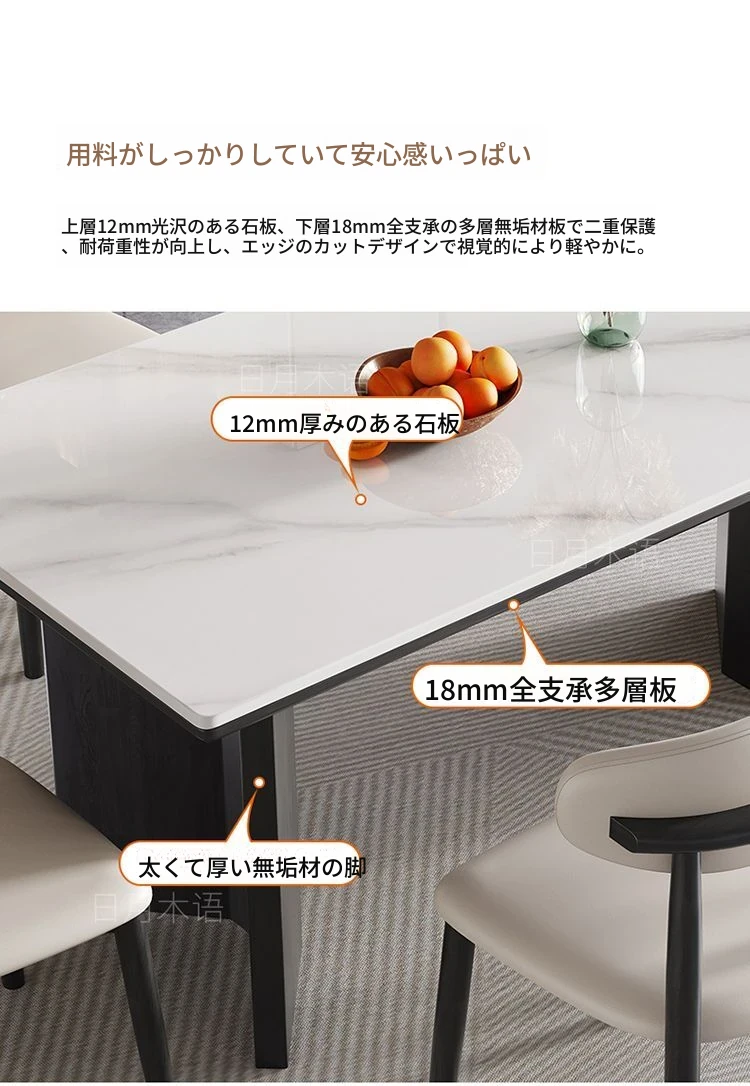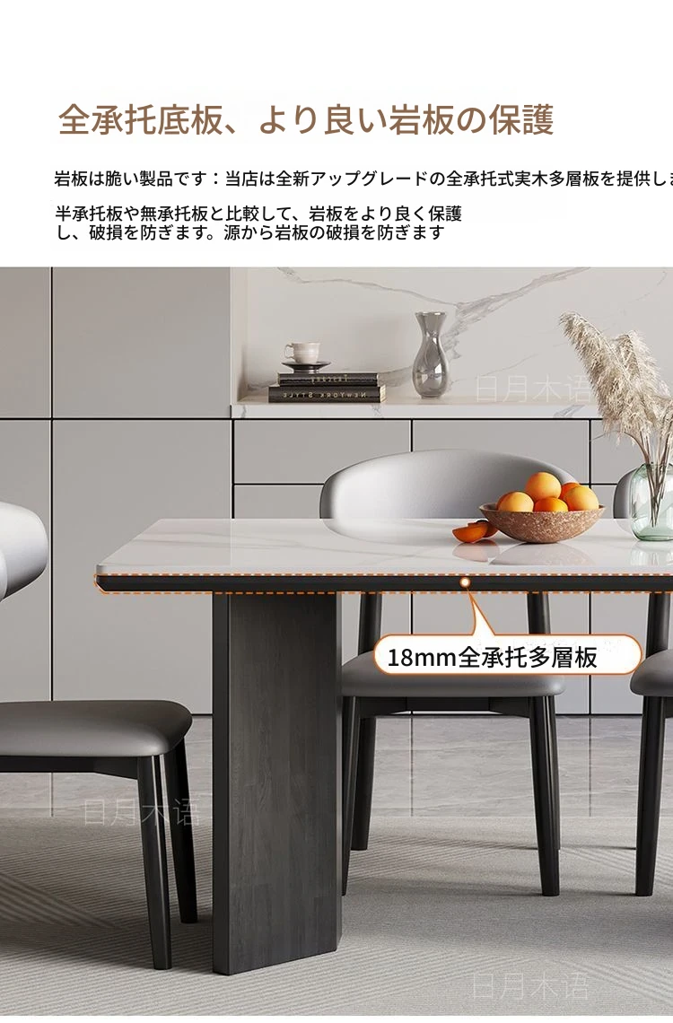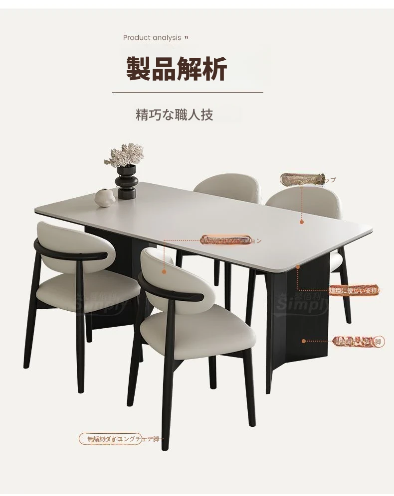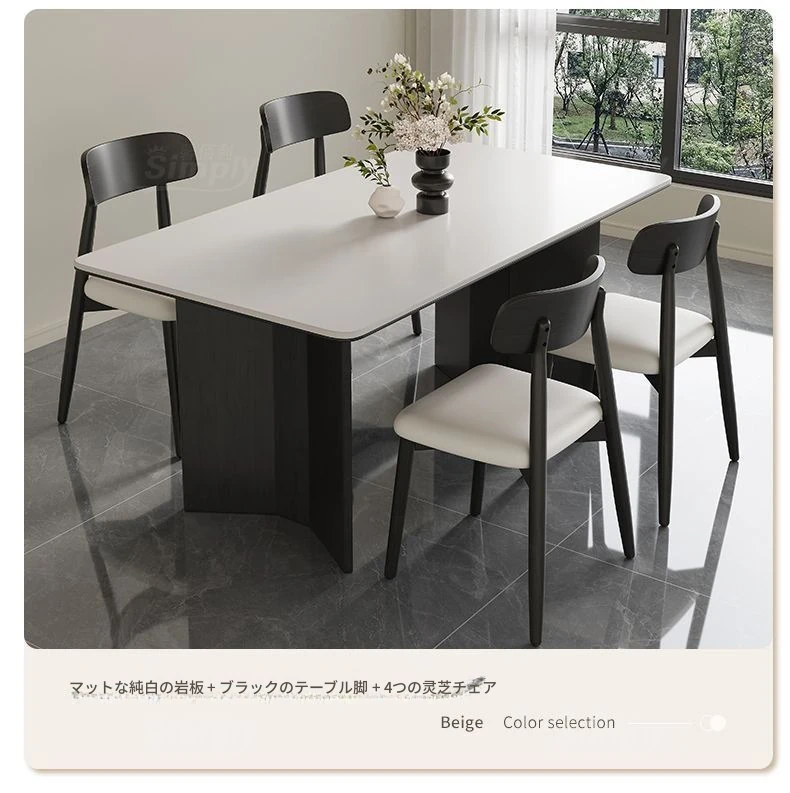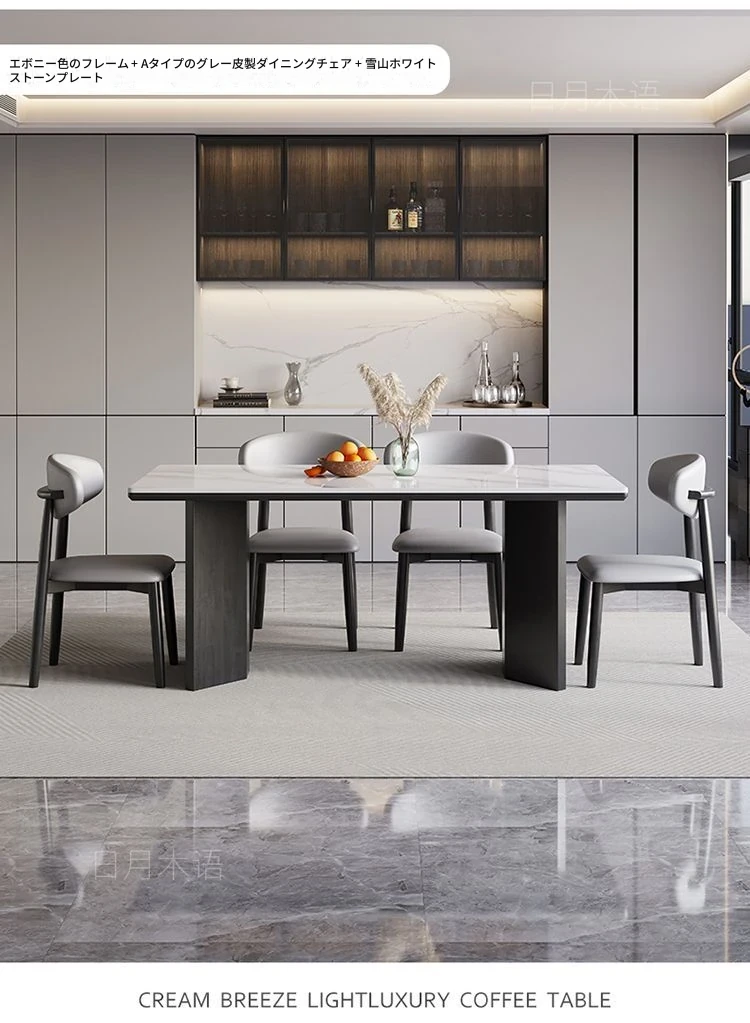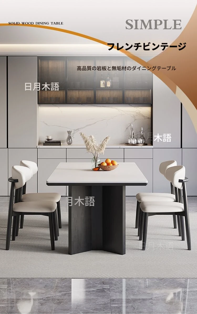 イタリアンホワイトアッシュ無垢材の岩板ダイニングテーブル&チェアセット【小型住宅向け】モダンな長方形デザインで、食事を楽しむための理想的なテーブル。おしゃれで機能的な空間を演出します!
