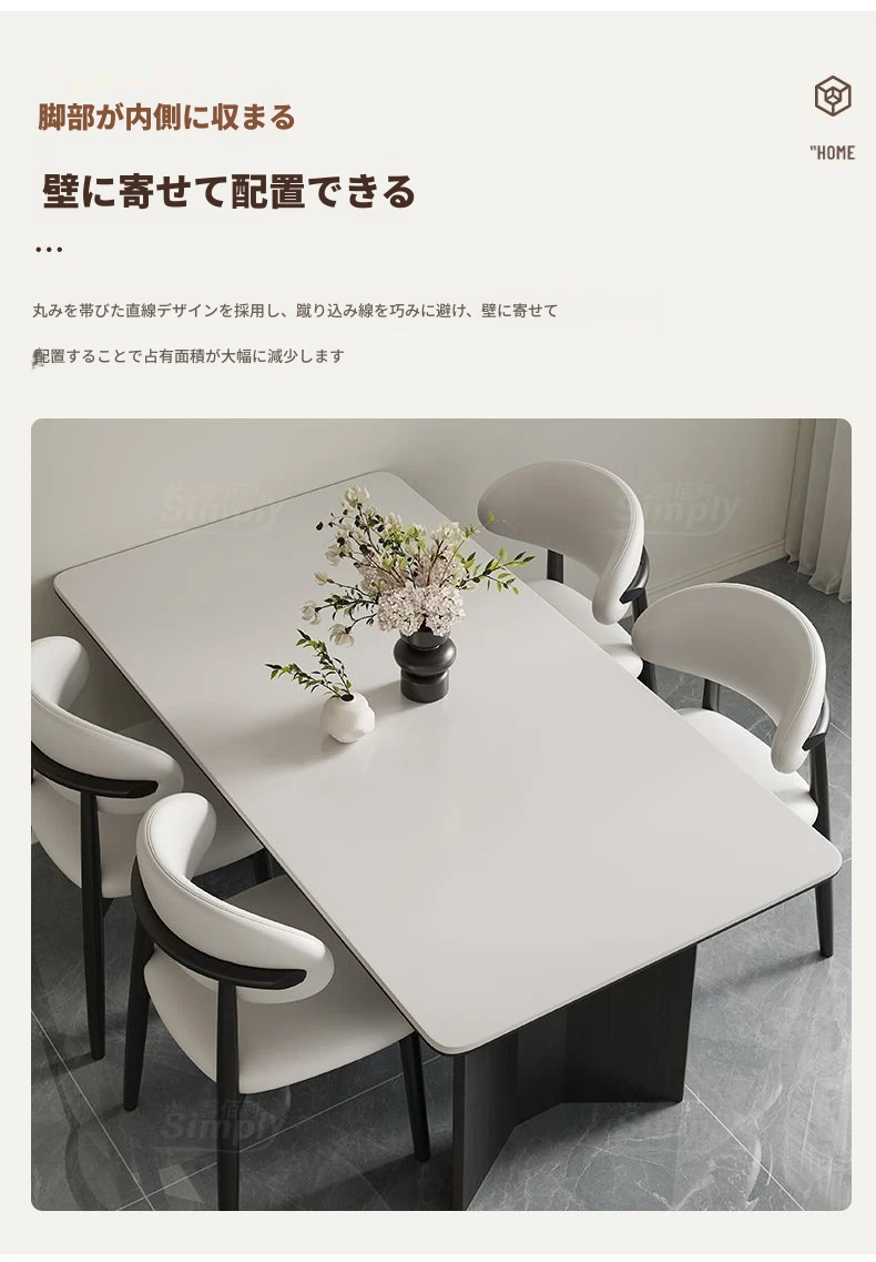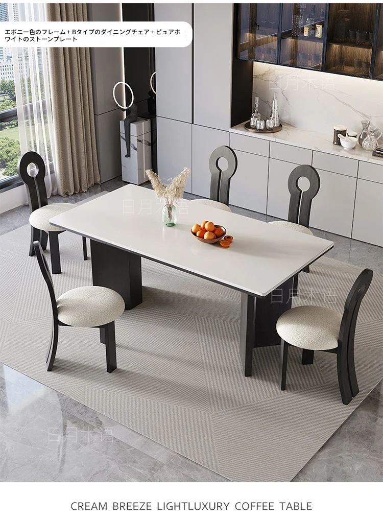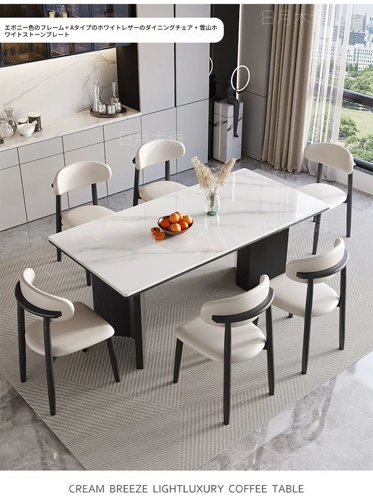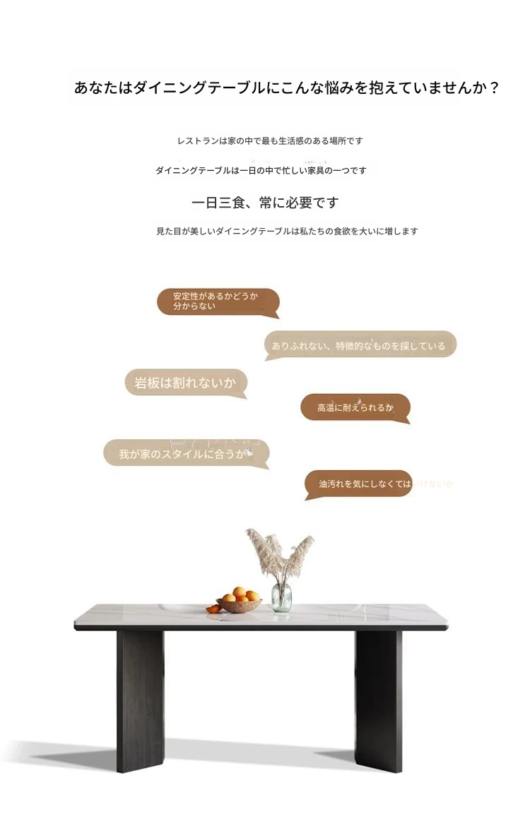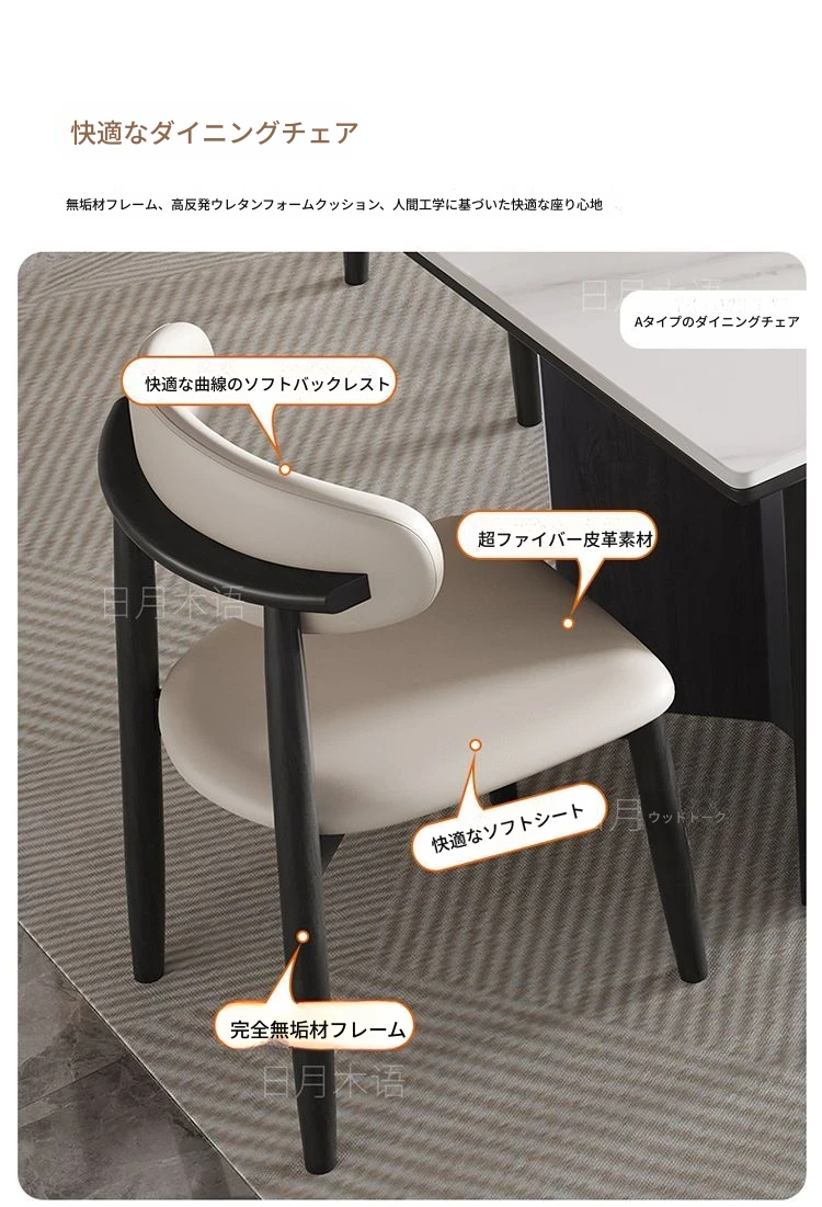イタリアンホワイトアッシュ無垢材の岩板ダイニングテーブル&チェアセット【小型住宅向け】モダンな長方形デザインで、食事を楽しむための理想的なテーブル。おしゃれで機能的な空間を演出します!
