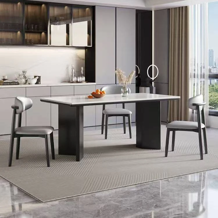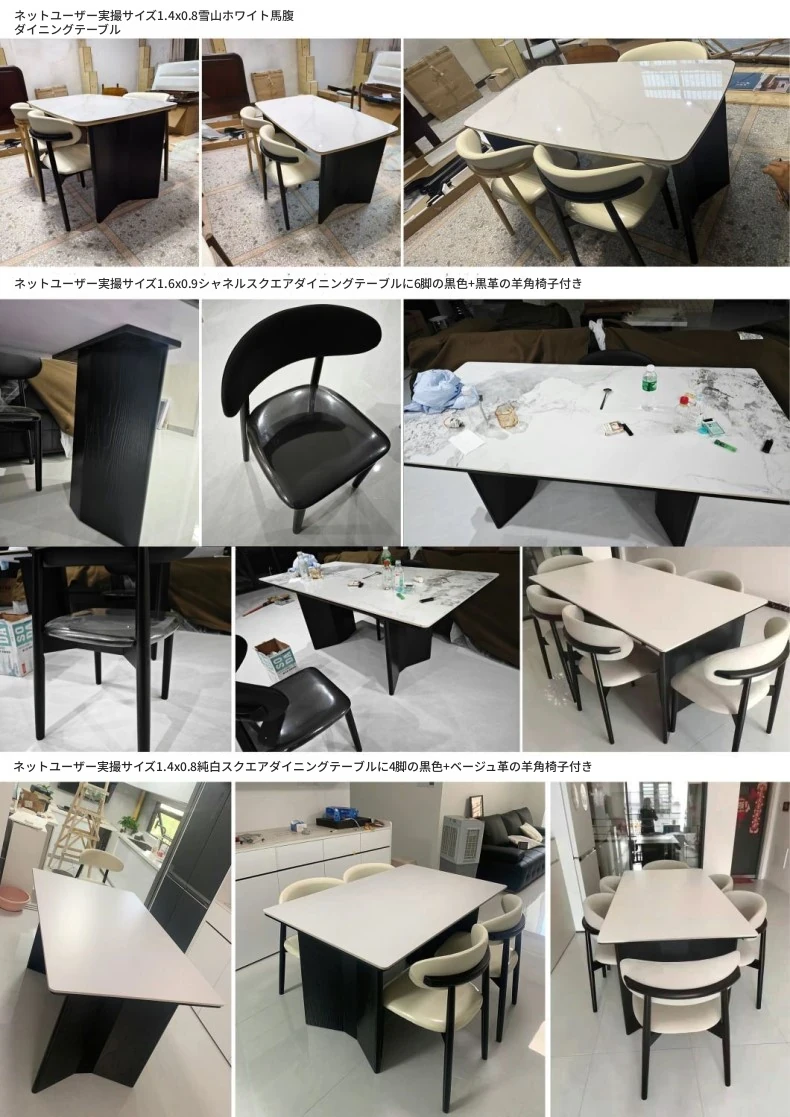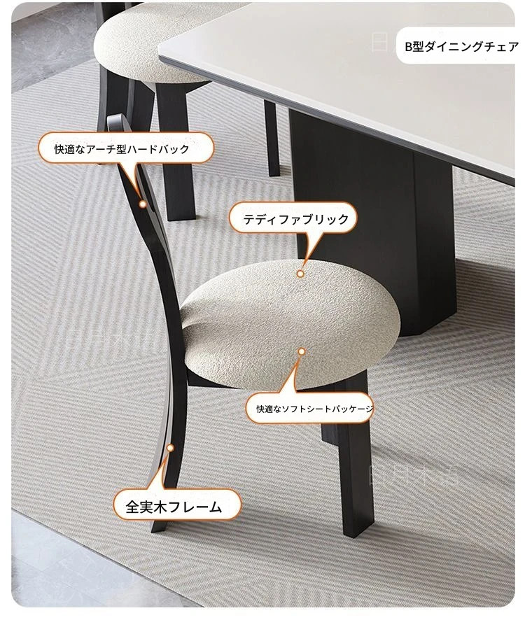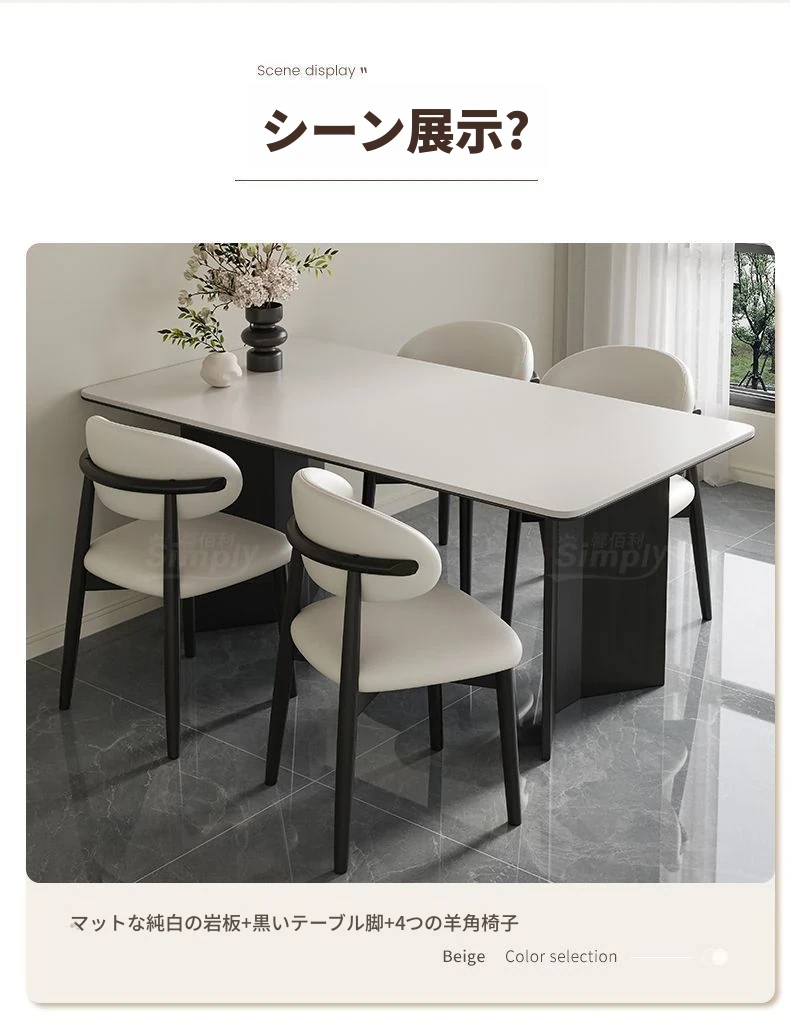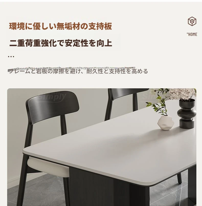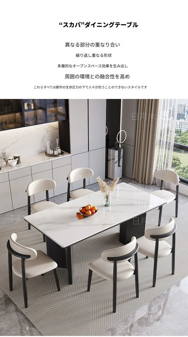 イタリアンホワイトアッシュ無垢材の岩板ダイニングテーブル&チェアセット【小型住宅向け】モダンな長方形デザインで、食事を楽しむための理想的なテーブル。おしゃれで機能的な空間を演出します!